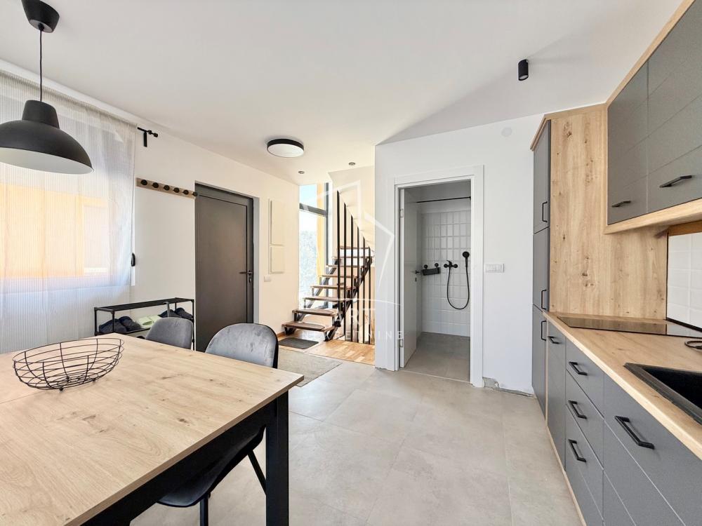 | Na prodaju je kompletno opremljena, veoma moderno dizajnirana kuća na Zlatiboru u naselju Kobilja glava. Prostire na četiri nivoa i pažljivo je projektovana kako bi pružila maksimalan komfor i funkcionalnost. Na prvom nivou nalazi se dnevni boravak sa izlazom na terasu, odakle se pruža spektakularan pogled na Tornik, Ribničko jezero i reku Crni Rzav. Drugi nivo obuhvata kuhinju, trpezariju i kupatilo, dok je na trećem nivou smeštena spavaća soba i kupatilo. Na poslednjem, četvrtom nivou, nalazi se još jedna spavaća soba i ostava. Uknjižena površina stambene jedinice iznosi 77m?, dok je stvarna merena površina 81,5m?. Pripadajuća površina placa je oko 2 ara. U dvorištu, koje je približno 60m? postoji mogućnost izgradnje bazena dimenzija 5x2.5m, a takođe, moguće je i postavljanje saune unutar kuće. Nekretnina ima poseban ulaz, obezbeđen parking, kao i zonu za roštilj i sedenje, idealnu za uživanje u prirodnom okruženju. Kuća je južno orijentisana, što omogućava obilje prirodne svetlosti tokom celog dana. Poseduje dva načina grejanja: peć na čvrsto gorivo i norveške radijatore. Godina gradnje je 2024. Udaljena je oko 5 km od centra Zlatibora i oko 4 km od podnožja ski centra Tornik. Ova kuća predstavlja savršen spoj modernog životnog prostora i prirodnog ambijenta, pružajući mir, privatnost i luksuzan boravak na jednoj od najlepših lokacija Zlatibora. Agencijska provizija 2 % Agent: Marija Mitrašinović, br. licence 5862 "Art nekretnine" d.o.o. Beograd, Reg. br. 339 011/2620-734 . | |