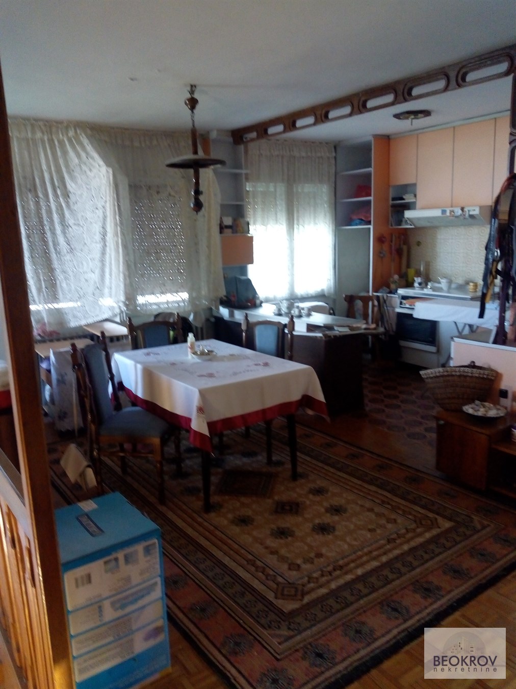 | Sastoji se od prizemlja, u kome su predsoblje, toalet, dnevna soba, kuhinja, soba, terasa, garaža i kotlarnica; sprata, u kojem su dnevna soba, 2 spavaće sobe, kupatilo i terasa. Ima podrum i veliko dvorište. Blizu je gradskog prevoza, Ibarske magistrale, prodavnice... Kupac plaća proviziju u iznosu u visini od dva posto cene. 069 236 5768 | |