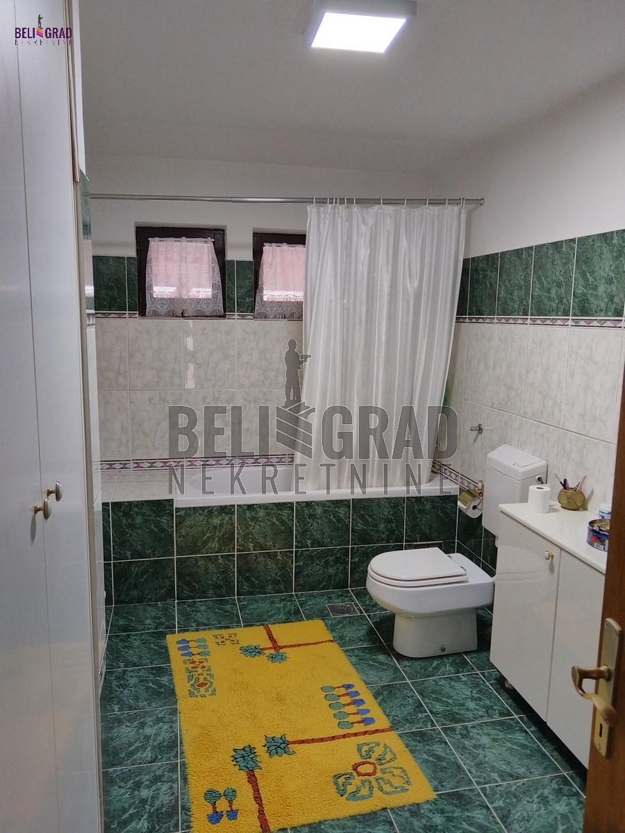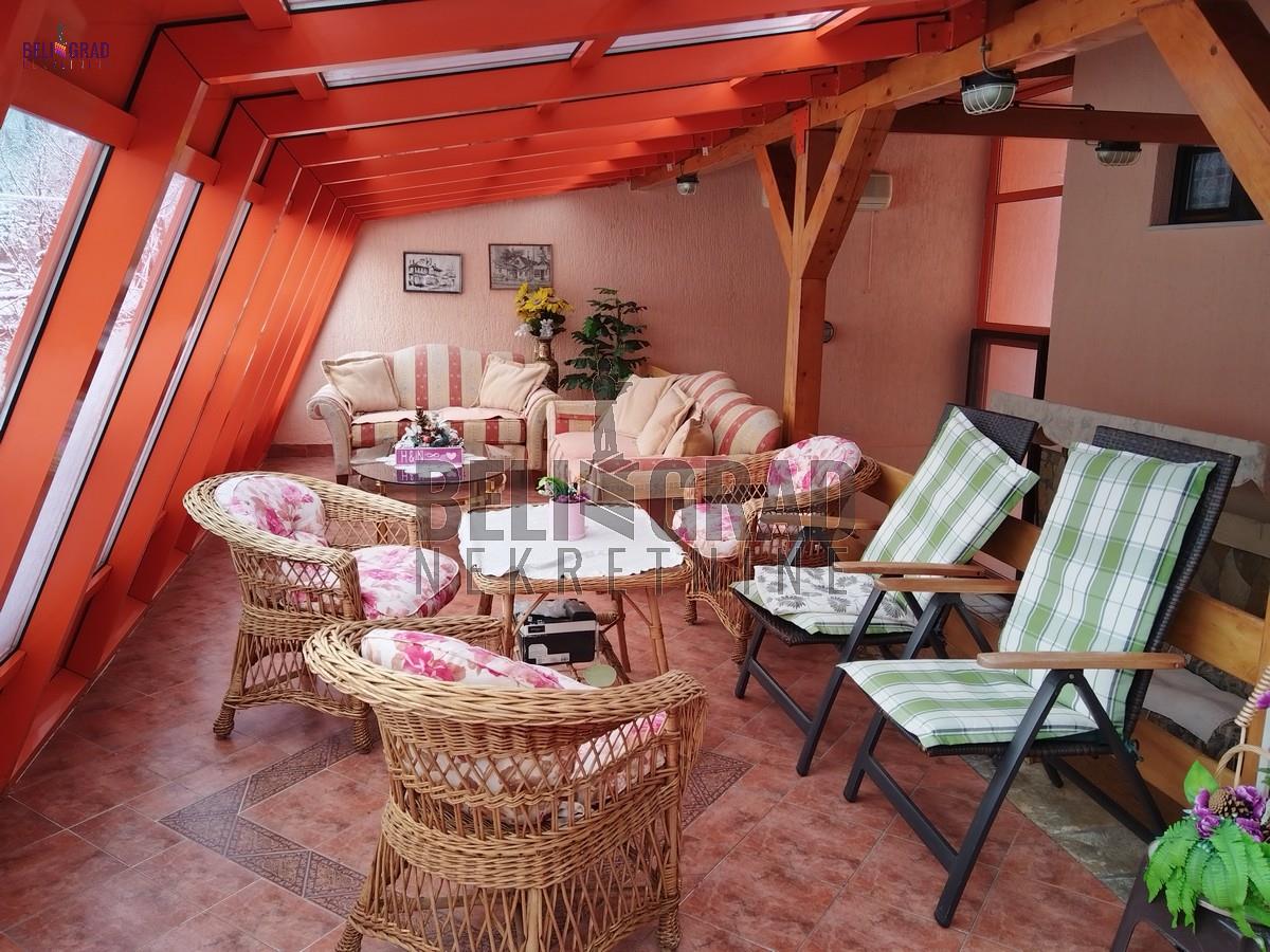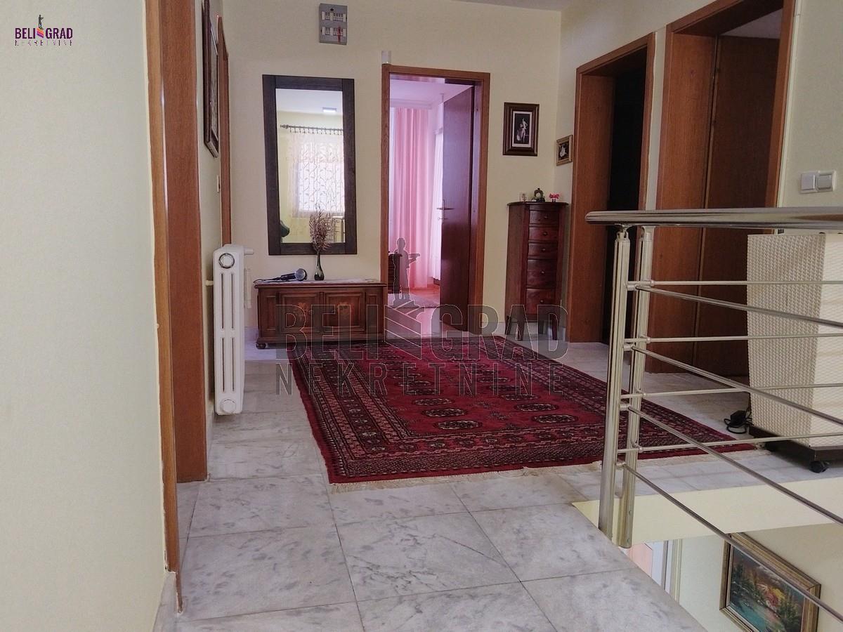 | Odlična kuća (novije gradnje) od 242 kvm, sa ograđenim placem pd 10,69 kvm koja izlazi na dve ulice. Kuća ima tri nivoa (sut+pr+ I sprat), a krasi je i dodatni prostor staklene bašte od 70 kvm za odmor. EG grejanje (ima kotao na čvrsto gorivo) kao i na struju (takođe kotao). Ostaje kompletan nameštaj sa belom tehnikom. Kuća idealna za porodilčan život, a takođe kao i za kancelarijsko-poslovni prostor (pruža ozbiljne mogućnosti. Prostorije: Suteren: garaža, kontlarnica, veđernica, dve ostave. Prizemlje: hodnik, kuhinja, dnevna soba sa trpezarijom, kupatilo, terasa, staklena bašta. I nivo: hodnik, četiri sobe, kupatilo, dve terase. Agencijska provizija 2%. | |