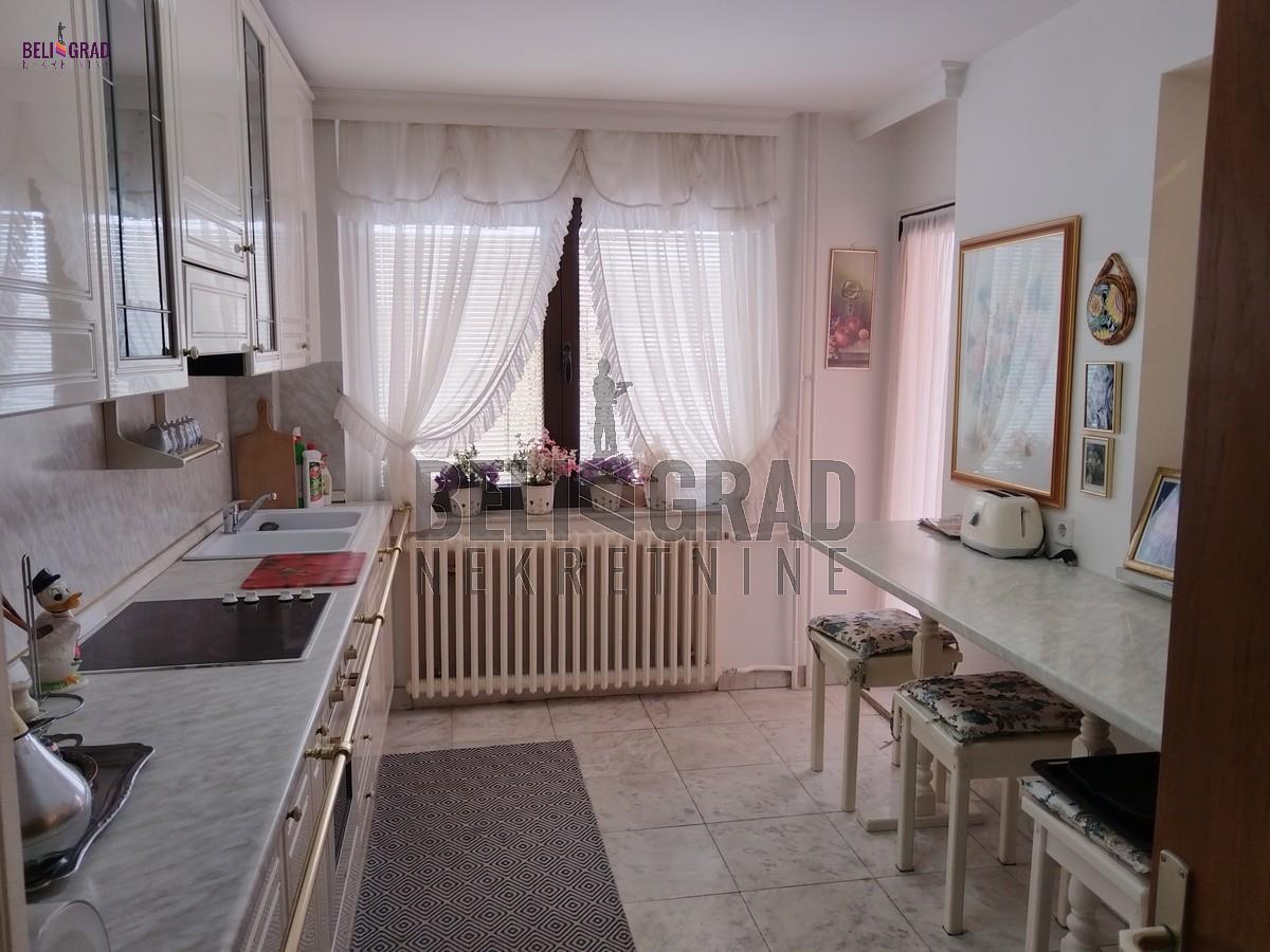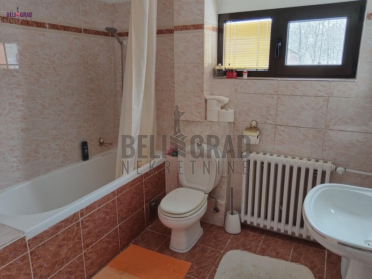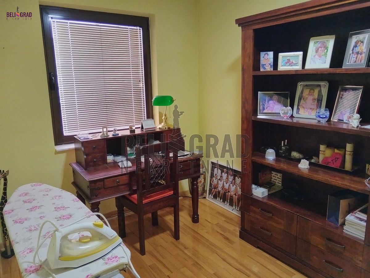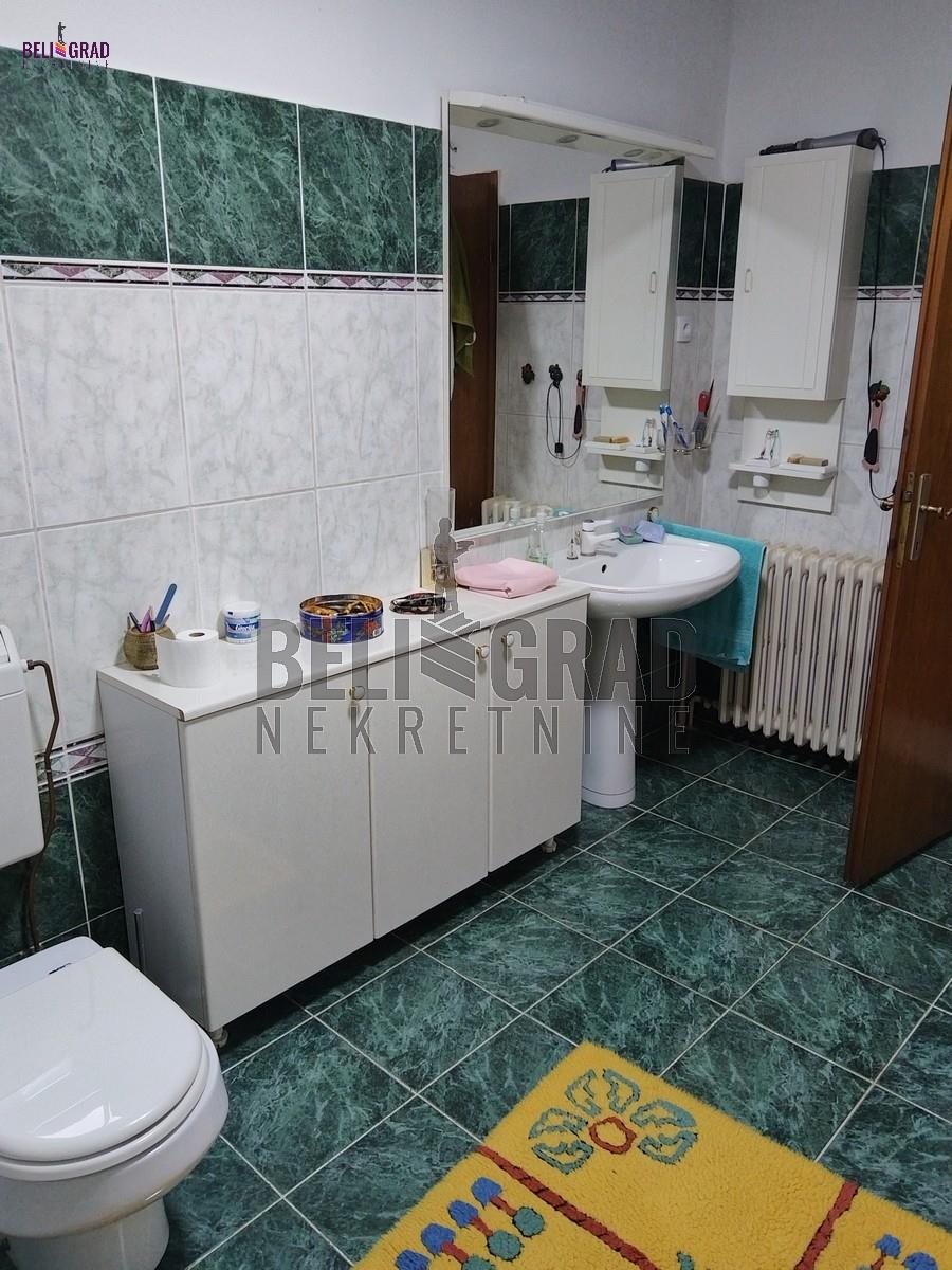 | Odlična kuća (novije gradnje) od 242 kvm, sa ograđenim placem pd 10,69 kvm koja izlazi na dve ulice. Kuća ima tri nivoa (sut+pr+ I sprat), a krasi je i dodatni prostor staklene bašte od 70 kvm za odmor. EG grejanje (ima kotao na čvrsto gorivo) kao i na struju (takođe kotao). Ostaje kompletan nameštaj sa belom tehnikom. Kuća idealna za porodilčan život, a takođe kao i za kancelarijsko-poslovni prostor (pruža ozbiljne mogućnosti. Prostorije: Suteren: garaža, kontlarnica, veđernica, dve ostave. Prizemlje: hodnik, kuhinja, dnevna soba sa trpezarijom, kupatilo, terasa, staklena bašta. I nivo: hodnik, četiri sobe, kupatilo, dve terase. Agencijska provizija 2%. | |