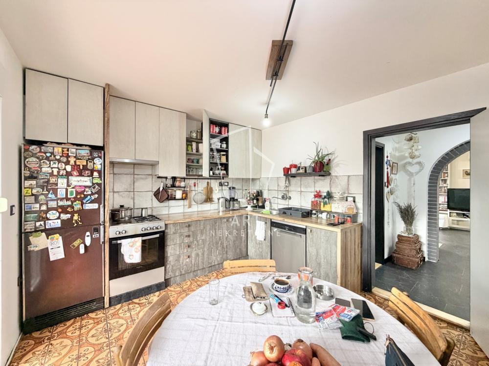 | Prodaje se vertikala kuće površine 258m2 koja se nalazi u mirnom delu naselja Sremčica. Kuća je na 4 nivoa Po+P+1+Pk sa 3 spavaće sobe i 2 kupatila nudi odlične mogućnosti za porodičan život. Izgrađena je 1986. a renovirana 2024. godine i poseduje svu potrebnu dokumentaciju. Kuća se nalazi na placu površine 3,8 ari. Prvi nivo predstavlja podrum sa garažom (za dva automobila) uknjižene površine 38m2, manje ostave ispod stepeništa, podrumske ostave od 12m2 i kotlarnice od 13m2. Drugi nivo je visoko prizemlje koje se sastoji od dnevnog boravka sa izlazom na terasu, kuhinja sa trpezarijom je prostrana sa izlazom na terasu od 16m2 čini jedinstvenu celinu, tu su još kupatilo i hodnik koji povezuje ove prostorije i stepenište. Treći nivo predstavlja spavaći deo sa tri spavaće sobe od kojih dve imaju izlaz na terasu, hodnik i kupatilo. Poslednji četvrti nivo je visoko potkrovlje urađeno kao posebna stambena celina otvorenog tipa sa dnevnim boravkom i kuhinjskim delom gde su pregradom odvojeni spavaći deo, garderober sa radnom sobom a ovaj nivo ima svoju posebnu terasu. Grejanje je etažno na gas,a pored gasnog kotla poseduje posebne kotlove na čvrsto gorivo, struju i lož ulje. Pored prostrane garaže za 2 automobila ima i 2 parking mesta ispred kuće. Garažna vrata i ulazna kapija su automatska na daljinski. Iza kuće se nalazi lep dvorišni prostor. Agencijska provizija 2%. Agent Miloš Graora, br. licence: 4996 “Art nekretnine“ d.o.o. Beograd. Reg. br. 339 011/26-20-734 MG06 . | |