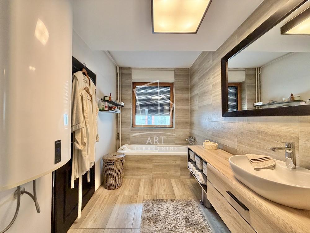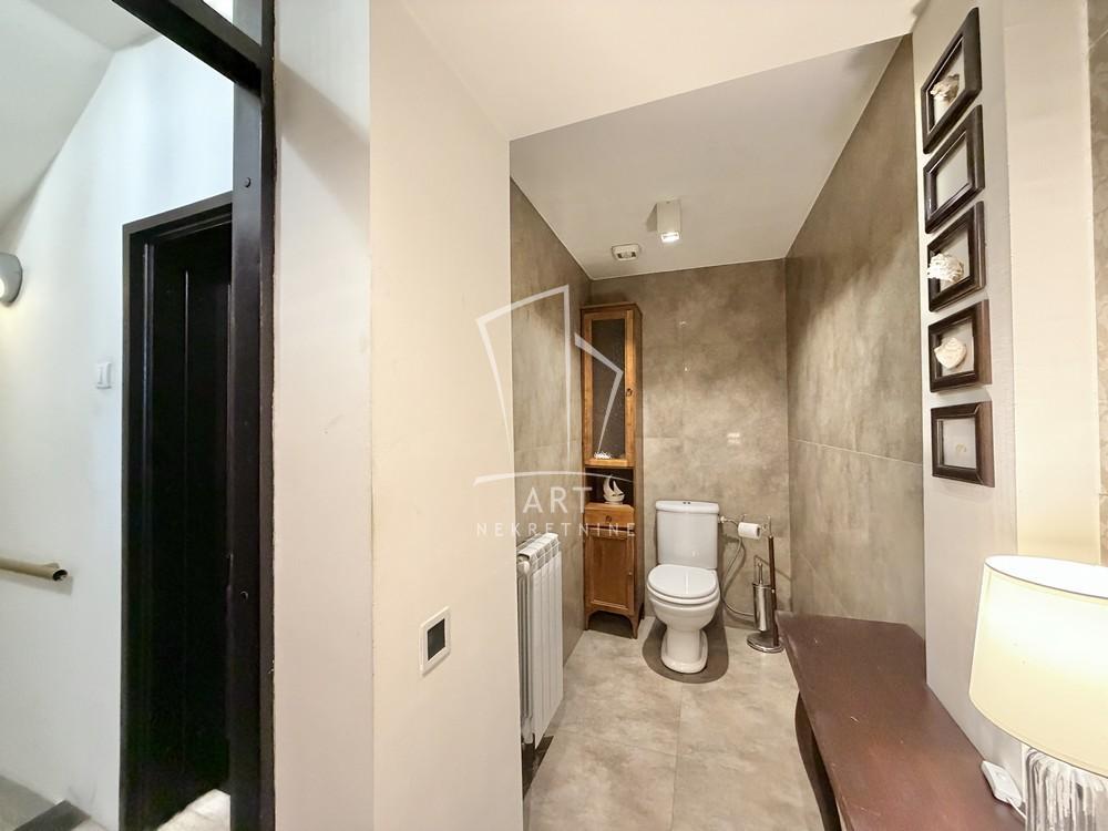| Na prodaju luksuzna porodično-poslovna kuća na Ceraku, na placu od 5,78 ari, ukupne površine 521m2 (uknjiženo 234m2, ostatak u procesu ozakonjenja). Kuća poseduje poslovni prostor u prizemlju podeljen u 3 celine sa fleksibilnim rasporedom i 4 mokra čvora, pogodan za različite delatnosti (klinika, salon, kancelarije). Moguć ulaz iz dve ulice i kroz poslovni deo. Na visokom prizemlju nalazi se prostran dnevni boravak sa kuhinjom, trpezarijom i kaminom, sa izlazom na terasu od 28m, ispod koje je garaža iste kvadrature sa kanalom i priključcima za vodu i struju, kao i 2 parking mesta. Podno grejanje je u dnevnom boravku (centralno gradsko), dok su u ostatku kuće radijatori. Na prvom spratu su 3 spavaće sobe, 2 kupatila i garderober, dok se na drugom spratu nalaze još 2 sobe i kupatilo. Kuća je građena od vrhunskih materijala, sa puno prirodne svetlosti i modernim detaljima. Poseduje ograđeno dvorište od 60m2 sa kapijom i prostorom za odmor. Objekat je idealan kako za stanovanje, tako i za razne poslovne namene. Agencijska provizija 2% Agent: Raško Jorović br. licence: 015 Art nekretnine d.o.o. Beograd. Reg. br. 339 011/26-20-734 TR . | |