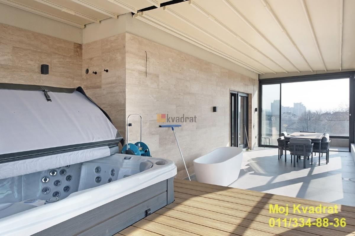 | Čukarica, Banovo brdo - Nikolaja Gogolja 5.0, 232m2, terasa, 5/5, podno grejanje, toplotne pumpe, lift, telefon, interfon, garaža U ponudi luksuzan penthouse na Banovom brdu u novogradnji na petom spratu. Stan se sastoji od četiri spavaće sobe, od kojih je jedna master spavaća soba sa sopstvenim kupatilom, dnevne sobe, trpezarije i kuhinje, dva predsoblja i dva kupatila. Oko celog stana je prostrana terasa na kojoj se nalazi i đakuzi. Iz garaže se direktno ulazi u lift kojim samo uz pomoć ključa vlasnik može doći do petog sprata. Stan je rađen kvalitetnim materijalima, kao i sama zgrada. Ulaz zgrade je od mermera, zgrada se greje na toplotne pumpe. U stanu i na terasi je podno grejanje. Postoji mogućnost kupovine dva garažna mesta i ostave površine 10m2 u garaži zgrade. Građevinska dozvola. Agencijska provizija 2% Interfon, Telefon, Nije prizemlje Penthouse Gradska kanalizacija | |