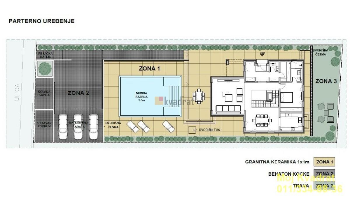 | Grocka - Avala kuća, 352m2, PR+I+PTK, tri garaže, struja, voda, kanalizacija, plac 8.40 ari Luksuzna kuća sa bazenom i tri garaže na placu od 8.40 ari. Grejanje je podno + FAN COIL sistem, sistem toplotne pumpe vazduh-voda. Prizemlje: 140.94m2 Prvi sprat: 101.44m2 Potkrovlje: 110m2 Fazno plaćanje. Cena stana je bez uračunatog PDV-a. Agencijska provizija 2%. Bazen | |