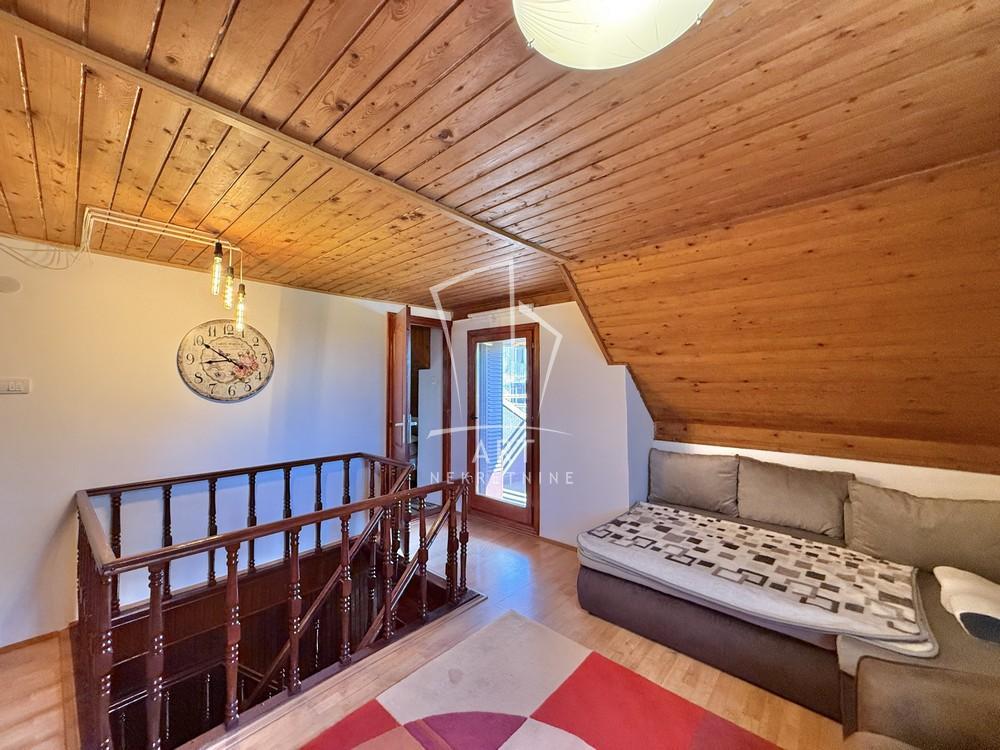 | Uknjižena porodična kuća u prelepom ambijentu, sa još jednim stambenim objektom ukupne površine 113 m2, na obroncima Avale, lokacija Šuplje stene, na placu od 5.5 ari. Pored toga, postoji još uknjiženi pomoćni objekat 18.5m2 Pozicija je na 1.5 km od avalskog-kragujevackog puta , ka Vrčinu Nivo P - dnevna soba sa kuhinjom i trpezarijom, kupatilo, spavaća soba Nivo PTK - unutrašnjim drvenim stepeništem se penje na drugi nivo koji se sastoji od dve velike sobe, terase sa predivnim pogledom i toaleta. Struja trofazna, EG, gradska voda, asfalt, gas do kuće, plus bunar u dvorištu. Sređeno, nisu neophodna ulaganja. Za sve koji traže mir, lep pogled, cvrkut ptica... Od Autokomande 20 min/20km Agencijska provizija 2% Agent: Smilja Stojadinović br. licence 3006 “Art nekretnine“ d.o.o. Beograd Reg. br.339 011/26-20-734 . | |