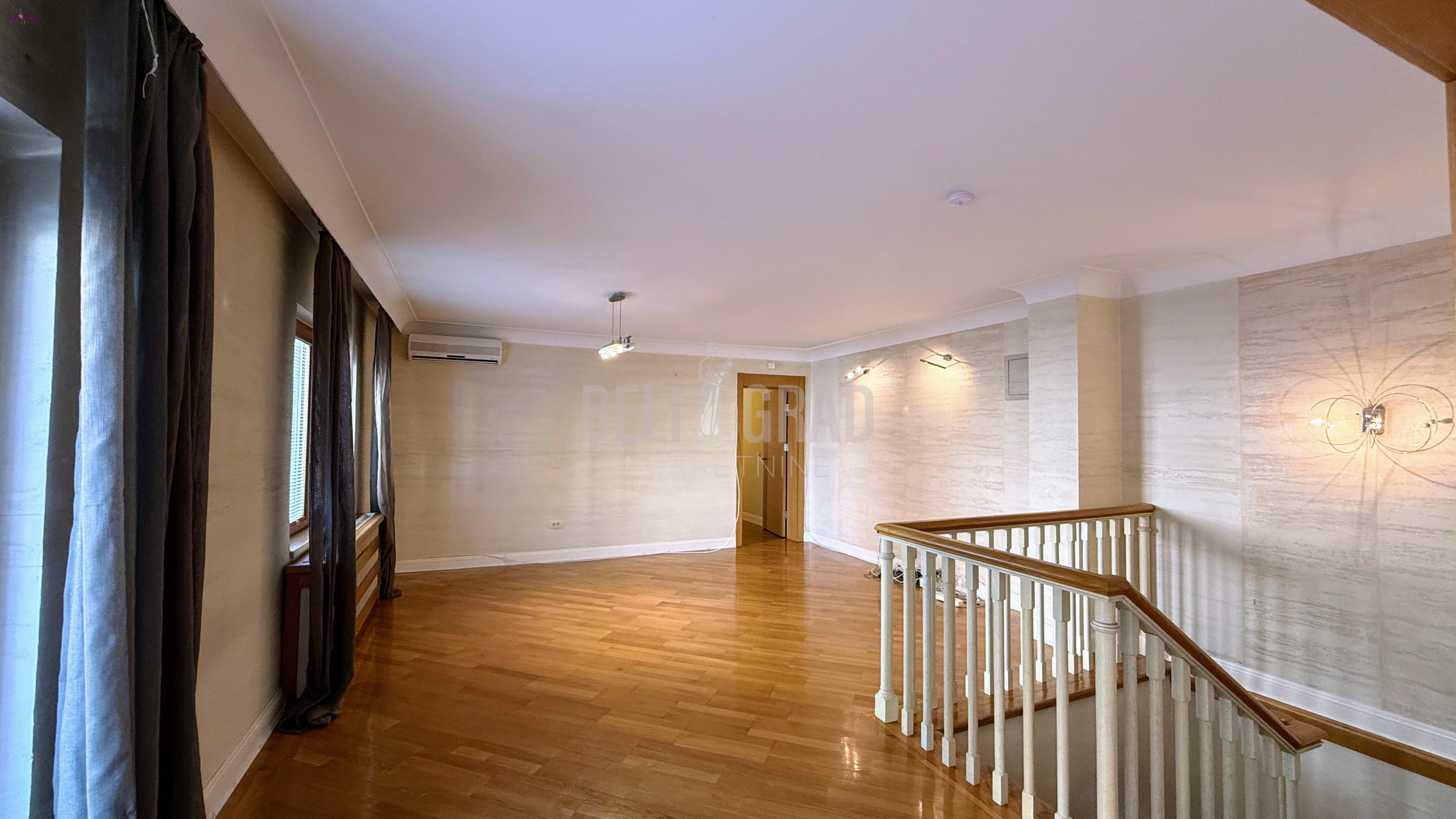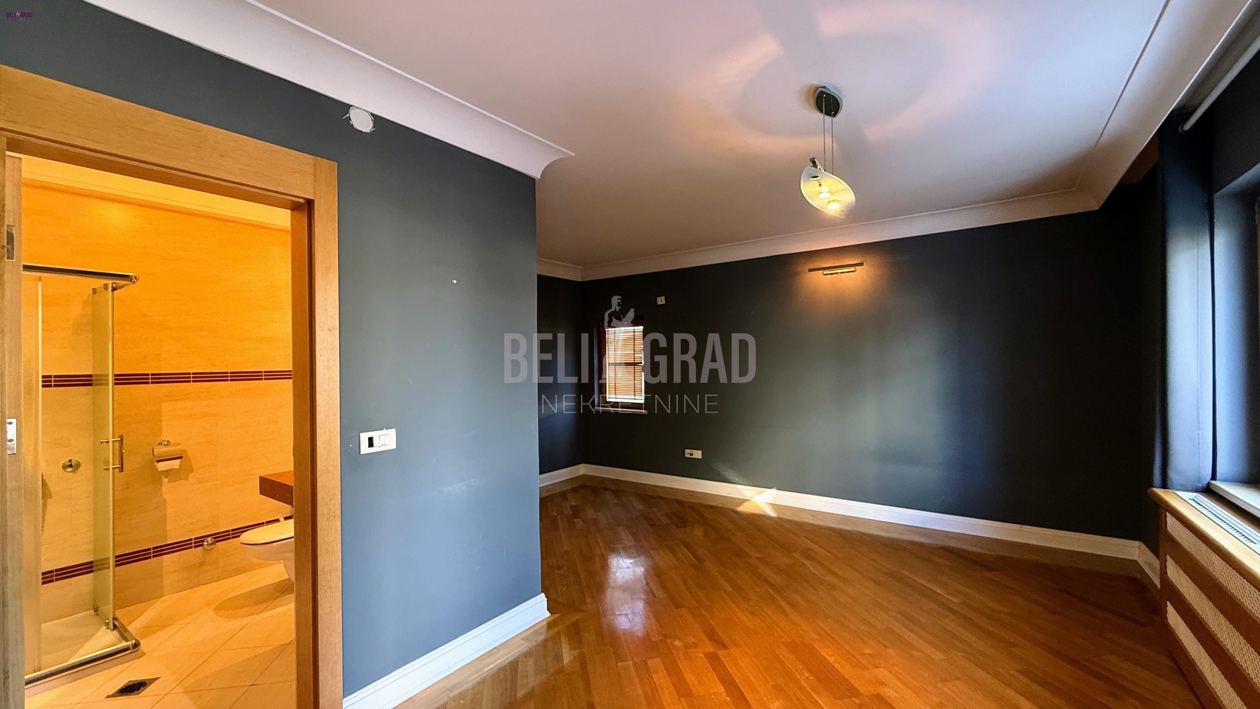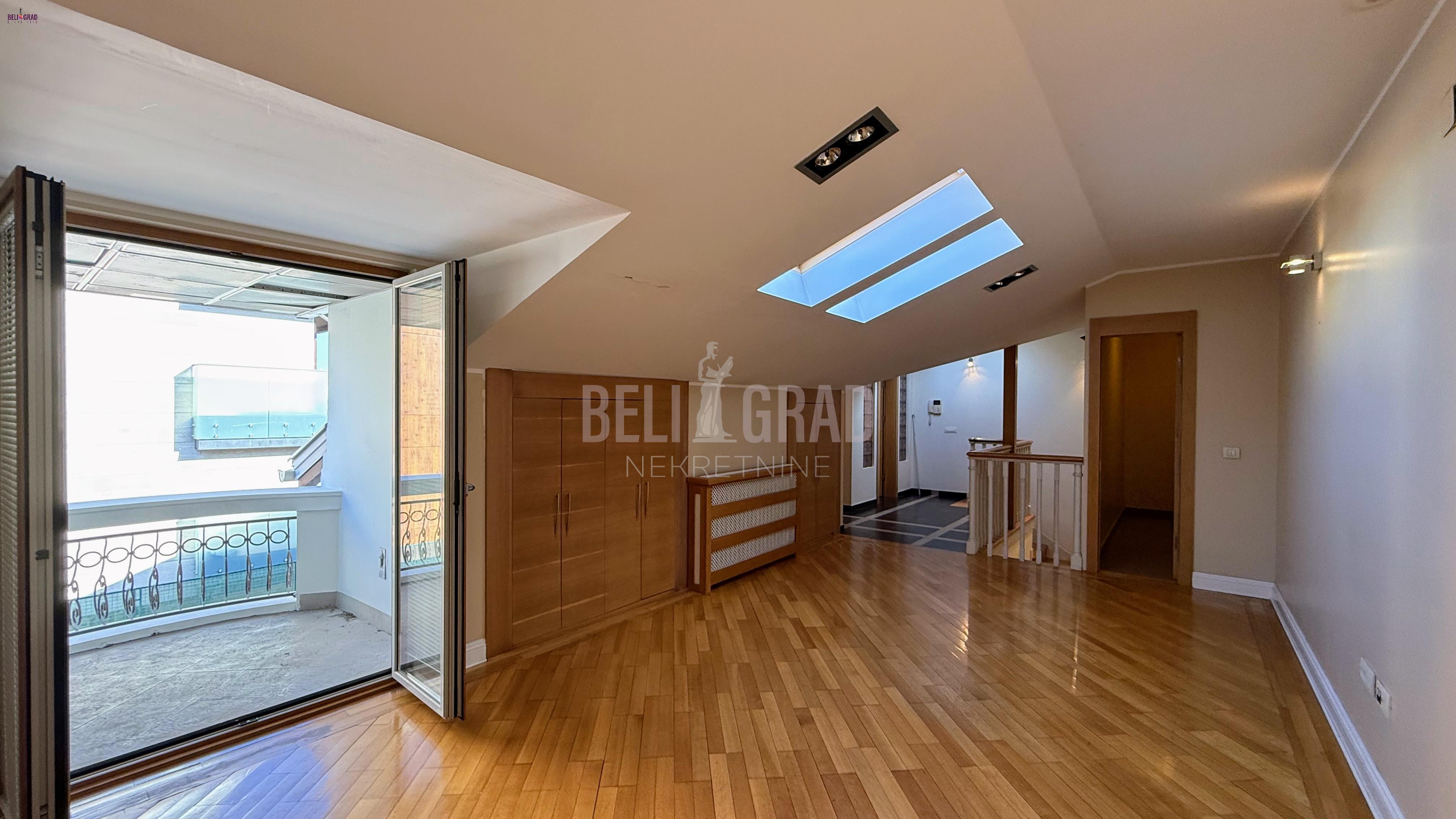 | Izuzetno lepa, mirna lokacija na Dedinju, pokraj Šoline ulice. Kuća na sopstvenom placu od 3,57 ari, višespratna, prizemlje, sprat, potkrovlje, dvorište povezano sa zatvorenim bazenom. Garaža i dodatni parking prostor. Na tri etaže je raspoređeno veliki broj soba, većinom master sobe sa kupatilima, dnevni boravci, trpezarije, centralne salon sobe, dve kuhinje, hodnici, stepeništa po različitim krilima kuće, pet terasa, tehničke prostorije, ostave, bazen, dvorište, garaža, parking mesta. Kuća daje mogućnost življena dve višečlane porodice, kombinovanje poslovnog i životnog prostora, pogodno da se adaptacijom prostor prilagodi za manju kliniku, ali naravno i drugih mogućnosti u viziji kupca. Kuća je uknjižena na 388 m2, garaža 24 m2, uredni papiri, grejanje toplotne pumpe. Kompletno renovirana 2008. fasada i krov u septembru 2025. godine. Budućem vlasniku je ostavljeno da je dizajnira po svom ukusu i potrebama. Agencijska provizija 2% | |