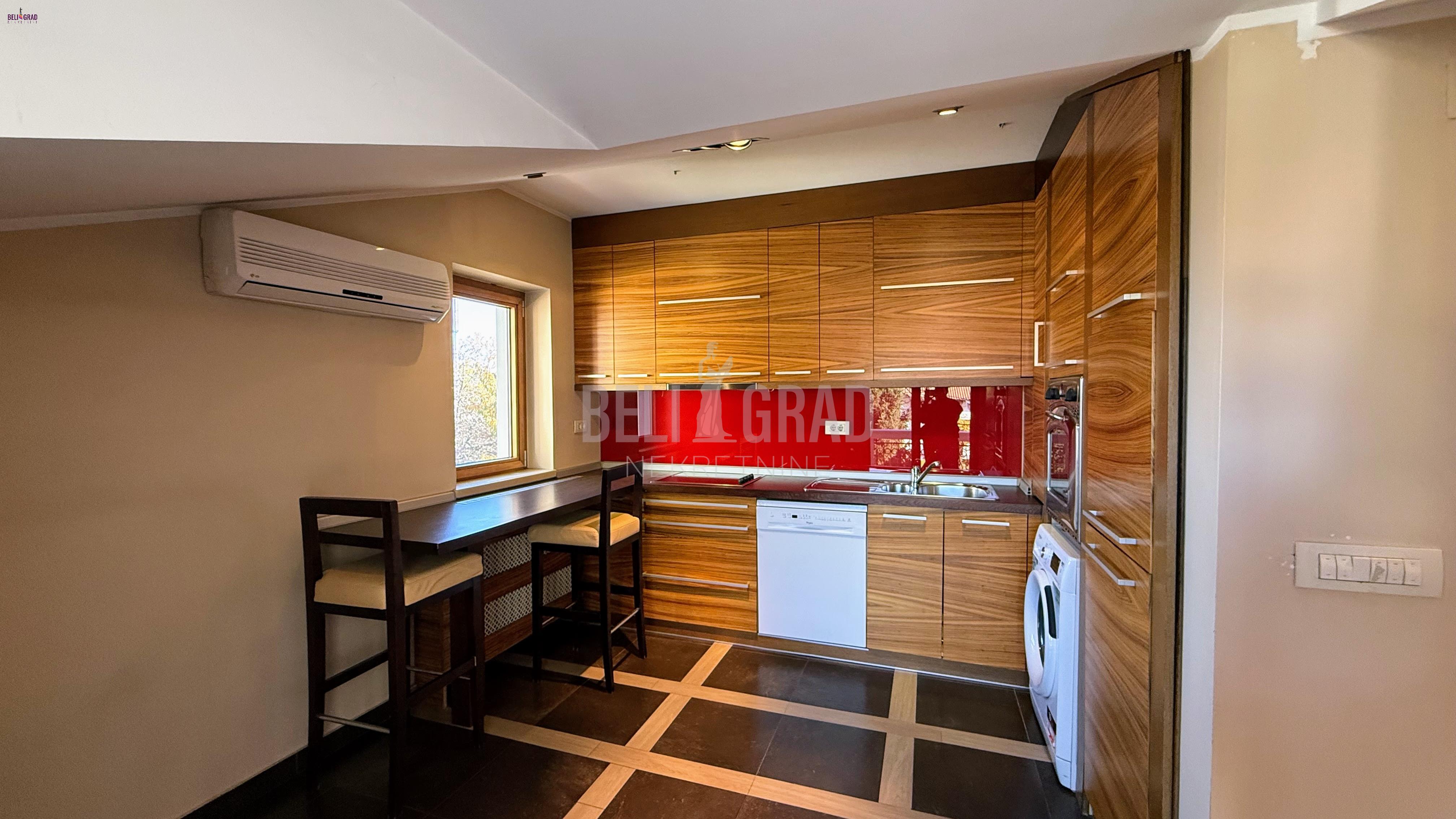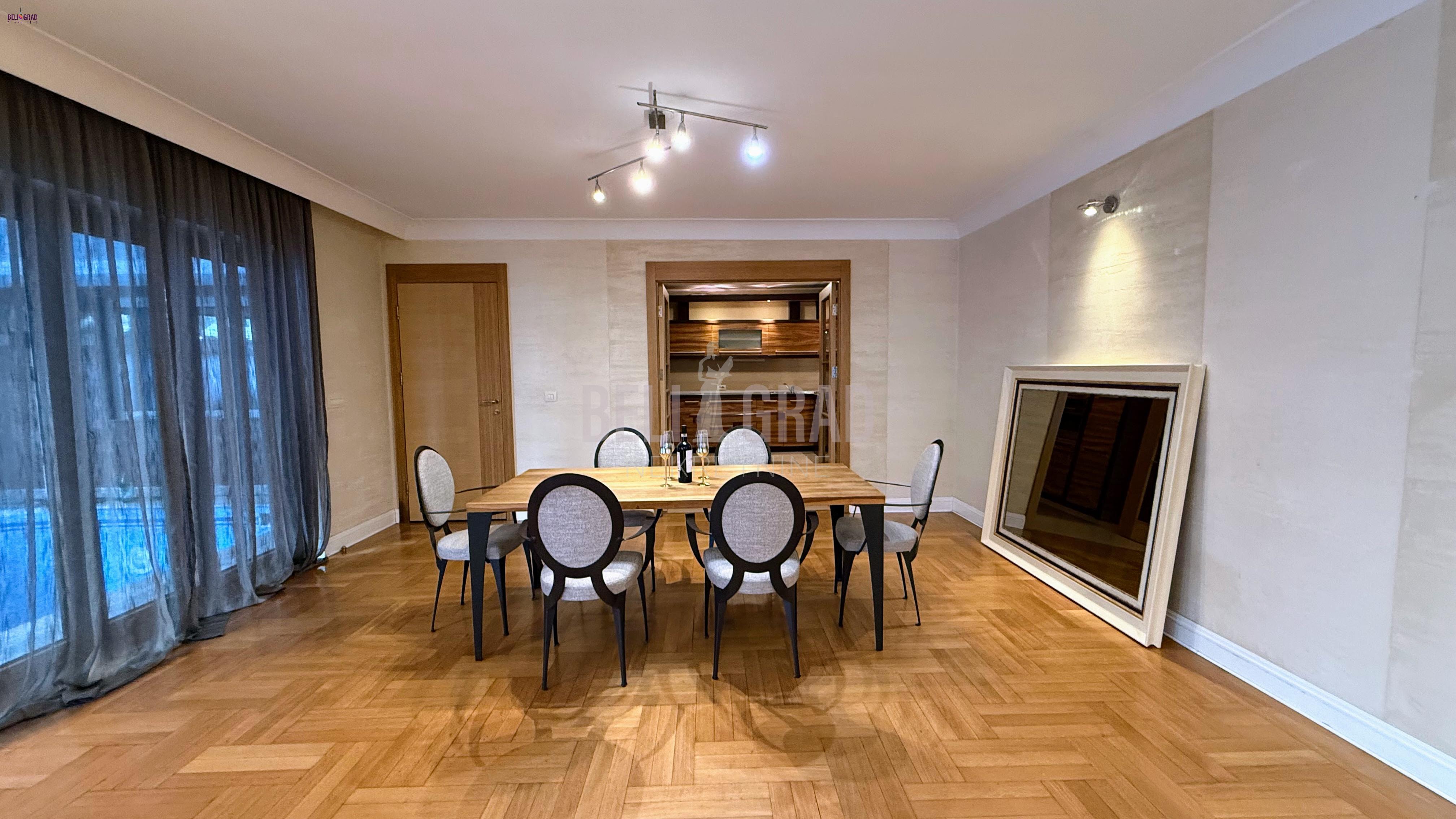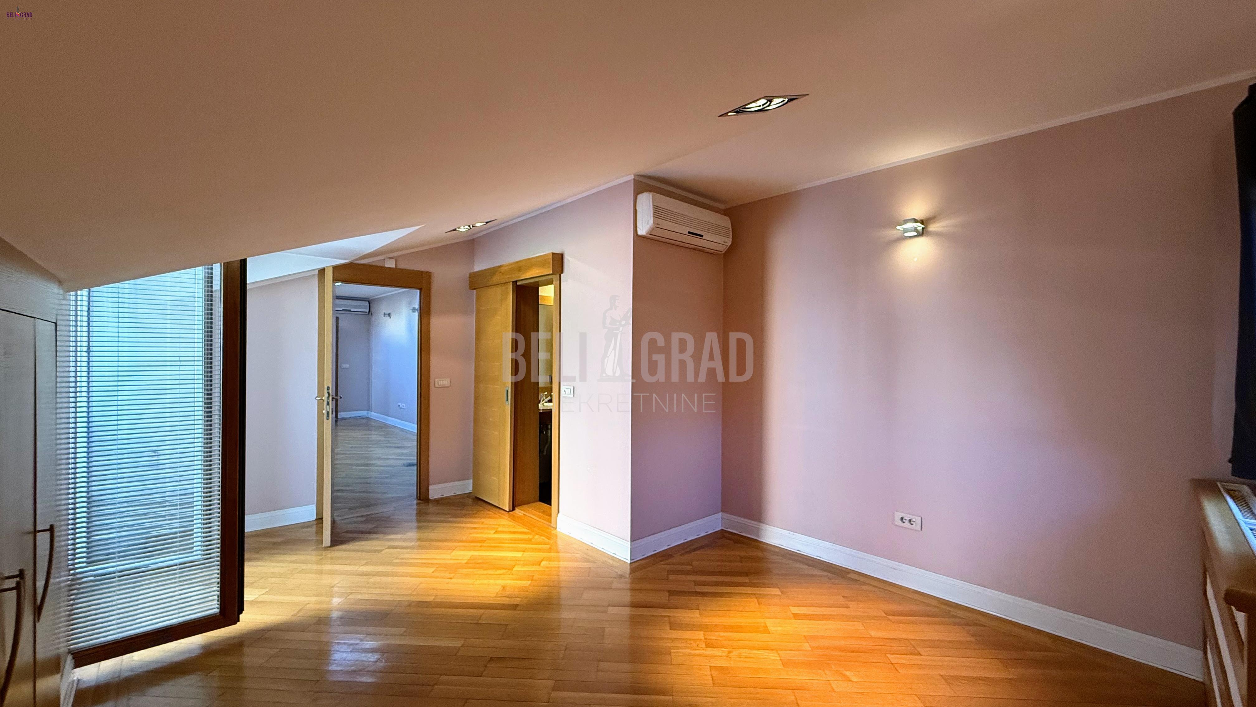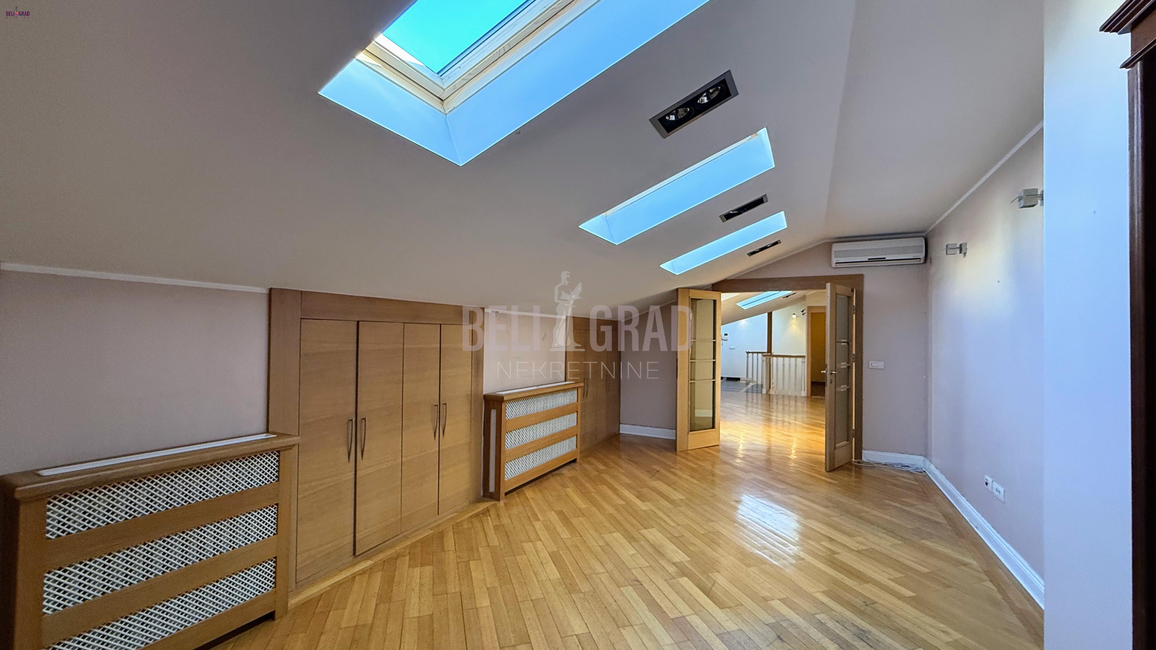 | Izuzetno lepa, mirna lokacija na Dedinju, pokraj Šoline ulice. Kuća na sopstvenom placu od 3,57 ari, višespratna, prizemlje, sprat, potkrovlje, dvorište povezano sa zatvorenim bazenom. Garaža i dodatni parking prostor. Na tri etaže je raspoređeno veliki broj soba, većinom master sobe sa kupatilima, dnevni boravci, trpezarije, centralne salon sobe, dve kuhinje, hodnici, stepeništa po različitim krilima kuće, pet terasa, tehničke prostorije, ostave, bazen, dvorište, garaža, parking mesta. Kuća daje mogućnost življena dve višečlane porodice, kombinovanje poslovnog i životnog prostora, pogodno da se adaptacijom prostor prilagodi za manju kliniku, ali naravno i drugih mogućnosti u viziji kupca. Kuća je uknjižena na 388 m2, garaža 24 m2, uredni papiri, grejanje toplotne pumpe. Kompletno renovirana 2008. fasada i krov u septembru 2025. godine. Budućem vlasniku je ostavljeno da je dizajnira po svom ukusu i potrebama. Agencijska provizija 2% | |