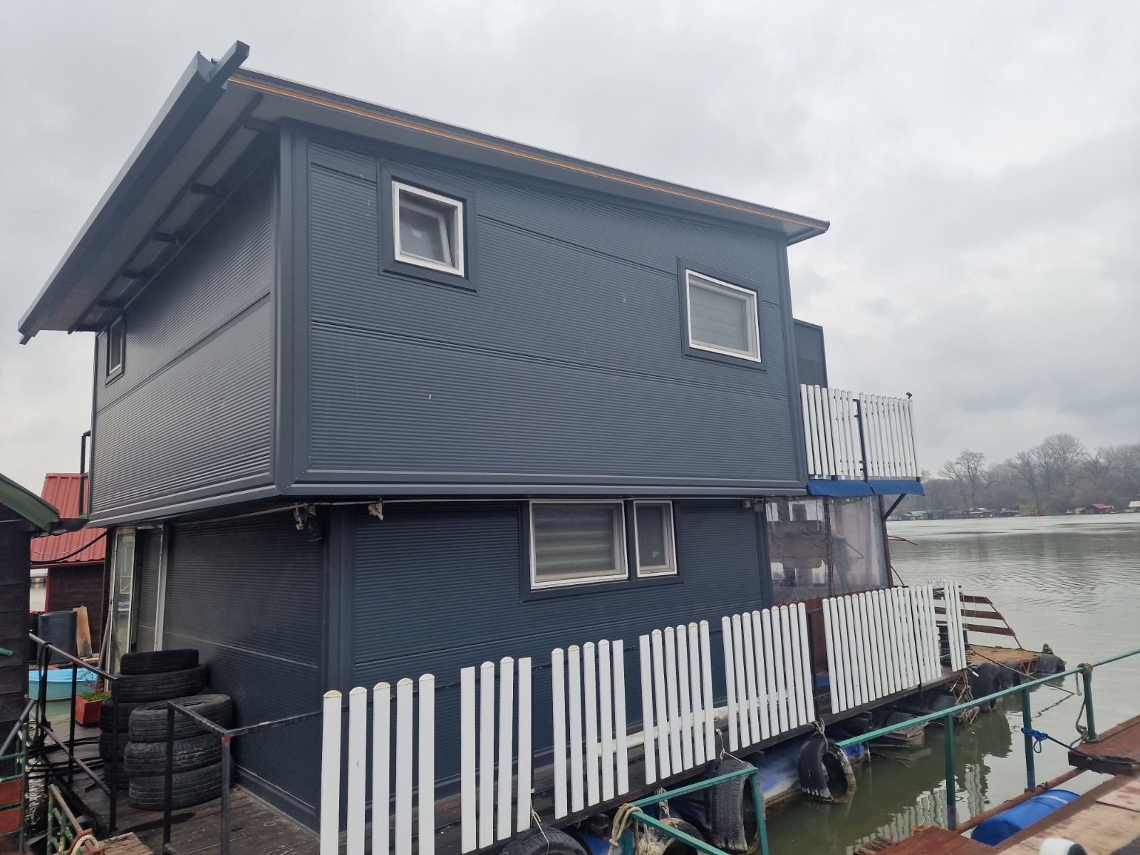| Splav na metalnim i plastičnim pontonima na početku savskog nasipa prema Galovici, zatvorenog prostora oko 55m2 i preko 30m2 terase Cena 100000 e Kontakt; 063223606 | |
