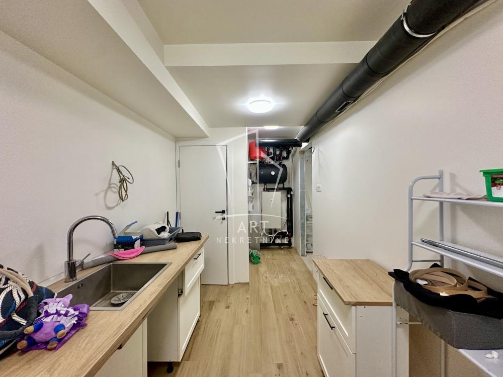 | Uknjiženo, Po+Pr+1+Ptk, 182m2, 5.0, CG, renovirano, 3 mokra čvora, terasa, lođa, dvorište, podrum. Odlična porodična stambena kuća u nizu, na izueznoj lokaciji. renovirana, bez ulaganja. Kuća se sastoji od prizemlje + 2 sprata, kao i podrumsku prostorija koja ima mokri čvor. Postoji ograđen prostor ispred kuće - ulazno dvorište i veće dvorište iza kuće. Nema pripadajuću garažu Prizemlje: veliki dnevno - trpezarijski prostor sa kuhinjom, iz dnevnog boravka se izlazi na veliku zastakljenu lođu odakle se izlazi u dvorište oko 20m2. Prvi nivo: dve spavaće sobe, svaka sa svojim kupatilom, veća soba ima i izlaz na terasu. Drugi sprat: dve spavaće sobe sa velikim zajedničkim kupatilom, nema kosina. Kuća je uknjižena na prodavca na 182m2 korisne površine, kao stan Po+Pr+1+Ptk. Agencijska provizija 2.4 % Agent: Kristofer Šnajder, br. licence:1171 "Art nekretnine" d.o.o. Beograd Reg. br.339 011/26-20-734 . | |
