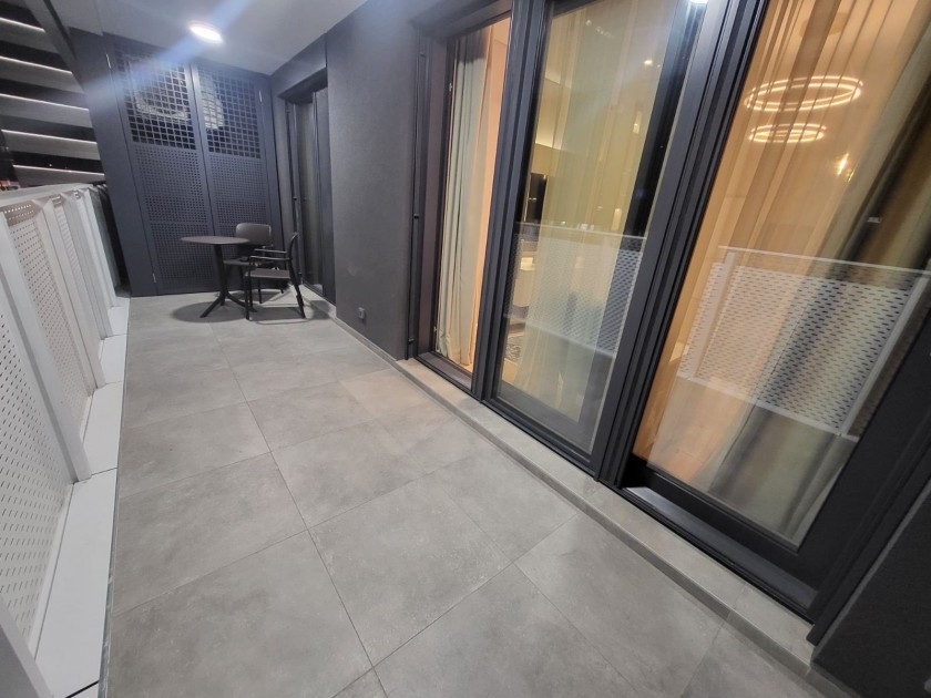 | Stan se nalazi u novoj zgradi Kennedy Residence, sastoji se iz hodnika,dnevni boravak sa trepezarijom i kuhinjom,tolet,terasa i spavaca soba sa sopstvenim kupatilom.Doplata za garazu je 150eur. | |