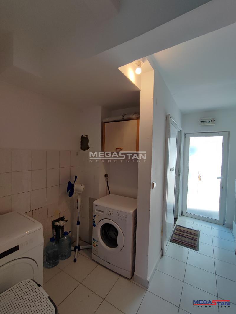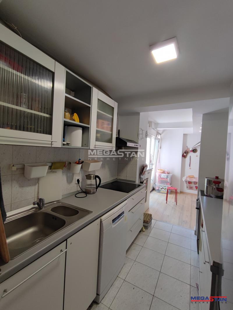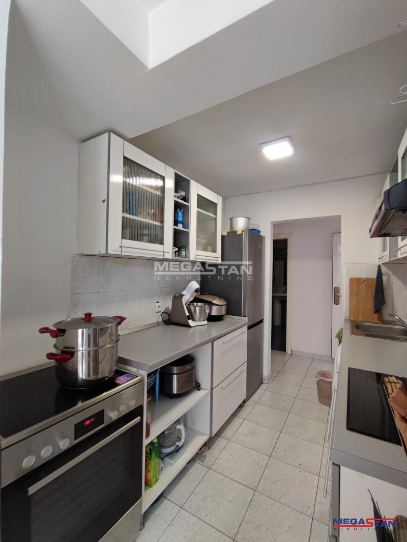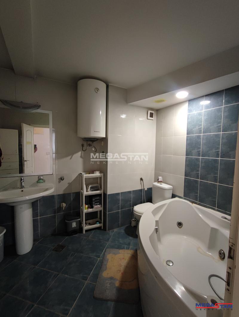 | U prilici smo da Vam ponudimo izuzetno dobar stan, odlične strukture. Na fantastičnoj lokaciji u blizini velikih marketa, pijace, autobuskih stajališta. Stan je odlične stukture, sastoji se od dve odvojene stambene jedinice, u većoj od 84m2, nalazi se velika dnevna soba, 3 spavaće, kuhinja i dva mokra čvora; manji stan koji ima oko 20m2, funkcioniše kao posebna stambena jedinica, sastoji se od jedne sobe, kupatila i male kuhinje. Obe stambene jedinice izlaze na veliku terasu koja ima 25m2, što ovaj stan čini posebno primamljivim, manji deo stana pogodan je za rentiranje. Zbog same pozicije stana može se koristiti i kao poslovni prostor sa više kancelarija. Renoviran, PVC stolarija, zamenjene vodovodne i elektroinstalacije. Za svaku preporuku. Agencijska provizija za kupca 2%. Broj agencije u Registru posrednika 298. Mapa je informativnog karaktera, ne prikazuje tačnu lokaciju nekretnine. | |
