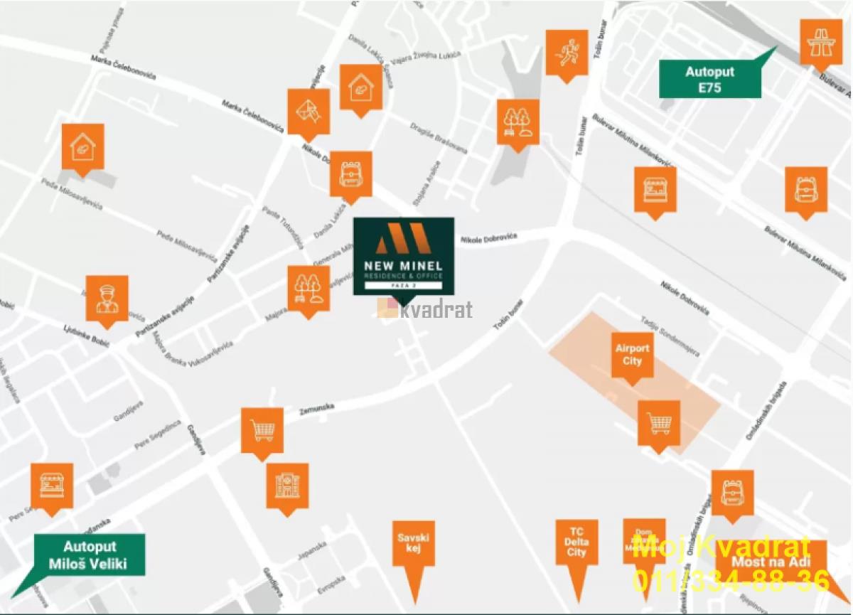 | Novi Beograd, Blok 60 - Tošin bunar - NEW MINEL 4.0, 84m2, 12/22, CG, lift, klima, telefon, interfon, video nadzor, garaža Četvorosoban luksuzan stan u novom stambenom kompleksu New Minel na Novom Beogradu. Kompleks je organizovan kao kondominijum čija je druga faza izgradnje u toku. U gradnji su korišćeni najkvalitetniji materijali, a objekat poseduje podzemnu garažu i punjače za električne automobile. U ponudi su stanovi različitih struktura (trosobni, četvorosobni, petosobni...). Očekivani rok završetka gradnje je 2025.godina. Cene su izražene bez PDV-a. Građevinska dozvola Bez provizije za kupce! Video nadzor, Interfon, Telefon, Klima, Nije prizemlje Nije poslednji sprat Gradska kanalizacija | |