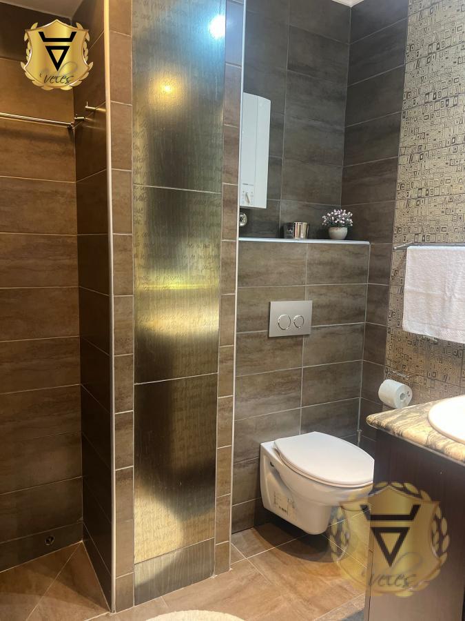 | Moderan stan sa 2 terase, 2 spavaće sobe, wc i kupatilo, garaža, cg, 2 klime. Agencija za nekretnine Veles broj u registru posrednika 1149 Agencijska provizija 50%* Način plaćanja: kirija+depozit+ag.provizijaTV, Veš mašina, Frižider, Šporet, Kreveti, Plakari/Ormani, Sudopera, Kuhinjski elementi, Interfon, Internet, Telefon, Kablovska, Klima, | |