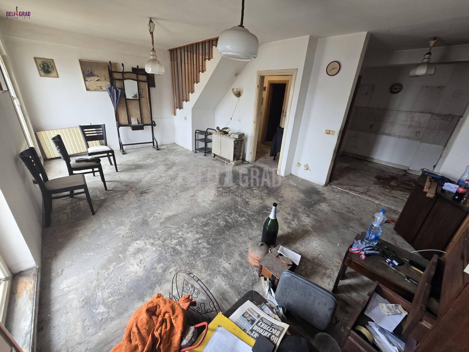 | Funkcionalan dvoetažni stan u zgradi iz 2000-te godine. Potrebno je kompletno renoviranje, zapadno orjentisan, sunčan i svetao. Blizina prevoza, prodavnica . Prostorije: I Nivo: Predsoblje, kuhinja, trpezarija, dnevni boravak, kupatilo, terasa; II Nivo: Predsoblje, tri spavaće sobe, kupatilo, dve terase. Agencijska provizija 2%. | |