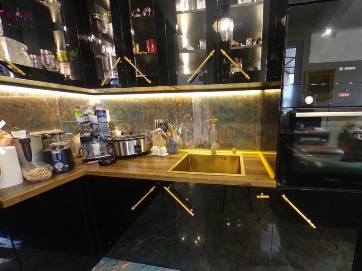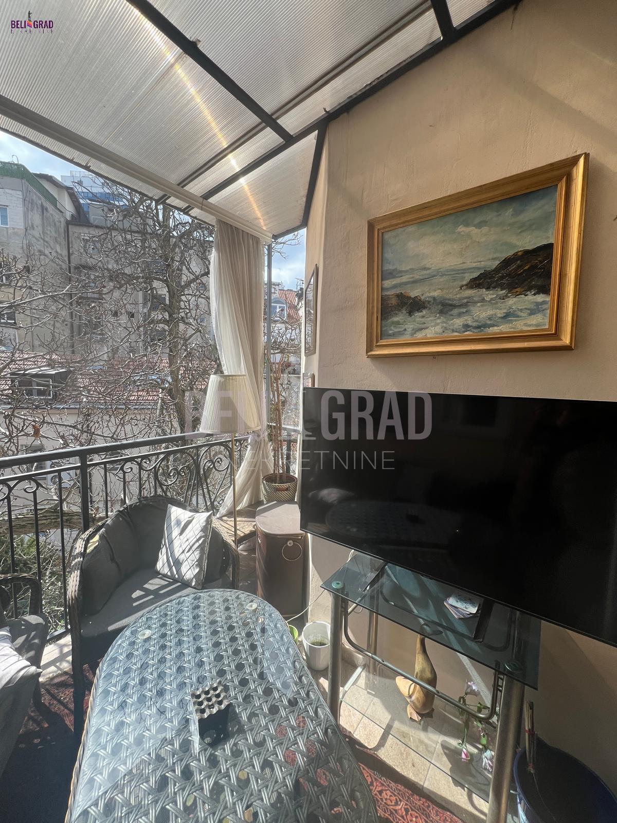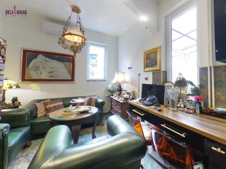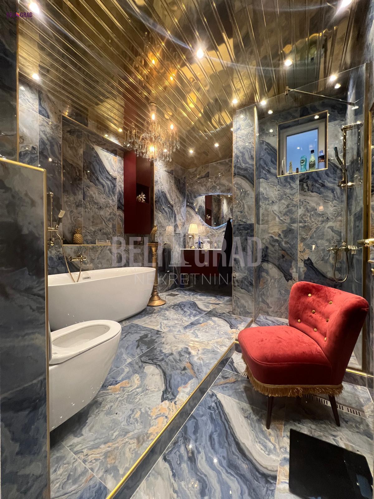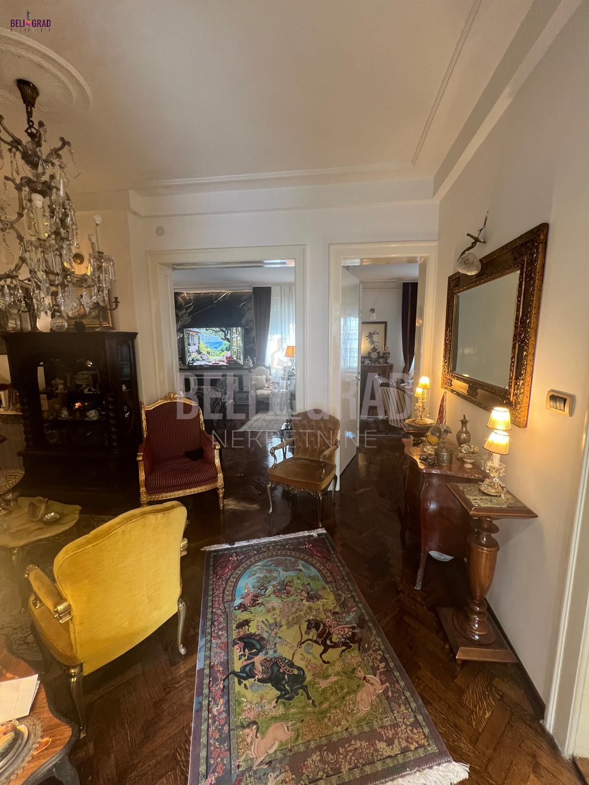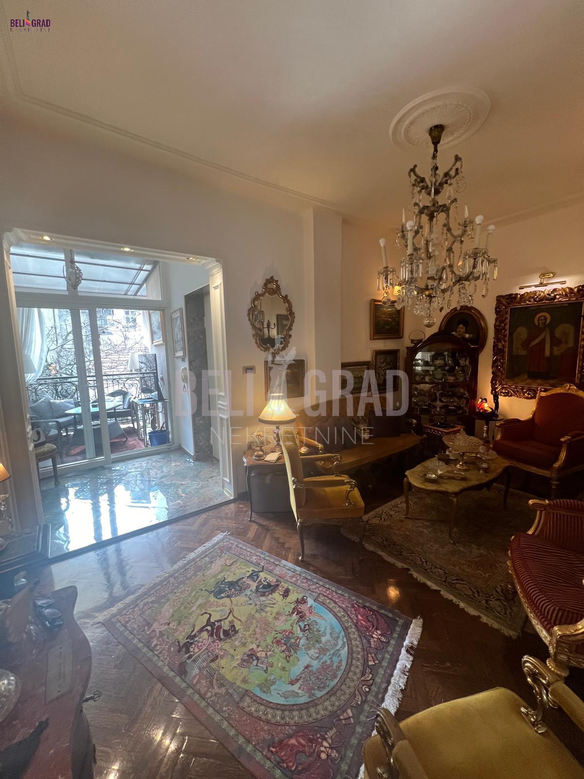 | Jedinstven ekskluzivan salonski stan povrsine 109m2 sa terasom, pozicioniran na odličnoj lokaciji u ulici Stanoja Glavaša, ispod Tašmajdana,u održavanoj predratnoj zgradi. U zgradu se ulazi kroz prelepo dvorište, a objekat poseduje i još jedno veliko dvorište iza zgrade koje je puno zelenila i rezervisano samo za stanare zgrade, sa izuzetno očuvanim i urednim širokim mermernim hodnikom. Stan čine tri prostrana salona – dva orijentisana ka ulici i jedan, prijemni-prolazni, ka dvorištu, što prostoru daje izuzetnu dubinu, prozračnost i eleganciju. Tu su i prostrana kuhinja i veliko, luksuzno kupatilo. Svaka prostorija ima svoj prozor i obilje prirodnog svetla. Stan poseduje i terasu od 6 kvadrata koja je okrenuta ka unutrasnjem dvoristu. Stan je kompletno renoviran, uz upotrebu najsavremenijih materijala i završnih radova vrhunskog kvaliteta. Enterijer je uređen u prefinjenom stilu “novi retro” ili savremeni klasicizam, u nekim detaljima i kao eklektični luksuz koji skladno kombinuje sofisticiranu klasiku i modernu estetiku. Podovi su obloženi mermernim pločicama Trussardi, kupatilo je opremljeno italijanskom keramikom i ovalnom samostojećom kadom, dok kristalni lusteri i autentičan nameštaj dodatno naglašavaju luksuz i karakter prostora. Iznad stana se nalazi betonska ploča i tavan visine oko 5 metara, koji se može adaptirati u stambeni ili poslovni prostor po želji budućeg vlasnika. Zgrada je izvorno građena kao privatna kuća, sa prednjim dvorištem i zadnjim dvorištem površine oko 2 ara, koje se koristi kao mirna zelena oaza za odmor — retkost u samom centru grada. Stanu pripada podrum, bezbedan, suv i sa osvetljenjem. Stan odiše toplinom, stilom i reprezentativnošću, idealan za one koji cene bezvremenski dizajn, vrhunski kvalitet i prestižnu lokaciju. Agencijska provizija 2% | |