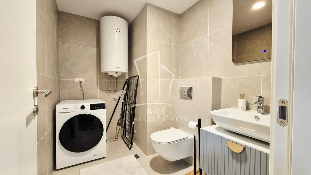 | Izdaje se namešten stan na odličnoj lokaciji u kompleksu Big residences. Sastoji se iz ulaznog hodnika, dnevnog boravka sa kuhinjsko trpezarijskim delom, dva kupatila, dve sobe od kojih će manja biti opremljena po želji zakupca i terase. Mesečni troškovi niski, grejanje je centralno na kalorimetre i plaća se po potrošnji. Mikrolokacija izuzetna, blizina svih sadržaja za svakodnevni život. Odlična povezanost javnim prevozom sa svim delovima grada. Kućni ljubimci nisu dozvoljeni. Garažno mesto u okviru samog kompleksa se posebno naplaćuje. Agencijska provizija 50% vrednosti jedne mesečne zakupnine Agent: Miloš Graora br. licence 4996 Art nekretnine d.o.o. Beograd. Reg. br.339 011/26-20-734 MG06 . | |