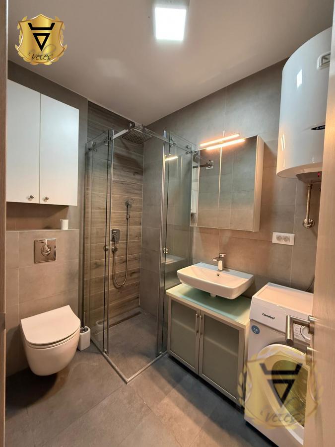 | Izdavanje stana u centru grada, u novogradnji, neuseljavan, dvosoban, terasa i francuski balkon. Centralno grejanje po potrošnji, kalorimetri. Mogućnost iznajmljivanja parking mesta u zajedničkoj garaži. Miran kvart u neposrednoj blizini Cvijićeve ulice, zgrada useljena ove godine. Blizina TC zira, osnovna škola, biblioteka, prodavnice, kafići, autobuska stanica, sve na stotinak metara udaljenosti. Agencija za nekretnine Veles broj u registru posrednika 1149 Agencijska provizija 50%* Način plaćanja: kirija+depozit+ag.provizijaTV, Veš mašina, Frižider, Šporet, Kreveti, Plakari/Ormani, Sudopera, Kuhinjski elementi, Interfon, Internet, Telefon, Kablovska, Klima, | |