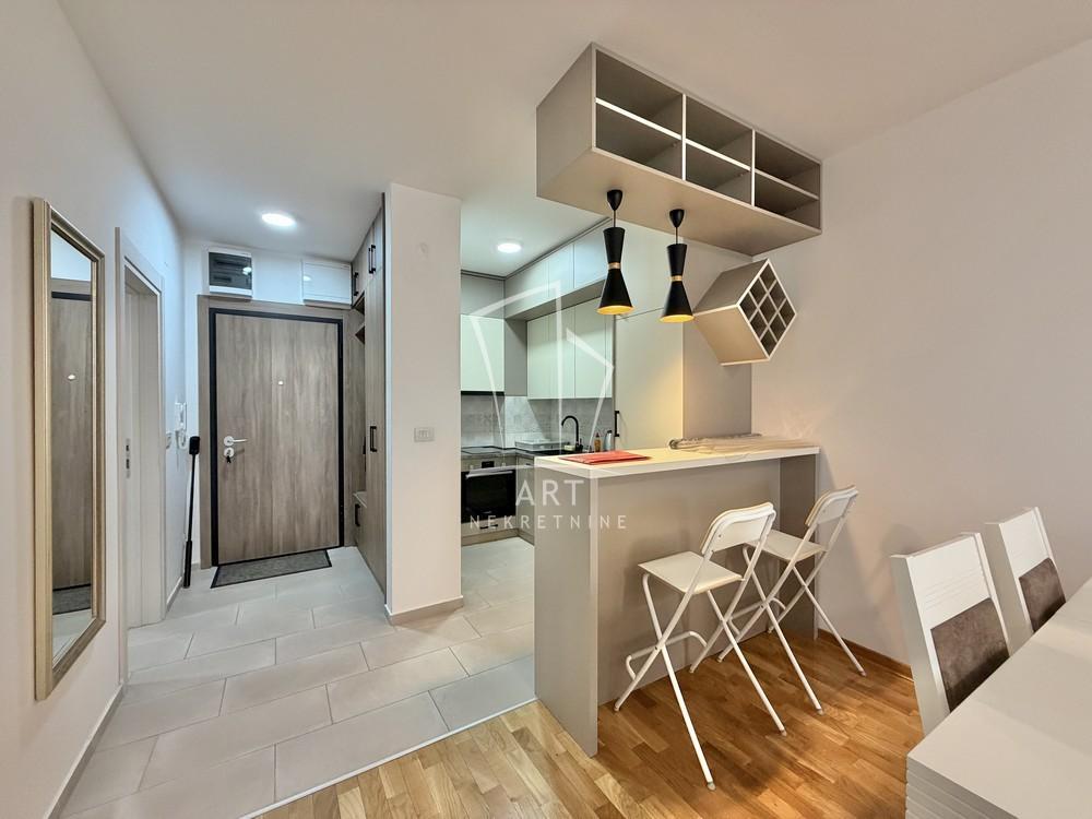 | Izdaje se izuzetno lep, nov i moderno opremljen stan u prestižnom kompleksu Green Residence. Stan se nalazi u novoj, kvalitetno građenoj i funkcionalnoj zgradi, koja оstavlja utisak modernog stila i komfora. Stan je opremljen novim i biranim nameštajem i tehnikom, a ceo prostor odiše toplinom, elegancijom i prijatnom atmosferom. Struktura: - dnevni boravak sa kuhinjom - odvojena spavaća soba - terasa Dodatna pogodnost: - parking mesto uključeno u cenu Odlična lokacija, moderna zgrada i kompletno uređen stan čine ovu nekretninu idealnom za udoban i kvalitetan život. Agencijska provizija 50% vrednosti jedne mesečne zakupnine Agent: Jasna Šnajder, br. licence: 2844 "Art nekretnine" d.o.o. Beograd Reg. br. 339 011/26-20-734 JM02 . | |