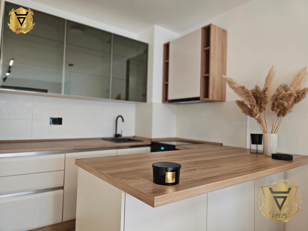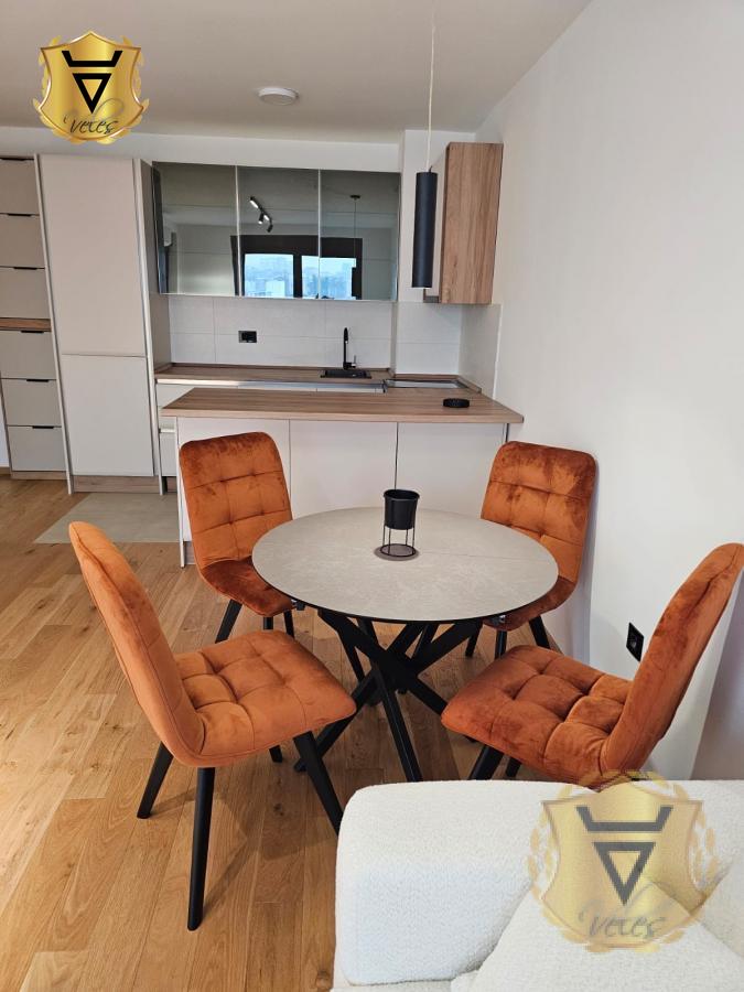 | Mir i luksuz u centru grada. Nov, moderno opremljen stan, u novoj zgradi u prelepom kompleksu "Pionir Palace" sa prelepim pogledom. Stan je izuzetno prostran i svetao, poseduje garažno mesto (doplata 100 eur). Garaža je komforna sa rolo vratima, pogodna za veće automobile u koju se ulazi sa ulice, a lift vodi direktno do stana. U stanu je sve novo. Komplet je opremljen. Od prostorija ima predsoblje sa velikim cipelarnikom, modernu kuhinju sa ugradnim frižiderom, mašinom za sudove, šporetom sa ravnom pločom i suvom ostavom. Trpezarija i dnevni boravak su vrlo prostrani sa ekskluzivnom ugaonom garniturom i televizorom od 65" inča. U spavaćoj sobi se nalazi udobni francuski ležaj dimenzija 160x200 i veliki klizni garderober. Velika terasa sa "jaje" ljuljaškom daje dodatnu magiju ovom stanu jer se sa nje pruža očaravajući pogled na park i pola Beograda. Obavezan je depozit u visini jedne mesečne kirije. Peace and Luxury in the City Center Brand-new, modernly furnished apartment in a new building with a stunning view and a parking space (100eur). Garage is spacious with a roller shutter door, suitable for larger vehicles, accessible directly from the street with an elevator leading straight to the apartment. Everything in the apartment is brand new and fully equipped. Layout and features: Entrance hall: Equipped with a large shoe cabinet. Kitchen: Modern design with built-in appliances, including a refrigerator, dishwasher, stovetop and pantry. Living & Dining area: Very spacious, featuring an exclusive corner sofa and a 65-inch TV. Bedroom: Features a comfortable queen-size bed (160x200 cm) and a large sliding wardrobe. Terrace: A large terrace with an "egg" swing chair adds a touch of magic, offering an enchanting view of the park and half of Belgrade. Parking space is not included in the price (100EUR). A security deposit equal to one month's rent is required. Agencija za nekretnine Veles broj u registru posrednika 1149 Agencijska provizija 50%* Način plaćanja: kirija+depozit+ag.provizijaTV, Veš mašina, Frižider, Šporet, Kreveti, Plakari/Ormani, Sudopera, Kuhinjski elementi, Interfon, Internet, Telefon, Kablovska, Klima, | |