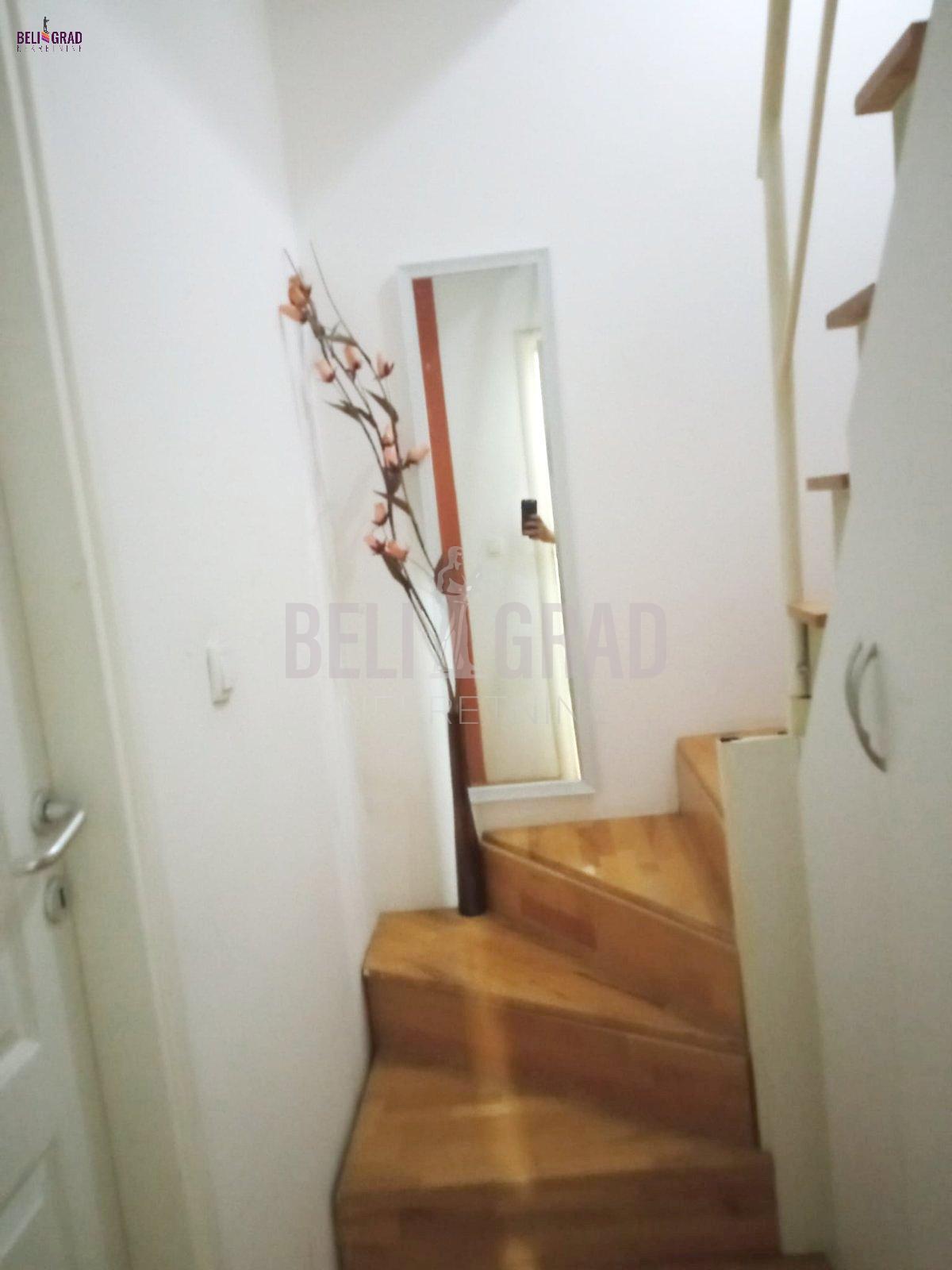 | Stan se nalazi u mirnom delu Karaburme. Zgrada je okružena parkingom. Stan je nadogradnja iz 2012. godine. U neposrednoj blizini se nalazi stara i nova okretnica autobusa 16, 23, 25, kao i pijaca, TC Big, TC Karaburma, četiri osnovne škole, vrtići, dom zdravlja. Donji nivo se sastoji od hodnika, kuhinje, prostrane dnevne sobe, spavaće sobe i kupatila, dok se na gornjem nivou nalaze dve spavaće sobe i kupatilo pod kosinom, sa dosta ugradnih plakara. Stan je uknjižen na 50 kvm sa nadograđenom galerijom od 35 kvm. Agencijska provizija 2%. | |