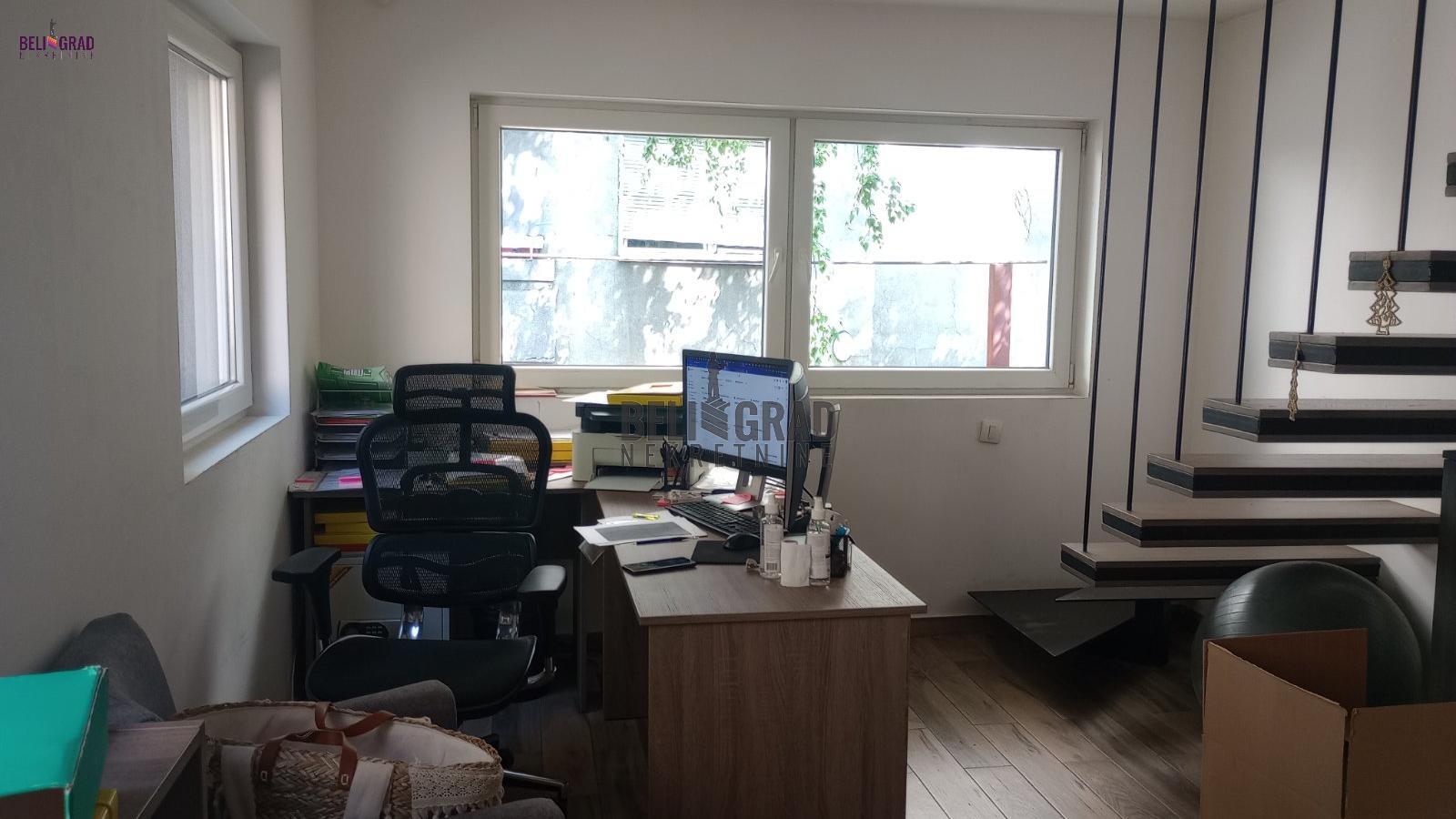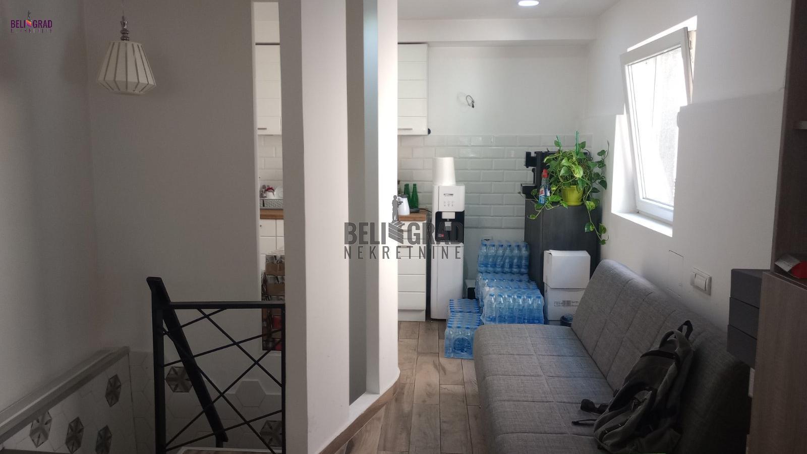 | Stan je vertikala zgrade sa zasebnim ulazom. Moderno opremljen, trenutno funkcioniše kao poslovni prostor što mu je idealna namena sa obzirom na lokaciju. Ima dva nivoa - na prvom je otvoren prostor sa kuhinjom, a na drugom su dve odvojene kancelarije i kupatilo. Minimalni troškovi za infostan i struju. Uknjižen 1/1. Agencijska provizija 2% | |