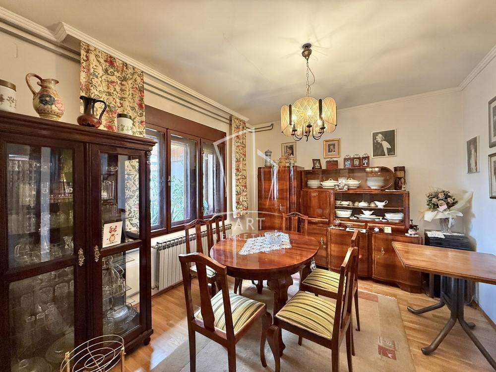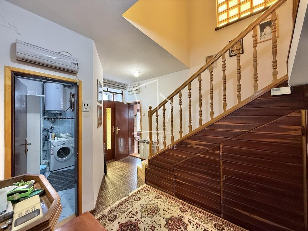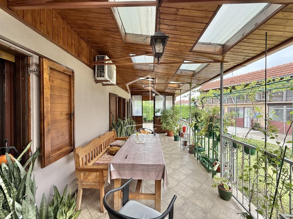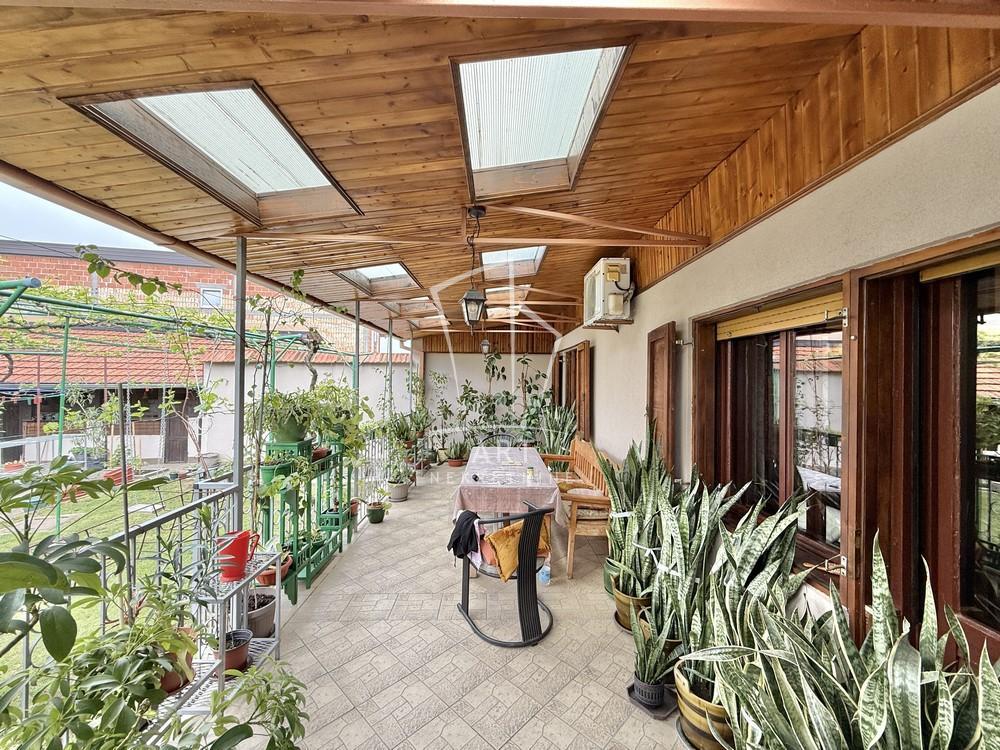 | Prodaje se uknjižena kuća veličine 235m2 u naselju Starčevo u blizini osnovne škole, vrtića i nekoliko trgovinskih lanaca na nekoliko minuta vožnje od centra Pančeva. Kuća se sastoji od ulazne zone, hodnika, drvenog stepeništa ispod koga se nalazi cipelarnik, kupatila, spavaće sobe, kuhinje sa trpezarijom i dnevnog boravka sa izlazom na terasu koja je nadkrivena i ima svetlarnike. Na spratu se nalazi dnevni boravak sa izlazom na terasu, tri spavaće sobe i kupatilo. U sklopu kuće postoji prostorija u kojoj se nalazi još jedna kuhinja i iz te prostorije se može izaći u dvorište. U dvorištu se nalazi travnjak koji je nadkrivena vinovom lozom, takođe u dvorištu postoje pomoćni objekti veličine 160 m2 i koji se sastoje od dve garaže od kojih u jednoj postoji klima a u drugoj je razveden radijator, letnje kuhinje, radionice, pušnice i prostora za životinje. U celoj kući je razvedeno grejanje aluminijumskim radijatorima i može se grejati na struju, pelet, butan, čvrsto gorivo, lož ulje i razvedene su instalacije za gas koji je prošao ulicom. U toku grejne sezone kroz instalacije se dobija i topla voda a leti se koriste bojleri. U kući ima nekoliko inverter klima. Takodje kuća poseduje vinski podrum i tavan.Uz dogovor neke stvari u kući mogu ostati. Postoje svi uslovi za udoban i miran život. Agencijska provizija 2% Agent: Lazar Vlahović br. licence 2772 "Art nekretnine" d.o.o. Beograd.Reg. br. 339. 011/26-20-734 LV . | |