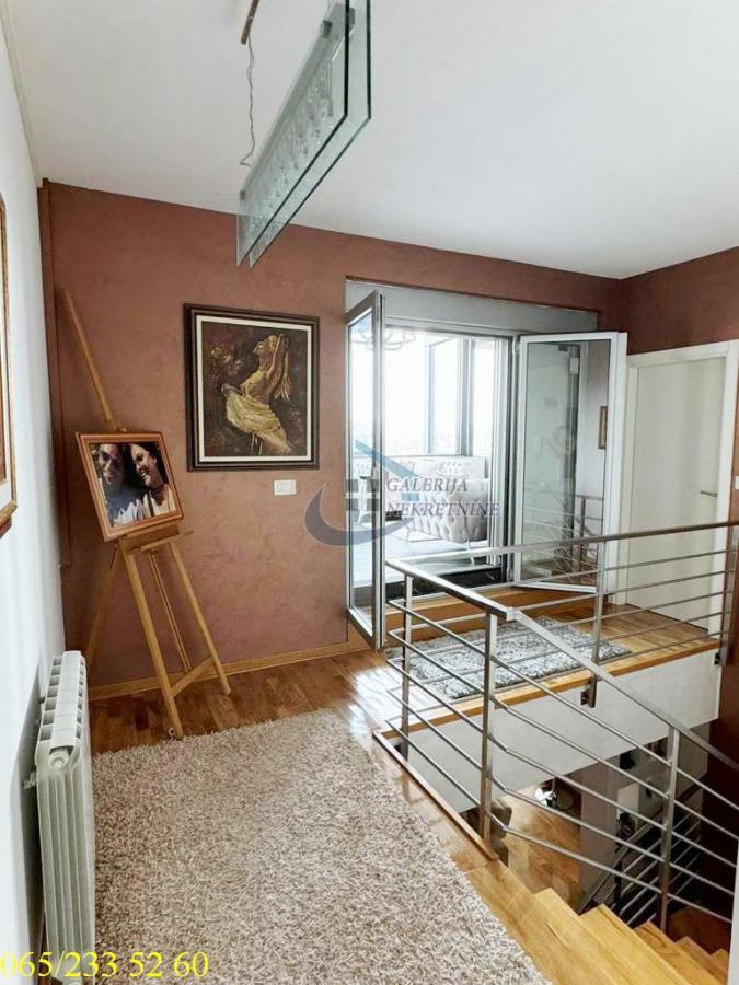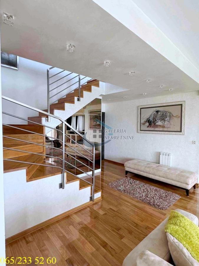 | 4.5, 270m2 (tri terase od kojih je jedna krovna od 100m2), 2/2, triplex, CG/podno, interfon, internet, ktv, video nadzor, dva parking mesta. U prilici smo da Vam ponudimo izuzetno luksuznu, vanserijsku nepokretnost koncipiranu kao triplex u ulici Luke Vojvodića na obodu Košutnjaka. Zgrada u kojoj se nalazi ova nepokretnost je čista i održavana. Ovaj elitni deo Skojevskog naselja sem što je na nekoliko metara od Košutnjaka može se pohvaliti i blizinom mnogobrojnih prodavnica koje su na par stotina metara od navedene zgrade. Tu je i Lidl, veliki Maksi, bezbroj kafića, nekoliko prevoza itd... Stan je kompletno i temeljno renoviran u januaru 2024-e godine, dvostrano je orijentisan, izuzetno komforan, sa komotnim sobama funkcionalno raspoređenim, nalazi na drugom spratu i trećem spratu. Savršeno osvetljen i bez buke, otvorenog panoramskog pogleda na okolinu i Košutnjak. Kompletna ulica, garažna mesta, terase i zgrada, pokriveni su video nadzorom. Postoji alarmni bezbednosni sistem, kao i protivpožarni alarm. Ulazak u stan i zgradu putem otiska prsta i šifre. Nekretnina je perfektno projektovana i organizovana do najsitnijih detalja, kako bi se zadovoljile estetske i funkcionalne potrebe vlasnika. Kvalitet gradnje, ugrađenih materijala i opreme je visok (spoljašnja alu stolarija, odlična unutrašnja stolarija, vrhunski parket, kvalitetna keramika, itd....), pa je kao nov, te nisu potrebna apsolutno nikakva dodatna ulaganja. Prvi nivo je dnevno-trpezarijsko-kuhinjski deo u modernom open space stilu, sa vrlo komotnim kupatilom i lepom terasom. Drugi nivo je spavaći blok sa velikim kupatilom i dve komforne spavaće sobe, treća soba je trenutno u funkciji mini teretane sa trakom za trčanje i svojom saunom. Pametna tehnologija omogućava upravljanje svim električnim uređajima putem aplikacije. Komforu dodatno doprinose dve jacuzzi kade (nutrašnji i spoljašnji), dva komotna kupatila, kao i impresivna krovna terasa na trećem nivou od oko 100 m2 (potpuno ograđena kao da je dvorište u pitanju) a koja predstavlja pravu privatnu oazu za uživanje i na koju se izlazi samo iz ovog stana. Grejanje je centralno - podno. Cena stana uključuje celokupan nameštaj i tehniku (televizori, masažna stolica, bela tehnika potpuno nova: frižider, mašina za pranje sudova, mašina za veš...), kao i dva natkrivena parking mesta. Sve u svemu, vrlo retka, impresivna nepokretnost što prostorno što lokacijski, koja nikoga neće ostaviti ravnodušnim. Od prostorija : Nivo I - ulazni deo, kuhinja, trpezarija i veliki dnevni boravak kao open space, kupatilo, terasa. Nivo II - pretprostor, dve spavaće sobe, treća soba, kupatilo, zastakljena terasa sa jacuzzi kadom Nivo III - površine 100m2 - krovna terasa Uknjižen na 138m2. Ukupna površina koja pripada stanu po rečima i tvrdnji vlasnika nekretnine je 270m² od čega je: uknjiženih 138m², dodatnih 30m² u procesu uknjiženja, i oko 100m2 krovne terase. Agent: Slavka Vasić 060/131 89 08 R-ID: #5254Kuhinjski elementi, Video nadzor, Video interfon, Interfon, Internet, Kablovska, Klima, Stara gradnja. | |