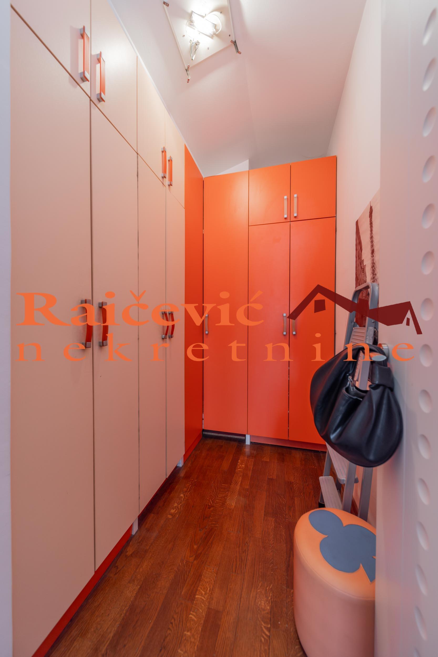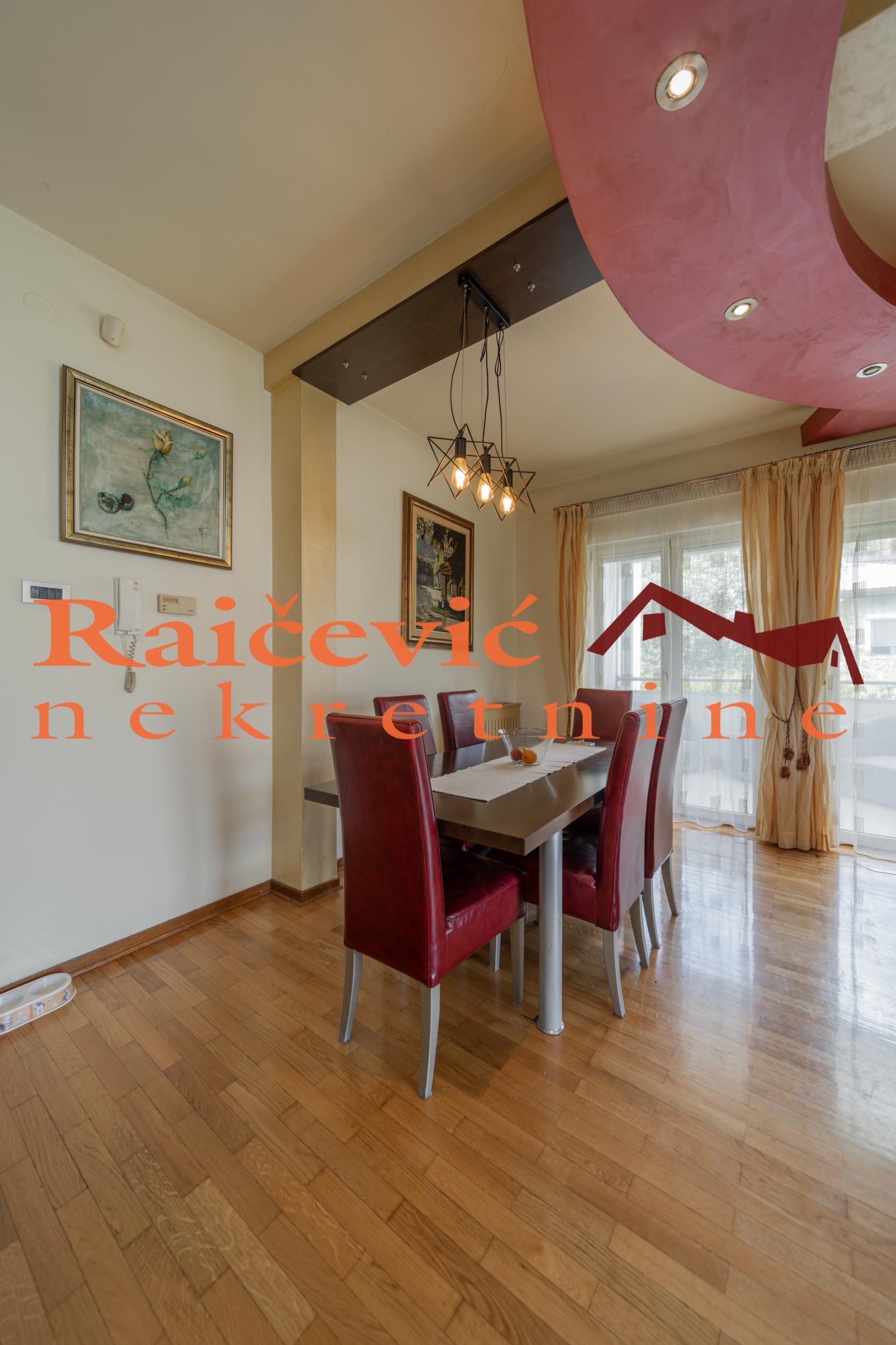 | SVI NASI KUPCI DOBIJAJU VREDAN POKLON! Dedinje, Aleksandra Tirnanica Tirketa, 4.0, 142 m2 sa terasom, lodjom i 2 balkona, I od II sprata, dupleks, eg-gas, telefon, bez lifta, interfon, video nadzor, ktv, internet, useljiv po dogovoru, izvorno stanje, parking mesto u garazi u ceni stana, uknjizen na 84 m2, ostava, novija gradnja iz 2009. godine. U ponudi imamo odlican stan na Dedinju. Trostrano je orijentisan, odlicno osvetljen i poseduje veliku terasu, veliku lodju i dva balkona za koje postoji mogucnost da se zatvore i od njih dobiju dodatne prostorije u okviru stana. Po strukturi je cetvorosoban dupleks, sa dva kupatila i walk in garderoberima. Takodje, poseduje parking mesto u garazi u okviru zgrade, kao i pripadajucu ostavu. Zgrada se nalazi u mirnom delu Dedinja, punom zelenila, sa prelepim pogledom, a sama zgrada je u slepoj ulici tako da nema saobracaja i buke. U blizini zgrade se nalazi dosta restorana, vrtica, osnovnih skola, a Vojnomedicinska akademija i Topciderski park su udaljeni na 5 minuta voznje. Ovaj stan je savrsena prilika za sve ljude koje zele miran kraj u ekskluzivnom delu grada. U cenu stana je uracunato i parking mesto u garazi zgrade kao i ostava od 30 m2. Cena 380 000 evra. Kupite ovu nekretninu preko agencije Raicevic nekretnine i POKLANJAMO VAM idejno resenje dizajna enterijera! Pozovite nas za vise informacija. Agencijska provizija koju placa KUPAC iznosi 2 % od dogovorene kupoprodajne cene. Raicevic nekretnine 064/1959991 || dokumentacija : uknjizen | |