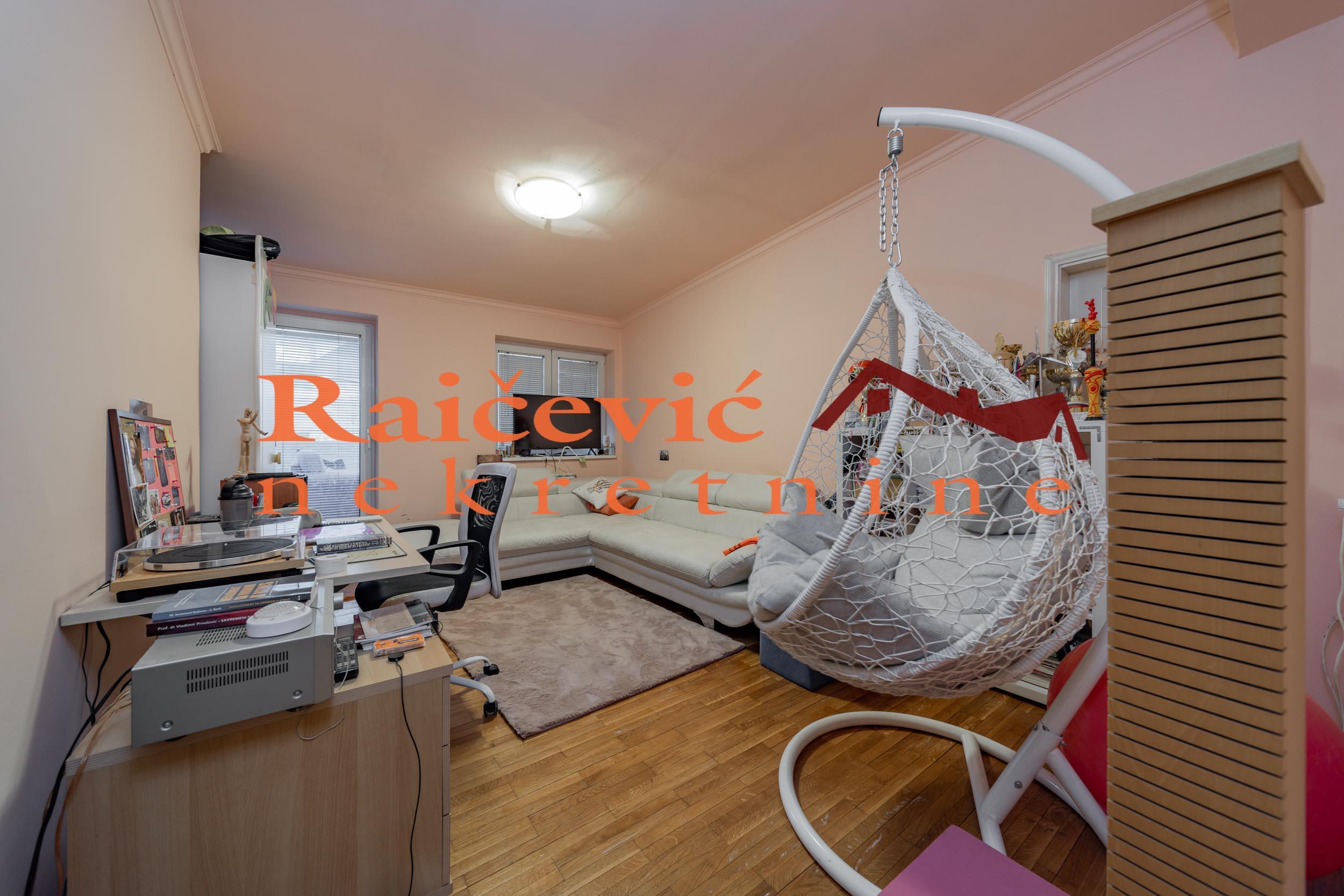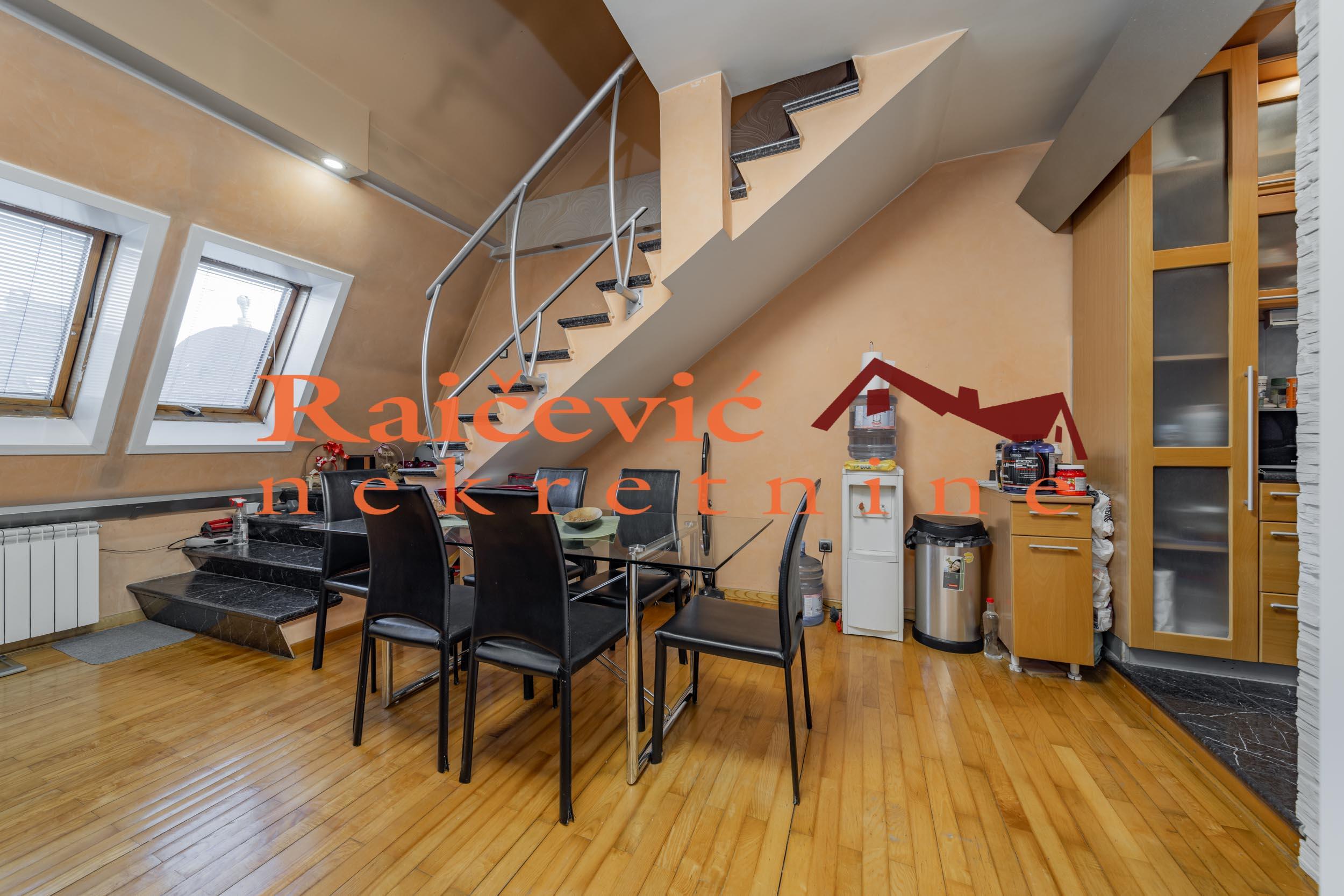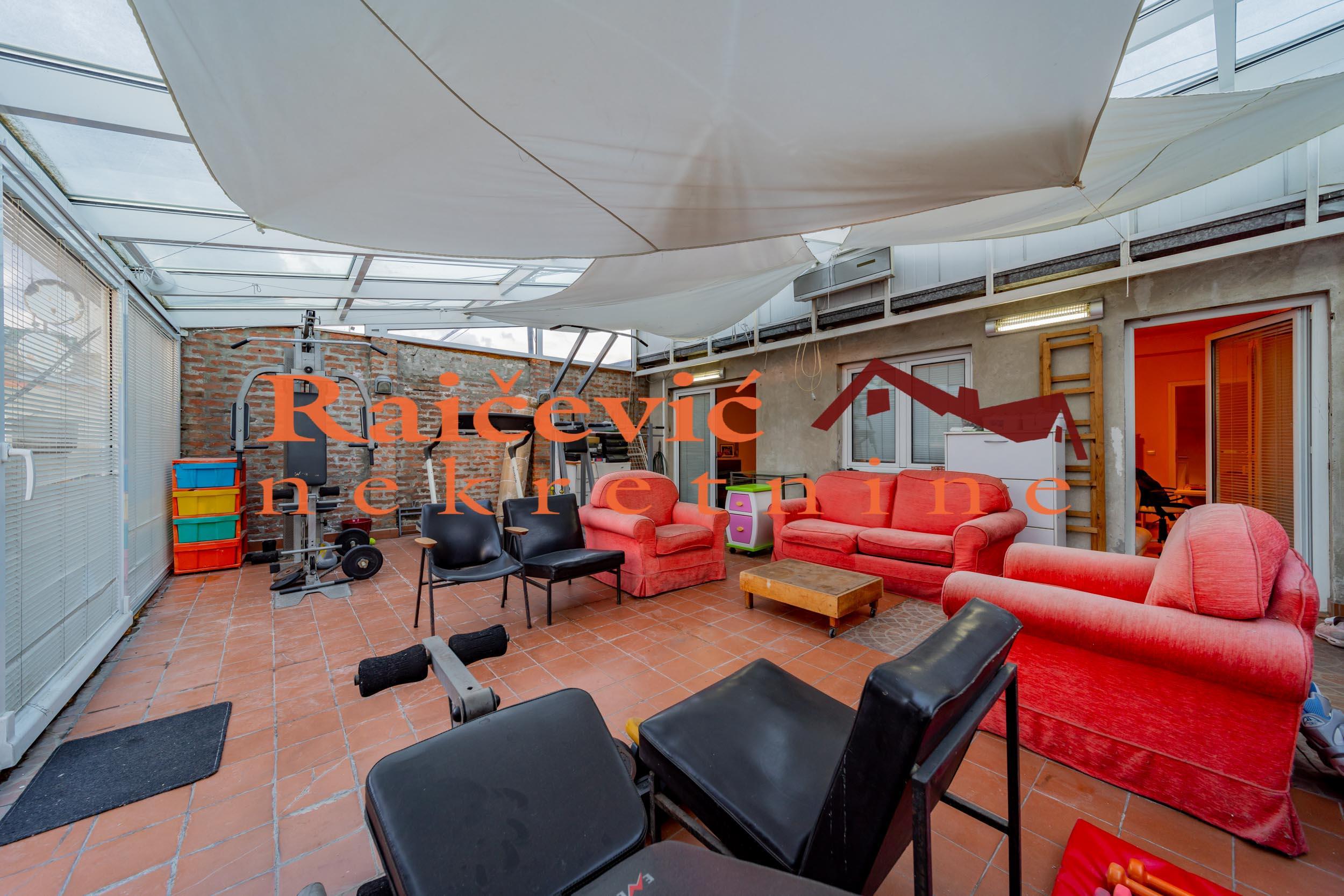 | SVI NASI KUPCI DOBIJAJU VREDAN POKLON! Centar, Koce Popovica, 4.0, 202 m2 sa terasom od 15 m2, IV od IV sprata, dupleks, eg, telefon, lift, interfon, ktv, internet, klima, useljiv po dogovoru, renoviran, resenje o ozakonjenju na 187.08 m2 neto povrsine (stan je predat na knjizenje), uknjizena zgrada. Prelep penthouse na izvanrednoj lokaciji u samom centru grada! Pored prelepog salonskog ulaza, fasade u besprekornom stanju i lokacije, stan ima nestvaran panoramski pogled, jedan od najlepsih u celom gradu. Pogled se pruza sa velike terase kojoj predhodi zastakljena jos veca zimska basta koja pruza pregrst mogucnosti kao i sam stan. Ako ovo postane vasa nekretnina imacete mir i osecaj da ste u svojoj kuci, a u stvari ste u centru zbivanja i u prelepoj salonskoj zgradi. Stan se sastoji iz dva nivoa. Na prvom nivou se nalaze prostrana dnevna soba, kuhinja, spavaca soba i kupatilo, a na drugom dve spavace sobe, veliko kupatilo i velika terasa sa prelepim otvorenim pogledom. Moze zamena za manji stan ili plac od 3 ara uz doplatu. Za svaku preporuku. Cena 540 000 evra, dogovor. Kupite ovu nekretninu preko agencije Raicevic nekretnine i POKLANJAMO VAM idejno resenje dizajna enterijera! Pozovite nas za vise informacija. Agencijska provizija koju placa KUPAC iznosi 2 % od dogovorene kupoprodajne cene. Raicevic nekretnine 064/1959991 | |