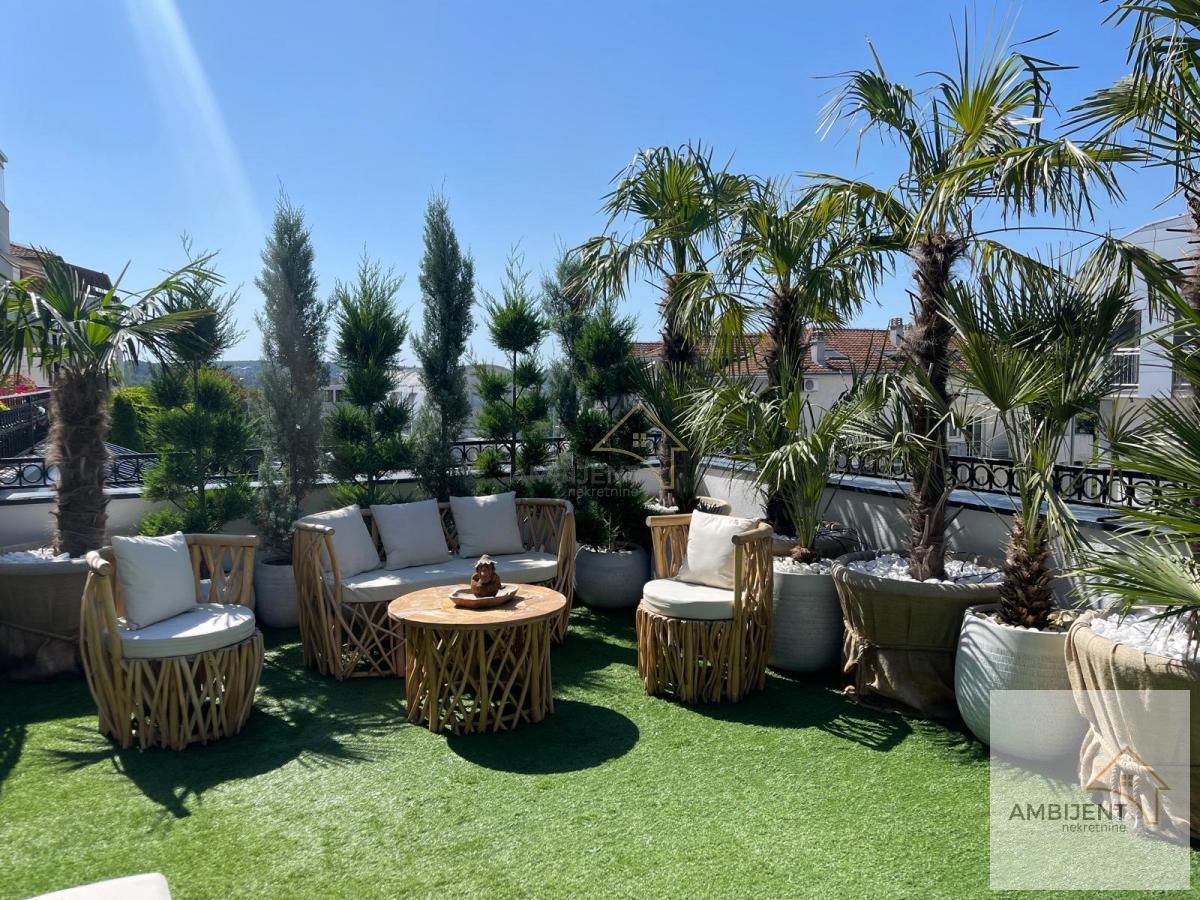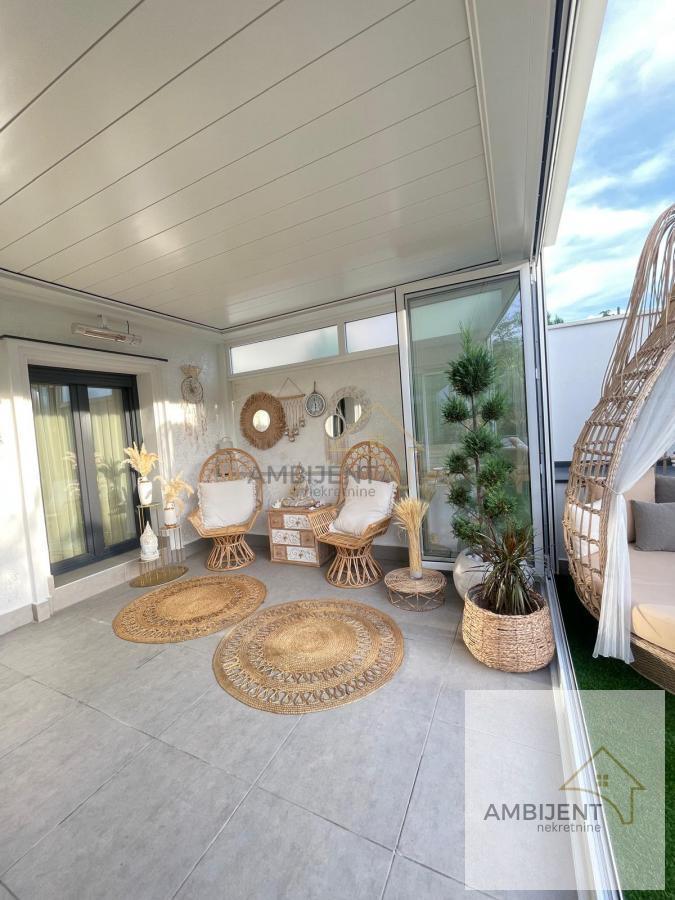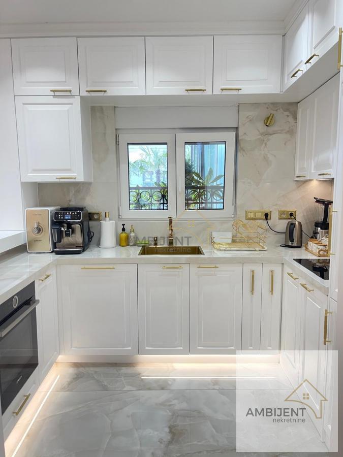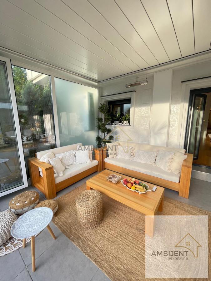 | ID 1026 - Ovaj predivan LUX stan, koji će vas sigurno ostaviti bez daha, nalazi se u novoj manjoj zgradi, na visokom prizemlju, na Dedinju u blizini Belog Dvora, miran, siguran kraj sa puno zelenila i luksuznih objekata. Odmah pored stana je prodavnica i šuma za one koji vole da šetaju. - Stan je uređen najkavalitetnijim i najsavremenijim materijalima, sav nameštaj je brendiran, ostalo je pravljeno po meri od furniranog medijapana, luksuzni lusteri, lampe, pozlaćene uticnice, kao i pozlaćeni lavabo, wc šolja, tuš kabina i sl. - Dosta dizajnerskih, unikatnih, dekorativnih predmeta. Četiri sobe, elegantna i komforna dnevna soba, trpezarija, kuhinja, sve opremljeno modernim elektronskim uređajima, zaseban prostor kao garderober sa policama, ostava i autentično kupatilo. - XXL kreveti sa najkvalitetnijim dušecima obezbediće vam miran san i odmor. - U stanu se nalazi moderan kamin koji menja boje, greje i hladi. Grejanje je podno ali pored toga tu su i fan coil uređaji koji greju i hlade. - Ovaj sjajan prostor ima i svoju terasu sa pogledom na šumu, opremljena je u modernom boho stilu, sa kvalitetnim garniturama od tikovine i sibirskog arisa. U jednom delu terasa je pokrivena pergolom sa pokretnim krovom, senzorima za kišu, infrared grejalicama i preklopno, kliznim staklenim sistemom sa ciljem da se taj ustakljeni deo koristi cele godine. Deo je pod otvorenim nebom, a u tom dvorišnom delu su posađene male i velike palme, čempresi, tuje i pom pomovi što daje poseban doživljaj da ste u prirodi jer je sve ograđeno zelenilom. - Stan ima i 2 parking mesta, u dvorištu zgrade koja su pod kamerama, kao i sve ostalo. - Stan je odmah useljiv. Agencijska provizija je 2% od kupoprodajne cene. Za dodatne informacije i zakazivanje obilaska pozovite nas na 064/3255742 Broj u registru posrednika 1667.TV, Mašina za sudove, Veš mašina, Frižider, Šporet, Kreveti, Plakari/Ormani, Sudopera, Kuhinjski elementi, Video nadzor, Video interfon, Interfon, Klima, Nije poslednji sprat Odmah useljiv Ostava Gradska kanalizacija Topla voda | |
