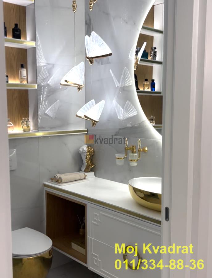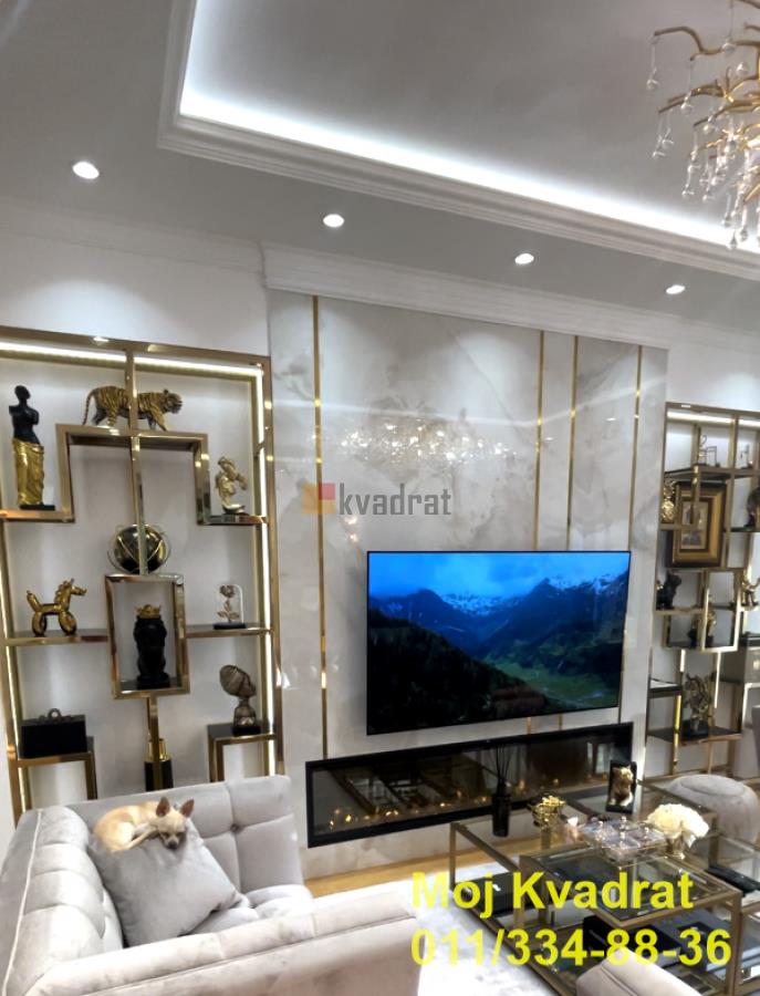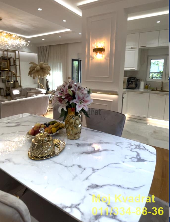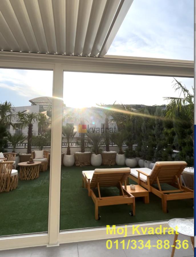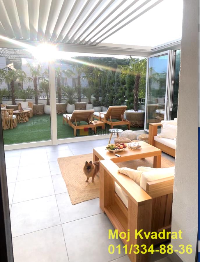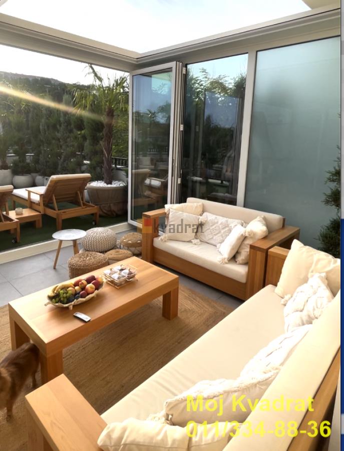 | Savski venac, Dedinje - Miloja Đaka 4.0, 180m2 + terasa 70m2, VP/2, EG/podno, klima, interfon, video nadzor, alarm, parking U manjoj zgradi na Dedinju, u blizini Belog Dvora, prodaje se četvorosoban, luksuzan stan od 180m2 sa pripadajućom terasom od 70m2. Stan je uređen najkvalitetnijim i najsavremenijim materijalima, nameštaj je uglavnom Richmond, a ostalo je pravljeno po meri od furniranog medijapana. Luksuzni lusteri, lampe, prekidači, kao i lavabo, wc šolja, tuš kabina i dosta detalja su pozlaćeni. Ovaj dizajnirani stan ukrašen je velikim brojem unikatnih dekorativnih predmeta. Stan je opremljen OLED televizorom od 65 inča, belom tehnikom Bosch najnovije serije 8, mašinom za pranje i sušenje veša, mašinom za pranje sudova. Od sitne opreme, stan ima najnoviji Philips aparat za espreso, Zepter prečišćivač vode, Zepter pozlaćen escajg od 48 delova i komplet Zepter šerpi i tiganja. Poseduje najkvalitetnije dušeke za spavanje, krevet XXL, luksuzne zavese i draperije visokog kvaliteta, moderan kamin koji menja boje, greje i hladi, moderan veliki garderober. U celom stanu je podno grejanje, kao i sistem fan coil koji hladi i greje. Stanu pripada i predivna velika terasa sa velikim i malim palmama, čempresima, spiralnim tujama i pom-pomovima. Terasa je uređena u modernom Boho stilu, sa kvalitetnim garniturama od tikovine i sibirskog arisa. U jednom delu je pokrivena pergolom sa pokretnim krovom, senzorima za kišu, infrared grejalicama i preklopno kliznim staklenim sistemom, sa ciljem da se taj zastakljeni prostor terase koristi preko cele godine. Druga polovina terase je pod vedrim nebom sa pogledom na šumu. Od sigurnosne opreme poseduje alarm, automatsku kapiju, sigurnosna vrata, video nadzor i interfon. Stan se prodaje kompletno namešten. Odmah je useljiv. Uknjižen na 175m2. Agencijska provizija 2%. Agent Nemanja Đoković: 066/57-52-212 (licenca br.5118) Video nadzor, Interfon, Klima, Nije poslednji sprat Odmah useljiv Gradska kanalizacija | |