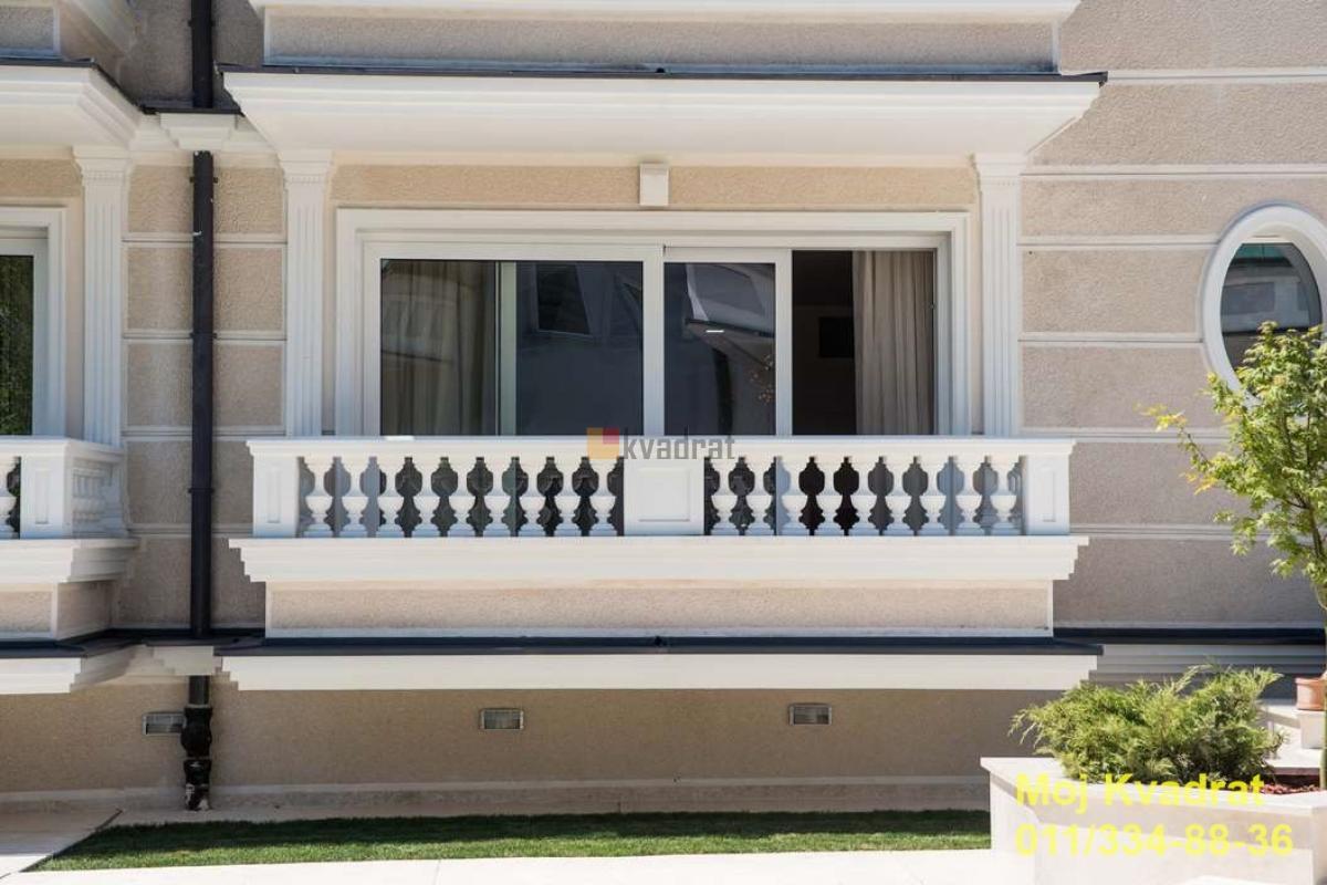 | Savski venac, Dedinje - Pivljanina Baja kuća, 1400m2, 4 terase, CG-gas, klima, telefon, interfon, podrum, parking, garaža, plac 11a Luksuzna vila u neposrednoj blizini Belog dvora u najlepšem delu Dedinja, okružena zelenilom. Nalazi se na prostranom placu površine 11 ari, u okviru kog se iza kuće nalazi bazen, koji se po potrebi zakupca može aktivirati. Na ulazu na plac se nalazi manji objekat - portirnica u potpunosti opremljena (toalet). Vila ima četiri nivoa (prizemlje, podrum, garažu sa 13 parking mesta i dva sprata). Sastoji se od 25 spavaćih soba, 4 dnevna boravka, 19 kupatila i 4 toaleta, 4 velike terase. Poseduje profesionalnu kuhinju sa velikom trpezarijom. Od ukupno 1400m2, 1000m2 čini stambeni prostor, 320m2 garažni prostor i 80m2 je namenjeno vešeraju. Objekat je zidan po najvišim standardima, a u gradnji su korišćeni visokokvalitetni materijali. Grejanje je na gas ili na struju. Sve prostorije su klimatizovane. Vila pruža mnoge mogućnosti sa svojim sadržajima za poslovne ili rezidentalne potrebe, sa mogućnošću dogovora sa vlasnikom oko eventualnih prenamena prostorija po želji i potrebi zakupca. Minimalan period zakupa je tri godine. Agencijska provizija po opštim uslovima poslovanja. Agent: Snežana Krstić 065/34-35-128 (licenca br.4106) | |
