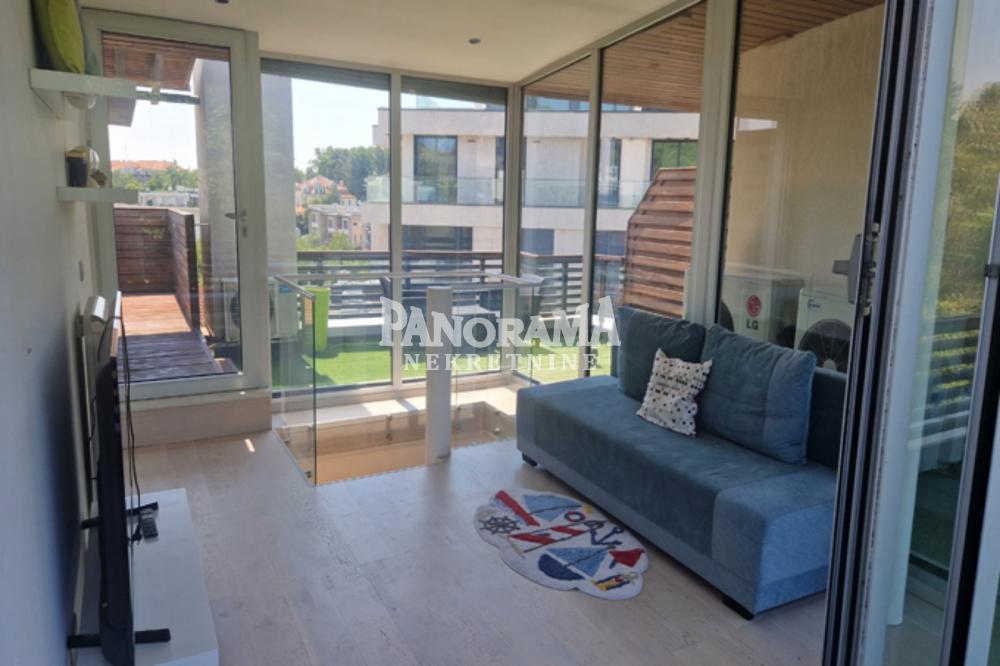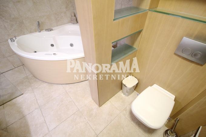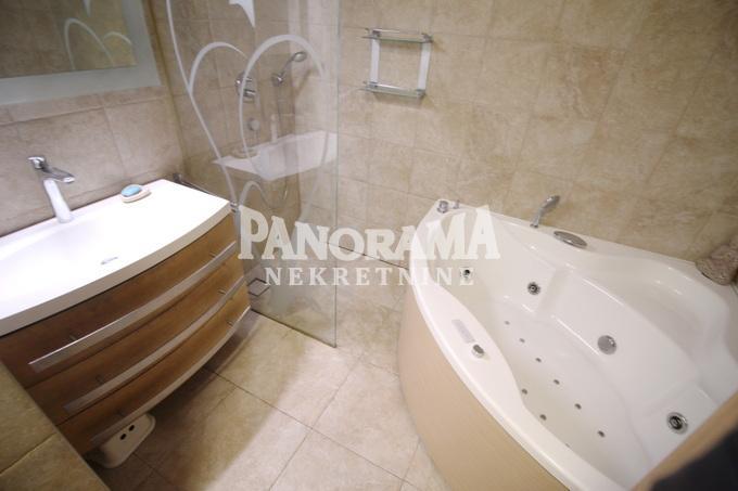 | Prodaje se petosoban stan koji se nalazi u srednjoj od tri četvorospratne vertikale u porodičnoj zgradi na Dedinju, neposredno pored Belog Dvora u mirnoj ulici. Kvalitetna gradnja, materijali i unutrašnja obrada. Sopstveni sistem i brojila potrošnje struje, gasa i vode. Prostrana terasa 31m2 ispred dnevne sobe. Prostrana terasa 34m2, oko radne sobe na drugom spratu, pogodna za sunčanje i sa prelepim vidikom na Avalu i Šumadiju, , sa priručnim sanitarnim čvorom (WC/Tuš) i ostavom za opremu. Konzolna platforma -vidikovac. Nisko prizemlje - sa velikom sobom, 25m2, pogodnom za igru, rekreaciju. Ima priključak za mini kuhinju i eventualno tuš kabinu,toalet je u susednom hodniku. Odvojena garaža 24m2, pristup sa ulice po rampi sa električnim podnim grejanjem i parkiranje dozvoljeno na ulici. Mašina za pranje veša, centralni bojler i kotlovi, gasni i električni. Velika kućna ostava/garderober 15m2. Visoko prizemlje - sa ulaznim hodnikom, toalet, kuhinja i dnevna soba sa trpezarijom (klima - inverter,hlađenje/grejanje), akvarijum u pregradnom zidu sa kuhinjom, izlaz na terasu. Prvi sprat - sa tri sobe i kupatilom sa tušem, đakuzi kadom i sa električnim podnim grejanjem sa tajmerom. Veća spavaća soba je sa panoramskim pogledom na Šumadiju. Sve sobe imaju klimu - inverter (hlađenje/grejanje). Drugi sprat - sa radnom sobom i dvostranim izlazom na veliku terasu, sa južne i sa severne strane (klizna vrata). Soba ima klimu - inverter (hlađenje/grejanje). Enterijerska obrada je dominantno bela sa specijalnim štuko radom zidova dnevne sobe, kaskadnim plafonom sa zvezdanim nebom i led trakastim osvetljenjem. Stepenišni zid je obložen prirodnim lomljenim kamenom boje peska. Podovi su višeslojni parket od prirodne lakirane bukve. Akvarijum je dvostrano orijentisan, ka kuhinji i ka dnevnoj sobi. Stepenice dnevne sobe su staklene da propuste svetlost na silazne stepenice u donje prizemlje. Vrata svih soba imaju ostakljeno nadsvetlo tako da se cela kuća "kupa" u sunčanom svetlu. Spoljna obrada fasade je od štokovanog veštačkog kamena, alu stolarija Schüco, spoljne drvene obloge, pregrade i kapije su od sibirskog ariša. Kuća je opremljena motorizovanim "Solomatic 80" alu žaluzinama preko cele južne fasade (prema terasi ispred dnevne sobe), priključkom za kablovsku i satelitsku televiziju i za internet, podnim grejanjem kupatila i podnim grejanjem garažne rampe, video i interfonom. Agencijska provizija 2% Za više informacija kontakt telefon 060/3572-018 Marija | |