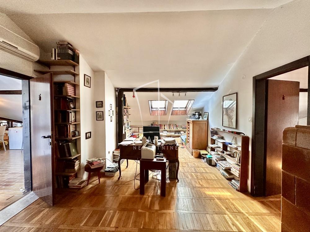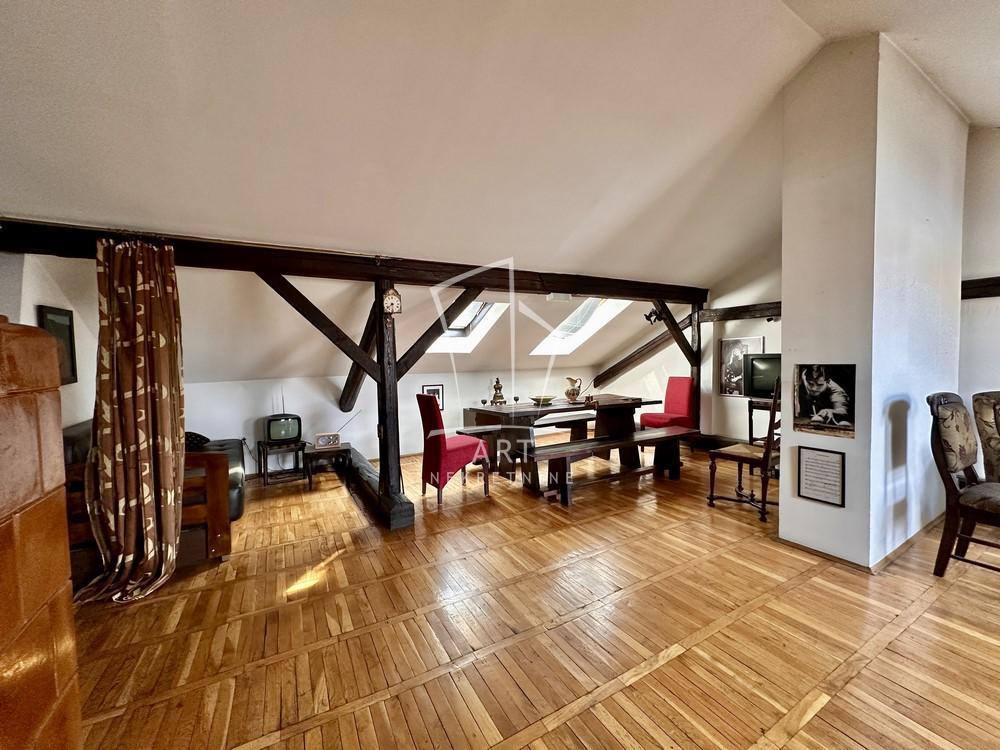 | Na doboroj lokaciji u potkrovlju uredne zgrade, nalazi se ova četvorosobna nepokretnost, merenih 160m2. Poseduje predsoblje, dnevni deo sa trpezarijom i kuhinjom,tri prolazne sobe/ kancelarije, kupatilo, toalet, ostavu, garderober i lođu.. Grejanje na kaljeve peći i klimu. Pogodan za stanovanje, atelje ili poslovni prostor. Po potrebi zakupca može biti i ispražnjen ili dodatno opremljen. Izdaje se na duži vremenski period. Depozit obavezan. Agenc. provizija 50% od prve rente Agent Marina Stefanović broj licence 4018 “Art nekretnine“ d.o.o. Beograd. Reg. br.339 011/2620-734 MS03 . | |