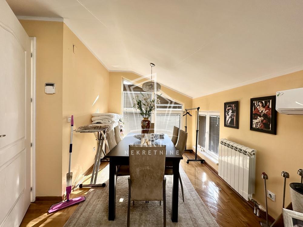 | Kuća na Kosmaju, Slatina, na glavnom putu, okružena netaknutom prirodom. Udaljena je samo 35km od Beograda. Od Kosmaja, 4km. Kuća je vrhunskog kvaliteteta. Sastoji se od dva stana i jednog apartmana za goste, kao i velike terese sa lepim pogledom. Kuća ima 3 klime, jednu centralnu, 3 kuhinje, 4 kupatila. Kotlarnicu, ostavu za alat, agregat, podno grejanje. U dvorištu se nalazi letnjikovac sa pečenjarom koji je ustakljen ali po potrebi moze da se otvori. Kuća poseduje dvorišno osvetljenje, video nadzor, kapiju na daljinsko otvaranje, dva parking mesta na ćupriji. Dvorište je ogradjeno kovanom ogradom. Udaljena od škole 300m, od Doma zdravlja 800m. Voćnjak i dosta zelenila, na placu od 15,57ari. Pogodna je kao stambeni prostor ili kao poslovna prilika za ugostiteljski objekat sa smeštajnim kapacitetom. Agencijska provizija 2% Agent: Nebojša Bucalo br.licence 509 Art nekretnine d.o.o.,Beograd,reg.br.339 011/26-20-734 ND11 . | |