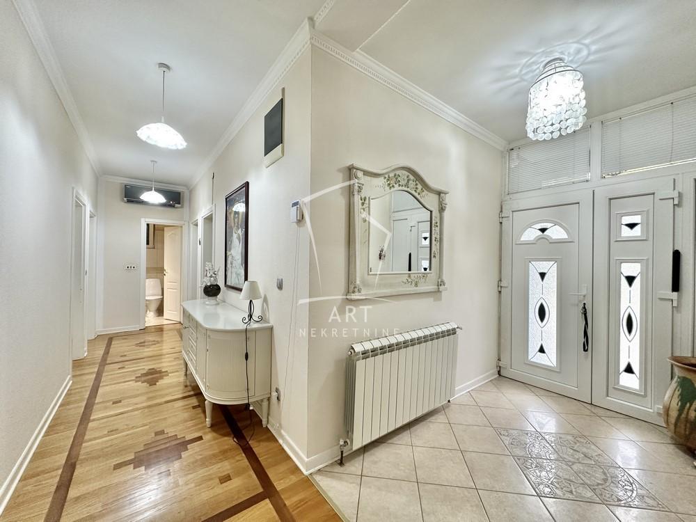 | Uknjižena, lux kuća u nordijskom stilu, sa placem od 20 ari. Sastoji od velike dnevne sobe, 4 spavaće sobe, kuhinje, kupatila, gostinskog wc-a, vešeraja, terase i garaže (35m2). Asfaltni put pored kuće, gradska voda i bunar, trofazna struja i gas. Grejanje je EG-gas i pelet (toplotna pumpa). Kuća ima video nadzor, a visina plafona je veća od standarda. Fantastično kako za život, tako i kao vikend kuća. Agencijska provizija 2%. Agent: Dragan Vučićević br. licence 836 "Art nekretnine" d.o.o. Beograd Reg. br.339 011/26-20-734 . | |