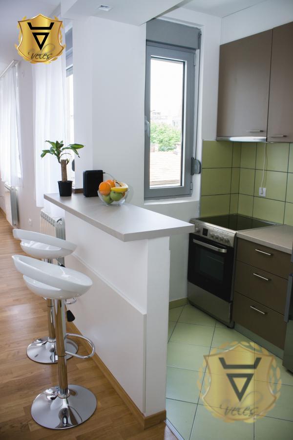 | Stan se nalazi u mirnom kraju u neposrednoj blizini Botaničke bašte, udaljen 1Km od Trga Republike. Dobro je povezan linijama javnog prevoza sa centrom i periferijom. Stan u praktično novoj zgradi, useljenoj 2017. godine. Dnevna soba, trpezarija, kuhinja, kupatilo, dodatni toalet, dve spavaće sobe, terasa. U svim sobama postoji klima uređaj. Grejanje je daljinsko, obračun cene prema merenju kalorimetra. Topla voda u kupatilu neograničena, dobija se preko protočnog bojlera. Izdaje se kompletno namešten, kao na slikama. Postoji mogućnost zakupa parking mesta u garaži u podrumu iste zgrade. Zakup parking mesta nije uključen u cenu. Agencija za nekretnine Veles broj u registru posrednika 1149 Agencijska provizija 50%* Način plaćanja: kirija+depozit+ag.provizijaTV, Mašina za sudove, Veš mašina, Frižider, Šporet, Kreveti, Plakari/Ormani, Sudopera, Kuhinjski elementi, Interfon, Internet, Telefon, Kablovska, Klima, | |