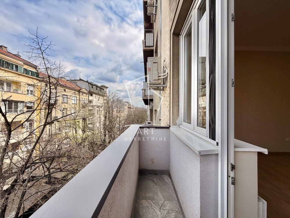 | Renoviran salonski stan - Strahinjića Bana Na jednoj od najtraženijih lokacija u Beogradu, u ulici Strahinjića Bana, nalazi se ovaj šarmantan salonski stan koji spaja autentičan duh starog grada i savremeni komfor. Stan je smešten na trećem spratu uredne zgrade sa liftom i reprezentativnim mermernim ulazom. Uknjižene površine 56 m² (mereno 60 m²), dodatnu vrednost daju dva balkona i dvostrana orijentacija – ka ulici i mirnom dvorištu, što obezbeđuje obilje prirodnog svetla tokom celog dana. Raspored prostorija: • prostran centralni salon kao glavni deo stana • spavaća soba sa izlaskom na balkon ka ulici • kuhinja i dodatna soba ("devojačka") orijentisane ka dvorištu • kupatilo • Sve prostorije imaju prozore što doprinosi osvetljenosti stana Stan je kompletno renoviran i odmah useljiv, bez dodatnih ulaganja. Zahvaljujući atraktivnoj lokaciji i odličnom rasporedu, idealan je kako za život, tako i za poslovnu namenu – advokatske kancelarije, ordinacije, agencije i slične delatnosti. Agencijska provizija 2% Agent: Sonja Tasić br. licence: 614 Art nekretnine d.o.o. Beograd Reg. br. 339 011/26-20-734 ST . | |
