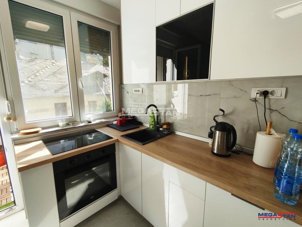 | Moderno i luksuzno dizajniran i opremljen stan na prestižnoj lokaciji, kod boemske četvrti Skadarlije – simbola Beograda. Poseduje hodnik, dnevni boravak sa kuhinjsko-trpezarijskim delom otvorenog koncepta sa izlazom na terasu, spavaću sobu, kupatilo i terasu sa pogledom na park i zelenilo. Elegantan, kompletno opremljen i namešten, dvostrane orijentacije istok - zapad. Sunčan, tih i intiman. Idealan za stanovanje ili izdavanje! Agencijska provizija za kupca 2%. Broj agencije u Registru posrednika 298. Mapa je informativnog karaktera, ne prikazuje tačnu lokaciju nekretnine. | |