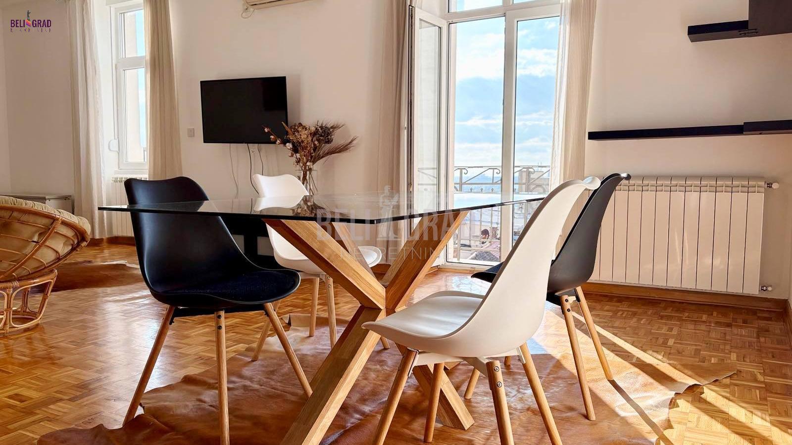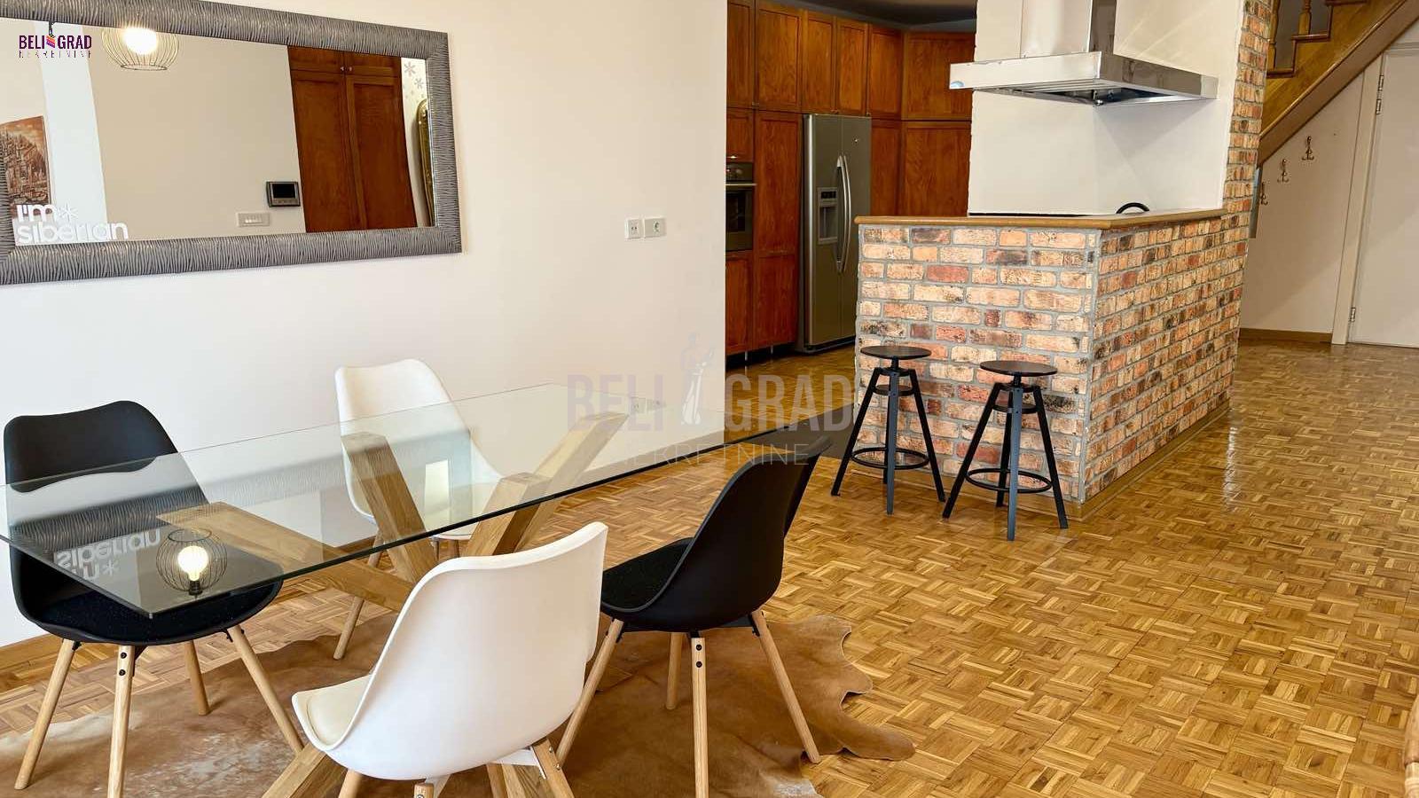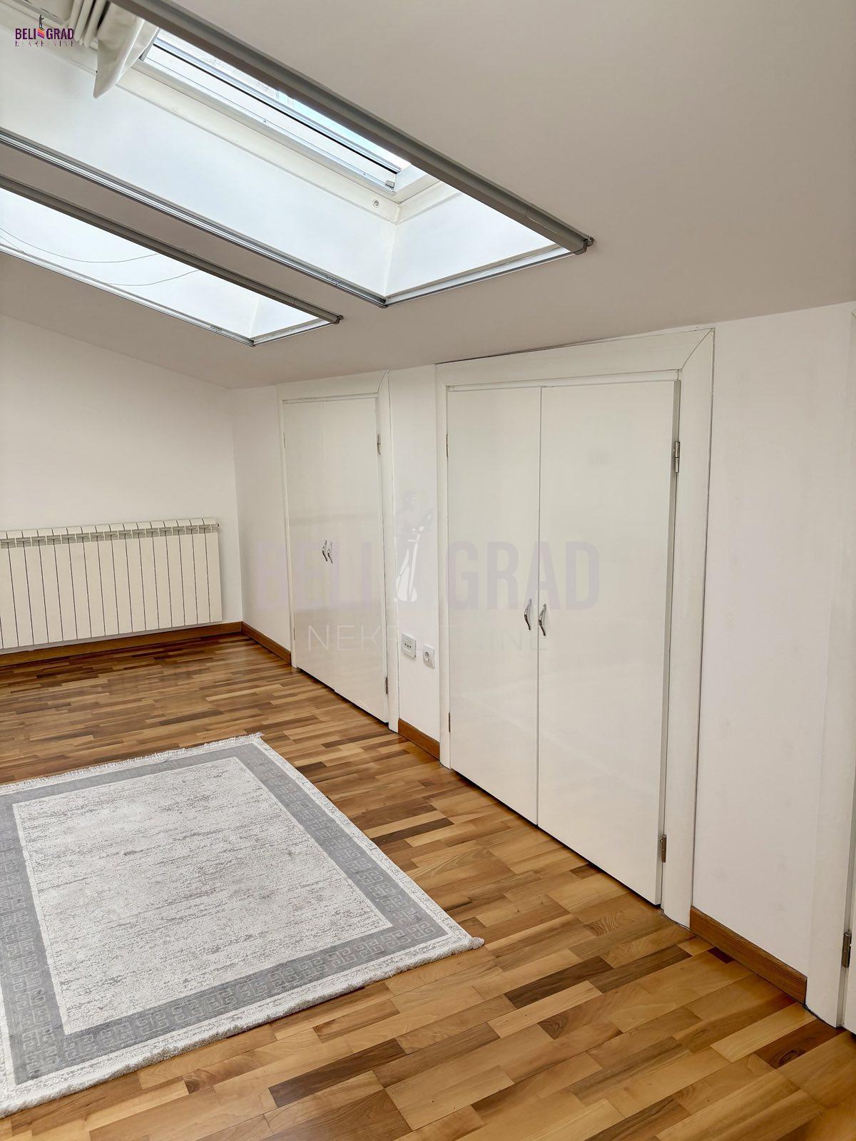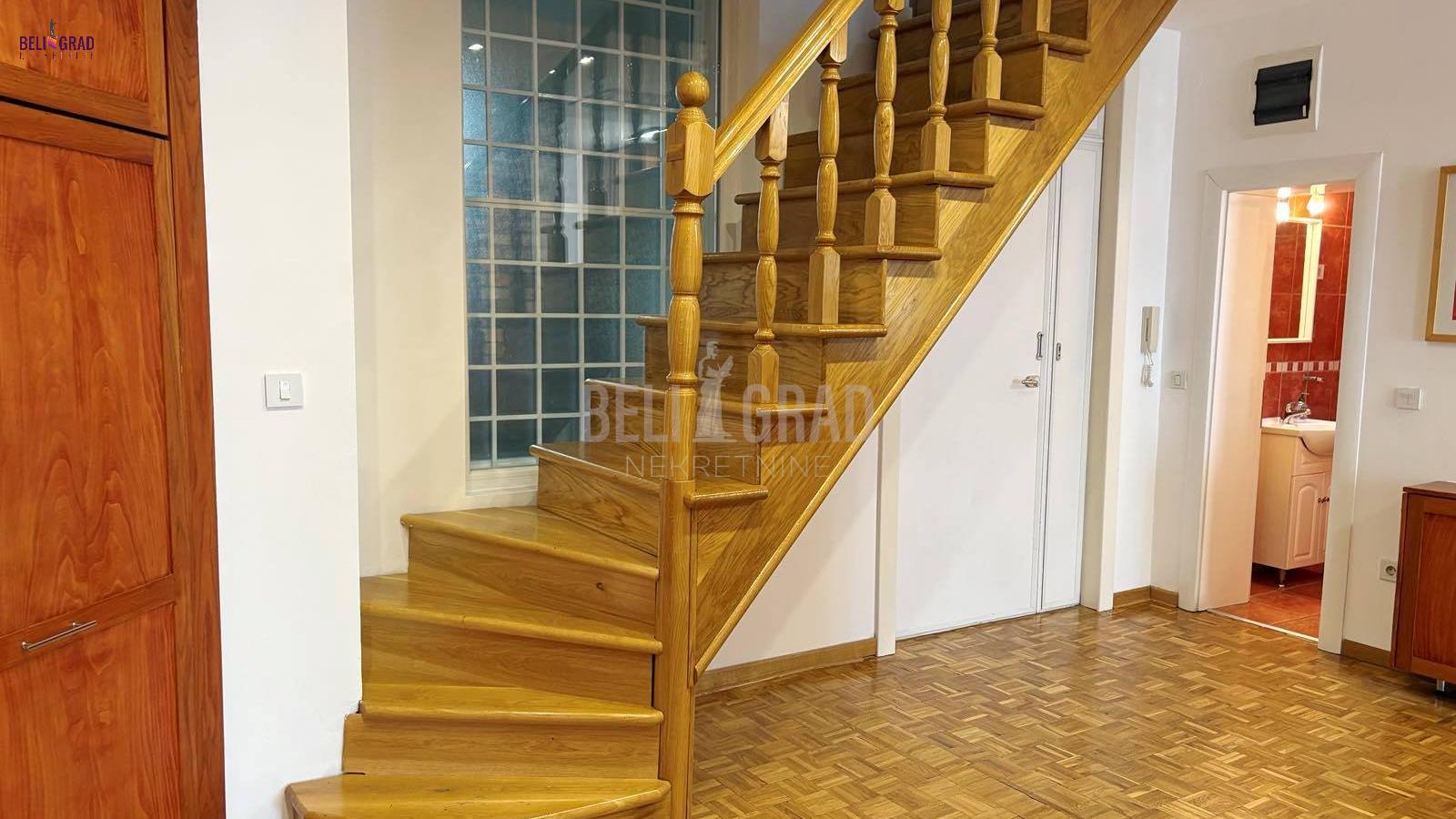 | Na jednoj od najlepših lokacija u centru starog dela Beograda, Kosančićev venac, prodaje se raskošan duplex,na 4. spratu zgrade, koja je pod zaštitom spomenika kulture Beograda. Orijentisan ka zapadu, sa pogledom na reku i kupolu Saborne crkve, izuzetno prostran, svetao u svakom svom delu i pažljivo uređen i renoviran. Koncipiran je kao radni deo i deo za odmor na donjem nivou i spavaći deo sa kupatilima na gornjem delu, funkcionalan i sa ukusom renoviran stan. Lift u zgradi je nov, krov je rađen ove godine, grejanje je etažno, sa sopstvenim kotlom i ima centralnu klimu. Kvalitetno je renoviran, rađena je kompletna stolarija, hidroizolacija, elektroinstalacija, lako adaptibilan u cetvorosobni. Oba sprata imaju zasebne ulaze. Donji nivo: dnevni boravak - izvorno su bile 2 sobe, sada je open space sa trpezarijom, kuhinja sa ostavom, terasa i gostinski toalet (72m2); Gornji nivo: 2 spavaće sobe - sa ugradnim ormanima i 2 kupatila (72m2). Između donjeg i gornjeg dela stana postoji video nadzor. Na gornji nivo stana se dolazi rustičnim, kvalitetno urađenim stepenicama i tu je smeštena mala ostava gde je kotao. U celom prostoru je moguće potpuno uspravno hodati, a sve kosine su maksimalno iskorišćene ugrađivanjem dubokih osvetljenih plakara, koji se savršeno uklapaju u prostor. Duple roletne i komarnici su ugrađeni na svim krovnim prozorima. Uz stan može da se kupi i garaža od 14 m2. Stan je izuzetan, kako za život, tako i kao investicija i vredi ga pogledati. Za svaku preporuku. Agencijska provizija 2% | |