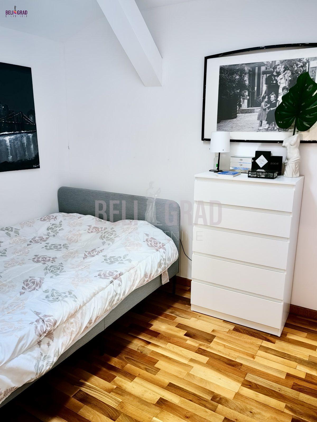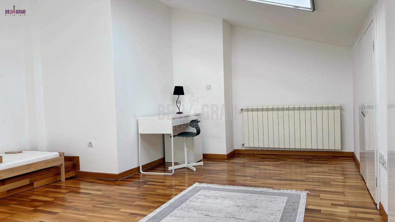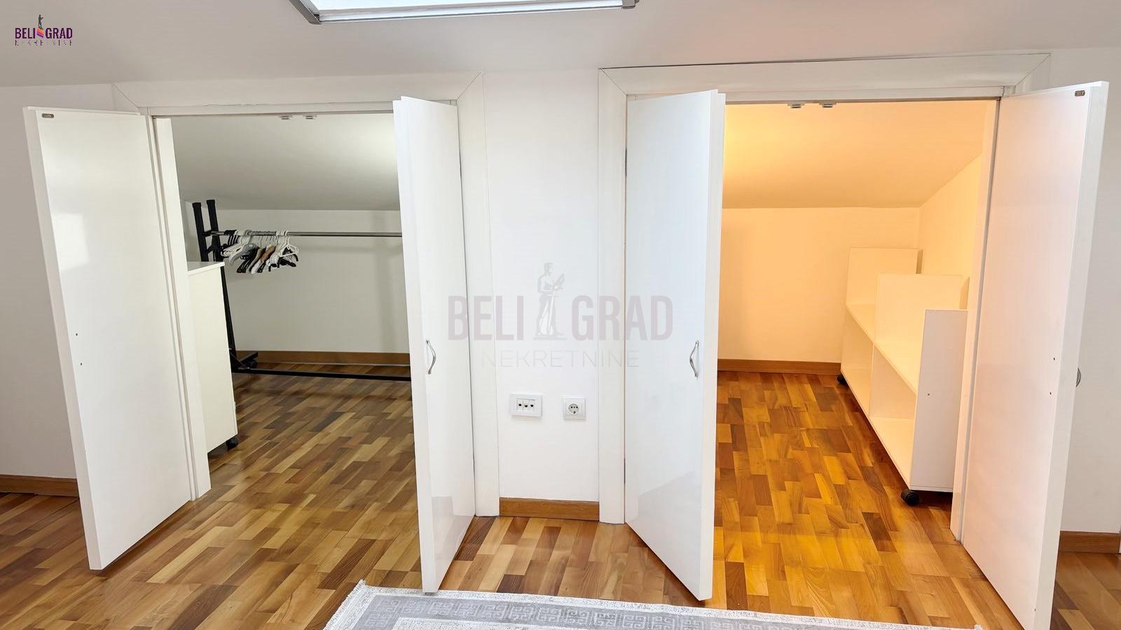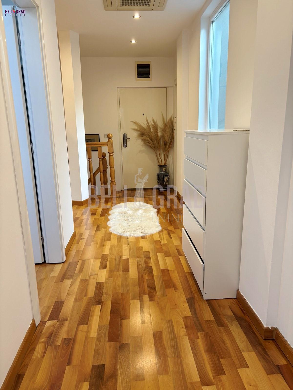 | Na jednoj od najlepših lokacija u centru starog dela Beograda, Kosančićev venac, prodaje se raskošan duplex,na 4. spratu zgrade, koja je pod zaštitom spomenika kulture Beograda. Orijentisan ka zapadu, sa pogledom na reku i kupolu Saborne crkve, izuzetno prostran, svetao u svakom svom delu i pažljivo uređen i renoviran. Koncipiran je kao radni deo i deo za odmor na donjem nivou i spavaći deo sa kupatilima na gornjem delu, funkcionalan i sa ukusom renoviran stan. Lift u zgradi je nov, krov je rađen ove godine, grejanje je etažno, sa sopstvenim kotlom i ima centralnu klimu. Kvalitetno je renoviran, rađena je kompletna stolarija, hidroizolacija, elektroinstalacija, lako adaptibilan u cetvorosobni. Oba sprata imaju zasebne ulaze. Donji nivo: dnevni boravak - izvorno su bile 2 sobe, sada je open space sa trpezarijom, kuhinja sa ostavom, terasa i gostinski toalet (72m2); Gornji nivo: 2 spavaće sobe - sa ugradnim ormanima i 2 kupatila (72m2). Između donjeg i gornjeg dela stana postoji video nadzor. Na gornji nivo stana se dolazi rustičnim, kvalitetno urađenim stepenicama i tu je smeštena mala ostava gde je kotao. U celom prostoru je moguće potpuno uspravno hodati, a sve kosine su maksimalno iskorišćene ugrađivanjem dubokih osvetljenih plakara, koji se savršeno uklapaju u prostor. Duple roletne i komarnici su ugrađeni na svim krovnim prozorima. Uz stan može da se kupi i garaža od 14 m2. Stan je izuzetan, kako za život, tako i kao investicija i vredi ga pogledati. Za svaku preporuku. Agencijska provizija 2% | |