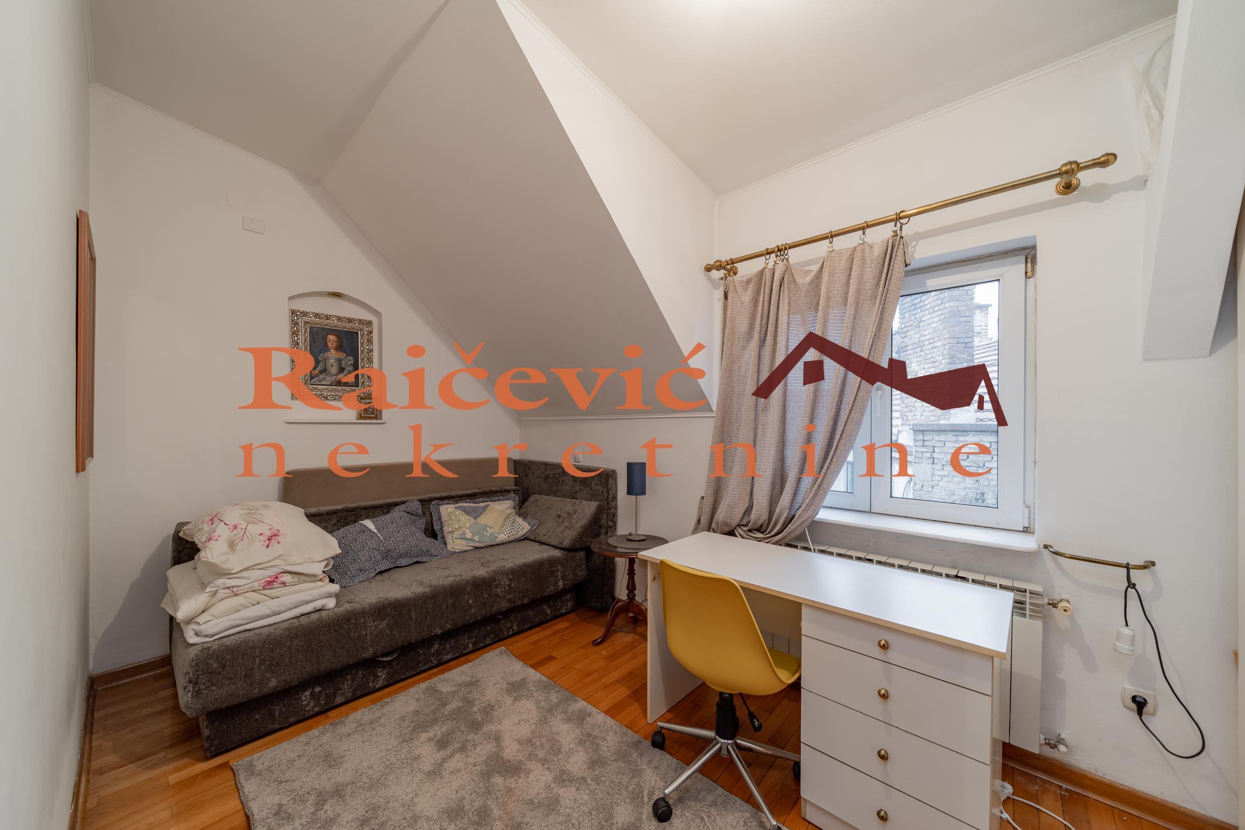 | SVI NASI KUPCI DOBIJAJU VREDAN POKLON! Centar, Skupstina, Palmoticeva, 5.0, 108 m2 sa terasom i lodjom, III od IV sprata, dupleks, cg, bez lifta (mogucnost ugradnje), interfon, ktv, internet, klima, odmah useljiv, uknjizen na 96 m2, nadogradnja iz 2001. godine. U centru opstine Stari grad, neposredno u blizini Skupstine, Trga Republike, Ateljea 212, Skadarlije i svih drugih vaznih infrastrukturnih objekata, blizu ugla ulica Palmoticeve i Hilandarske, prodaje se petosoban, uknjizen dvoetazni stan koji se svojim izgledom i kvalitetom potpuno uklapa i predstavlja elitni deo grada u kome je lociran. Nalazi se u starijoj urednoj zgradi sa dva ulaza, novom fasadom i sirokim stepenistem. Sa jos 3 stana cini nadogradnju izgradjenu od kvalitetnih materijala u luksuznom stilu, uklopljenu u eksterijer i useljenu 2001. godine. Stan je na 3 i 4. spratu, bez lifta, sa tehnickim mogucnostima da se isti ugradi. Prostorije: I nivo (53 m2): predsoblje, dnevni boravak sa izlazom na terasu, kuhinja sa trepezarijom, spavaca soba i kupatilo. II nivo (55 m2): dnevni boravak sa izlazom na lodju, 2 spavace sobe i kupatilo. Dvostrano je orijentisan. Visina plafona je od 2.7 m do 3 m sa blagim kosinama u 2 spavace sobe. Svaka prostorija ima prozor, odnosno prirodnu ventilaciju. Opremljen je PVC stolarijom, sigurnosnim vratima, klima uredjajima, kaminom na drva, optickom mrezom (internet, kablovska TV). Podne obloge su od kvalitetnog hrastovog parketa i granitne keramike. Grejanje je centralno. U kupatilima, kuhinji i trpezariji i hodniku je podno grejanje dok je ostatak stana opremljen radijatorima. Struktura stana, raspored i velicina prostorija, kao i kvalitet izgradnje cine ga luksuznim i izuzetno funkcionalnim, sto pruza visok nivo komfora za svakodnevni zivot viseclane porodice. Stan je za svaku preporuku. Cena 489 000 evra. Kupite ovu nekretninu preko agencije Raicevic nekretnine i POKLANJAMO VAM idejno resenje dizajna enterijera! Pozovite nas za vise informacija. Agencijska provizija koju placa KUPAC iznosi 2 % od dogovorene kupoprodajne cene. Raicevic nekretnine 060/3056068 || dokumentacija : uknjizen | |