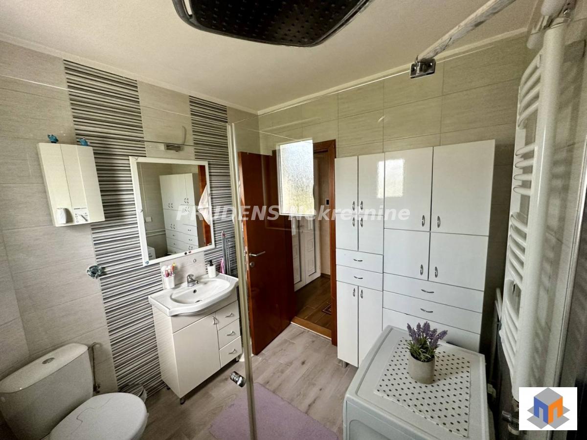 | Savršena kućica u cveću sa travom oko nje nalazi se nadomak Dobanovaca, u Grmovcu. Sa odličnim gradskim prevozom, autobusom 707, Vi ste očas posla u Grmovcu, nadomak auto puta. Kućica od 110m2 je rađena od čvrstog materijala, a u perspektivi je nadziđivanje još jedanog sprata, jer po celoj dužini i širini postoji betonska ploča. Krov kuće je izvanredno uradjen, ušuškan da joj ni kiša ni sneg ne mogu nista. Fasada prijatnih boja I dobra izolacija daju kući sigurnost i toplinu. A tek unutrasnjost kuće: to je tek priča za sebe. Lep hodnik sa degažmanom, zaštićen PVC ulaznim vrarima. Stolarija u celoj kući je inače uradjena od PVC materijala tako da je kuća svetla i sunčana. Sastoji se od jos dve spavaće sobe i velikog dnevno-trpezarijskog dela sa izdvojenom kuhinjom koji zajedno čine prijatnu celinu. Naravno da se iz dnevnog boravka izlazi na zasebnu pokrivenu terasu na kojoj se pije kafa, a opet u travi i zelenillu sa ponekom voćkicom. U dvorištu veličine 5 ari ograđenom PVC ogradom nalazi se zidana garaža, a na ulazu još jedna nadstrešnica za još jedno vozilo. Kuća je održavana, uredna, čista-bez ulaganja, a tako prijatna i svetla do odiše toplinom. Kuća je uknjižena, ali se prodaje isključivo keš kupcima. Agencijska provizija 2%. Odmah useljiv Gradska kanalizacija Topla voda | |