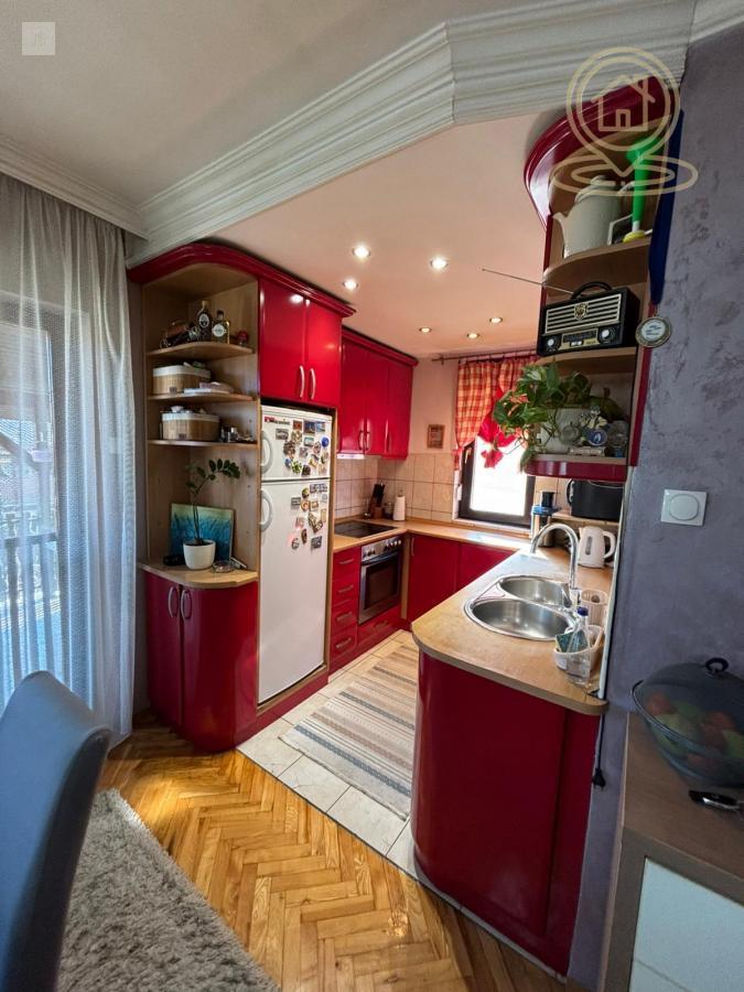 | Prodaje se četvorosoban sran u kući, uknjižen i pogodan za kupovinu putem stambenog kredita. Stan se sastoji od prostrane dnevne sobe sa kuhinjom i trpezarijom, tri spavaće sobe i kupatila. Poseduje i dve terase, koje pružaju dodatan komfor i prirodno osvetljenje. Iznad stana se nalazi tavansko potkrovlje, koje može poslužiti kao dodatni prostor za odlaganje ili se može prilagoditi potrebma budućih vlasnika. U dvorištu se nalazi i garža koja pripada stanu, Grejanje je na gas, a kotao se deli. Agencijska provizija računa se u skladu sa opštim uslovima poslovanja Kompas nekretnine Stan se nalazi u veoma mirnom kraju pa je pogodan za porodični život.TV, Veš mašina, Frižider, Šporet, Kreveti, Plakari/Ormani, Sudopera, Kuhinjski elementi, Klima, Ostava | |