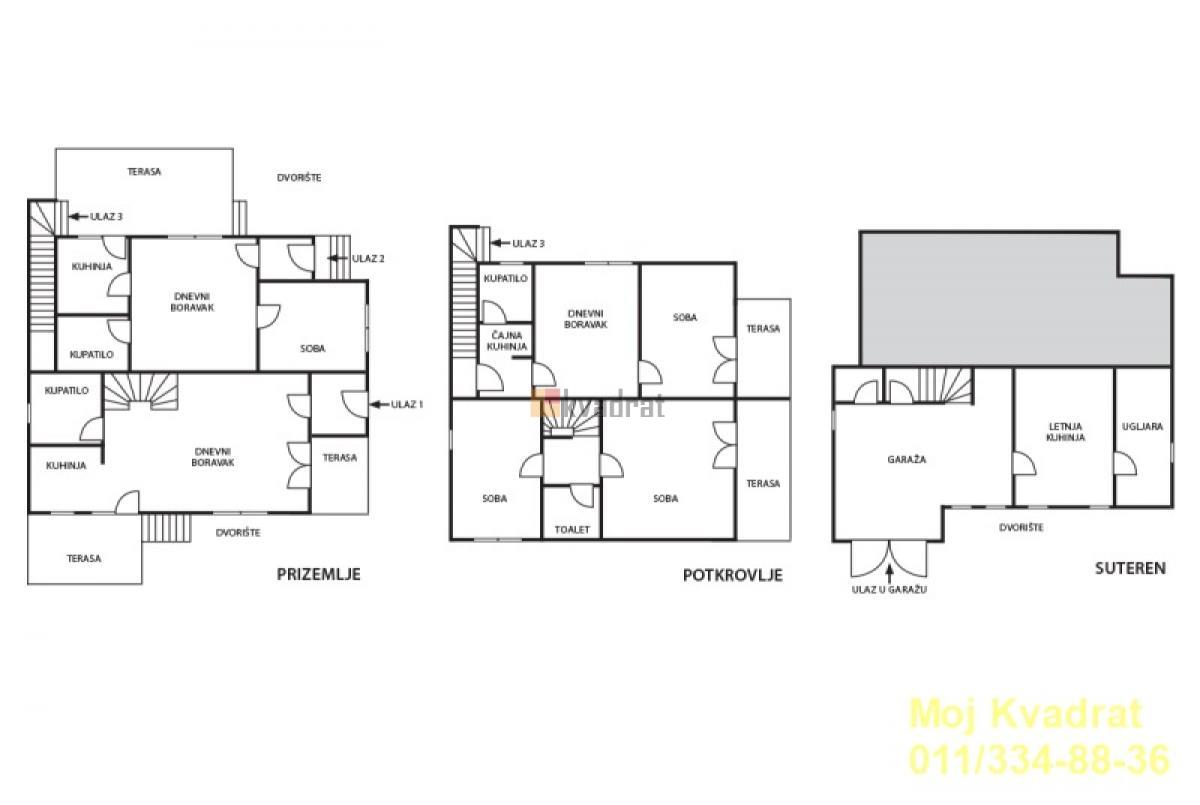 | Voždovac, Dušanovac - Miodraga Pavlovića kuća, 250m2 (terasa 50m2), SUT+PR+PTK, EG, telefon, interfon, podrum, parking, garaža, struja, voda, kanalizacija, asfalt U ponudi kuća bez ulaganja, sama na placu, podeljena na tri stambene jedinice. Zanimljiva kako za život, tako i za poslovni prostor, ali i za kombinaciju oba. Direktan izlaz na auto-put koji uskoro menja svoju primarnu namenu. Uknjižena na 105m2, mereno ima 250m2. Agencijska provizija 2%. Agent: Igor Bambić 063/20-99-33 (licenca br.403) Interfon, Telefon, Gradska kanalizacija | |