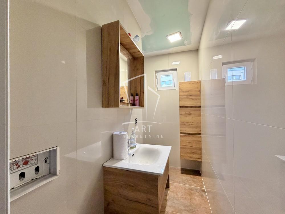 | Porodična stambena zgrada sa tri stana, gradjena 2014. Prizemlje u osnovi 129m2 sastoji se od ulaznog hola velike dnevne sobe sa kuhinjskotrpezarijskim delom , spavaće sobe , kupatila … Garaža je takodje u tom nivou za dva auta , ima vezu sa holom iz zgrade. Unutrašnjim stepeništem se penje na sledeći nivo , na kome su dva stana , jedan trosoban u potpunosti sredjen - ulazni hol vodi u dnevnu sobu sa kuhinjskotrpezarijskim delom, dve spavaće sobe sa terasom , kupatilo. Drugi stan je dvosoban , dnevna soba sa kuhinjskotrpezarijskim delom , spavaća soba, kupatilo - za sada u sivoj fazi , ali u postupku su završni radovi. Tavanski prostor omogućava formiranje još jedne stambene celine od cca 60m2 sa standardnom visinom . Ispred objekta mogućnost parkiranja jos jednog auta . Etažno grejanje na struju. Pored fotografija link sadrži i video … Za sva dodatna pojašnjenja smo na raspolaganju . Agencijska provizija 2% Agent: Smilja Stojadinović br. licence 3006 "Art nekretnine" d.o.o. Beograd. Reg. br.339 011/2620 734 . | |