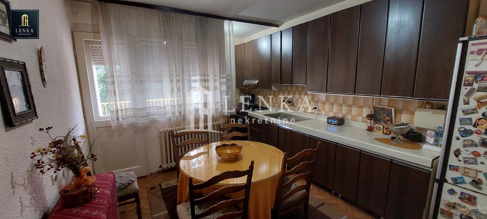 | U naselju Braće Jerković na prvom spratu nalazi se ovaj komforana trosobna kuća. Na samom ulazu je prostran hodnik iz koga se ulazi u sve prostorije. Prostarno kupatilo sa prirodnom ventilacijom, kuhinja sa trpezarijom koja izlazi na veliku terasu, dve spavaće sobe sa zajedničkom terasom kao i veliki dnevni boravak čine ovu nepokretnost idealnim za višečlane porodice. kuća ima pripadajući podrum (30m2) kao i zasebnu garažu za vašeg četvorotočkaša. U potkrovlju (70m2) se nalazi prostor koji možete renovirati po svom ukusu i potrebama. uknjižena kvadratura je pod objektomKupac plaća proviziju 2%. | |