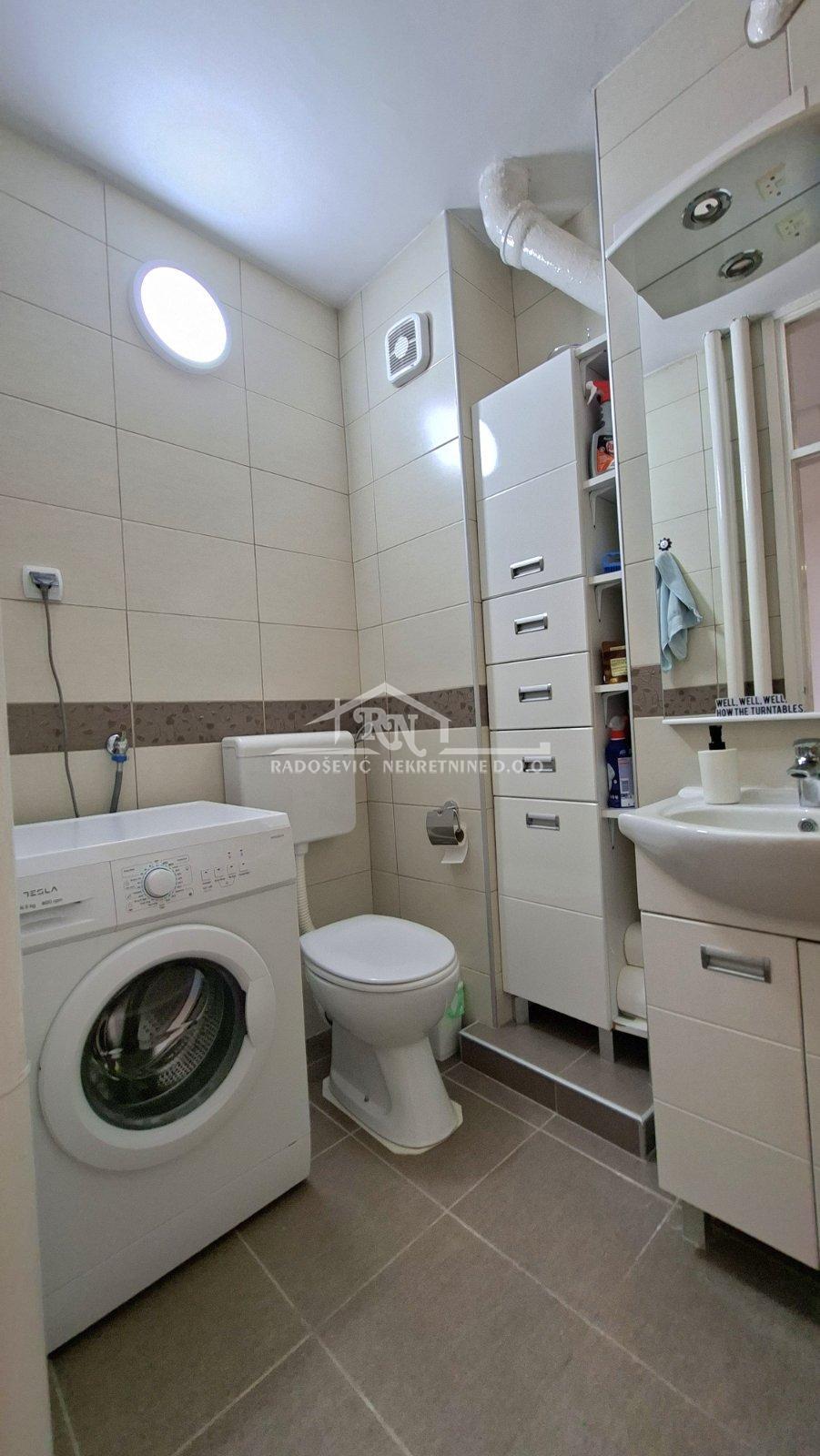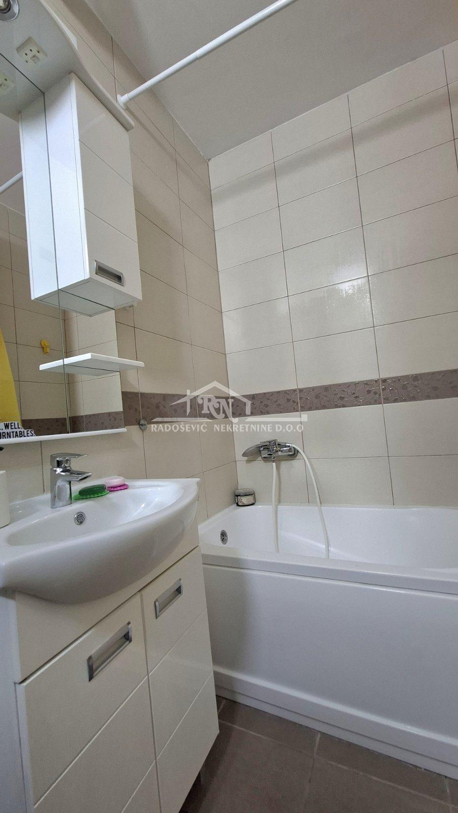 | Odličan, namešten dvosoban stan - odmah useljiv! Izdaje se svetao, funkcionalan dvosoban stan, istočno orijentisan, smešten u održavanom soliteru sa čak tri lifta. Zgrada je preko puta pijace, u neposrednoj blizini osnovne škole, više vrtića, tržnog centra i sa odličnom povezanošću javnim prevozom ka svim delovima grada. Struktura stana: - hodnik - dnevna soba - spavaća soba - kuhinja sa trpezarijom - kupatilo - lođa Opremljenost: - Hodnik: dvokrilni garderobni orman, čiviluk, tepih staza - Dnevna soba: trosed, fotelja, dvaradna stola, dve vitrine, kliam uređaj, klubski sto, tepih, tv aparat. - Spavaća soba: bračni krevet, garderobni ormani, noćni stočić, stona lampa - Kuhinja: kompletni kuhinjski elementi, frižider, šporet, posuđe, mikrotalasna peć - Trpezarija: sto sa 6 stolica, tepih, 4 police zidne. Uslovi zakupa: - Bez kućnih ljubimaca - Obavezno plaćanje jedne zakupnine unapred + depozit u visini jedne mesečne zakupnine - Mesečni troškovi: (infostan) 16.000 RSD i uključuju održavanje zgrade i 24h toplu vodu - Struja se plaća po utrošku Postoji mogućnost prijave boravka na adresi stana. Lođa: Sto sa 4 stolice, polica za cveće, usisivač. Kupatilo: veš mašina i ormarić. Operatori u zgradi: SBB, YETTEL i TELEKOM SRBIJA. U zgradi je Sbb instalacija. Kontakt Dragoljub Burdžić 063 575 359 Agencijska provizija 50% | |