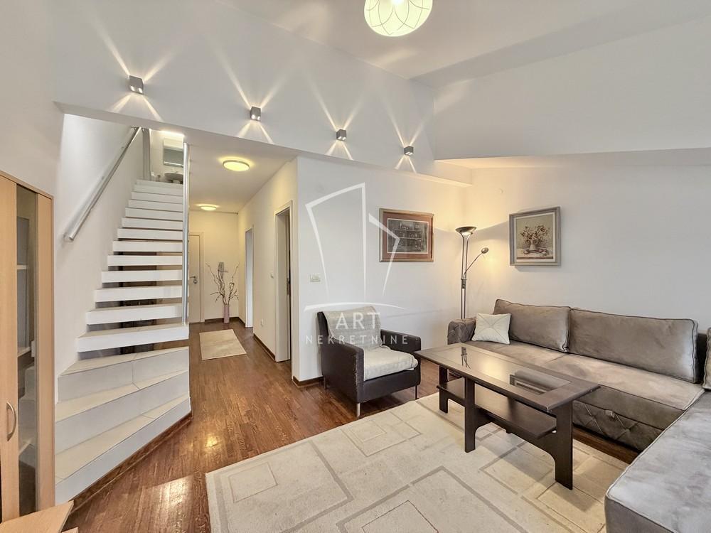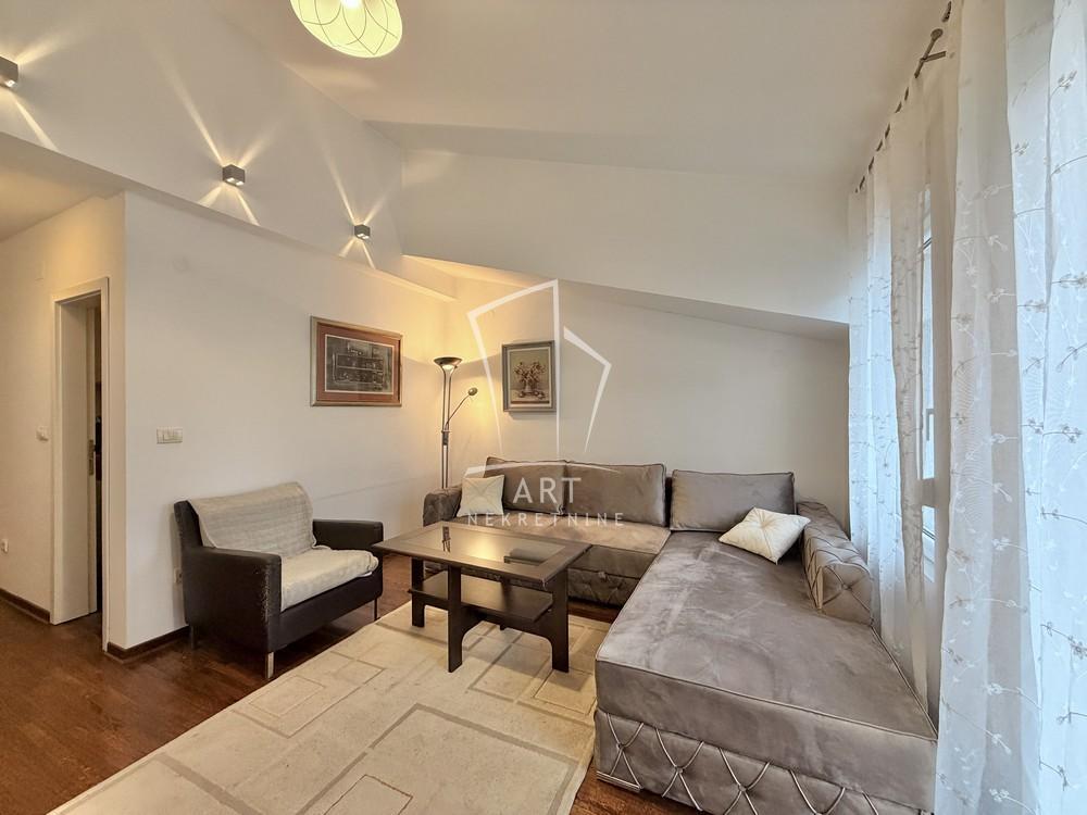 | Lep i funkcionalan stan u novijoj zgradi, na odličnoj lokaciji na Lekinom brdu. Stan je u potpunosti namešten i odmah je useljiv. Ima dve etaže - na donjoj se nalaze dnevna soba, kuhinja, toalet i dve terase a u potkrovlju je spavaća soba sa kupatilom. Ima internet i kablovsku TV, grejanje je centralno. Kućni ljubimci nisu dozvoljeni. Za sve dodatne informacije, pozovite. Agenc. provizija 50% vrednosti jedne mesečne zakupnine. Agent: Ivan Đorđević br. licence 6631 "Art nekretnine" d.o.o. Beograd. Reg. br.339 011/2620-734 IĐ . | |