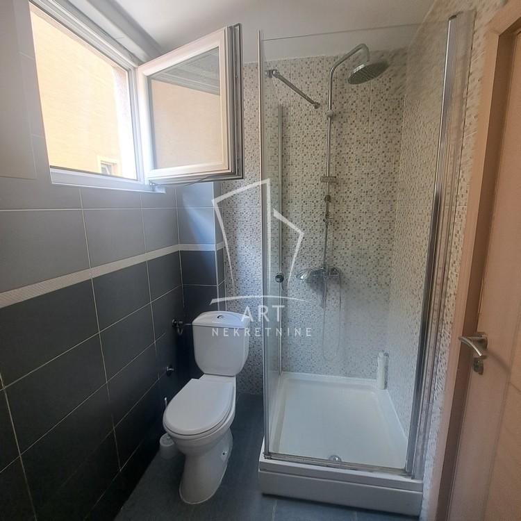 | Izdaje se kompletno namešten, komforan, lux, dvosoban stan 55m2 + terasa, CG, klima, 4/5, lift, interfon. Raspored prostorija : hodnik iz kog se ulazi kuhinju, a ujedno i dnevno trpezarijski deo povezan pultom sa kuhinjom, spavaću sobu i kupatilo. Ulazni hodnik maksimalno iskorišćen sa ugrađenim plakarima, ima dosta mesta za odlaganje stvari. Spavaća soba opremljena je ugradnim plakarima, velikim bračnim krevetom i TV. Dnevni boravak sa ugaonom garniturom, TV policom, prostranim ormanima za odladganje stvari, trpezarijskim stolom. Sve je u beloj boji koja daje osecaj topline i čistoće. Iz dnevnog boravka se izlazi na terasu, na kojoj se nalazi garnitura za sedenje. Kupatilo ima mašinu za pranje i sušenje veša. Kuhinja j prostrana i lepo organizovana. Ispred zgrade se nalazi parking, a parking mesto se izdaje uz mesecnu nadoknadu od 50 EUR. Odmah useljiv. Izdaje se na godinu dana, sa mogućnošću produženja ugovora. Troškovi : Centralno grejanje, placanje po utrosku (3000-10.000 din.), struja (2000-3000 din.), održavanje zgrade i lifta (1300din.), kablovska+internet (4000 din.). Nalazi se na odličnoj lokaciji, u mirnom kraju blizu raznih sadržaja za ugodan život. Kalenić pijaca je na udaljenosti jedne autobuske stanice. Kućni ljubimci nisu dozvoljeni. Izdaje se iskljucivo nepušačima. Agencijska provizija iznosi 50% vrednosti jedne mesečne zakupnine. Agent: Raško Jorović br. licence: 015 Art nekretnine d.o.o. Beograd. Reg. br. 339 011/26-20-734 BB . | |
